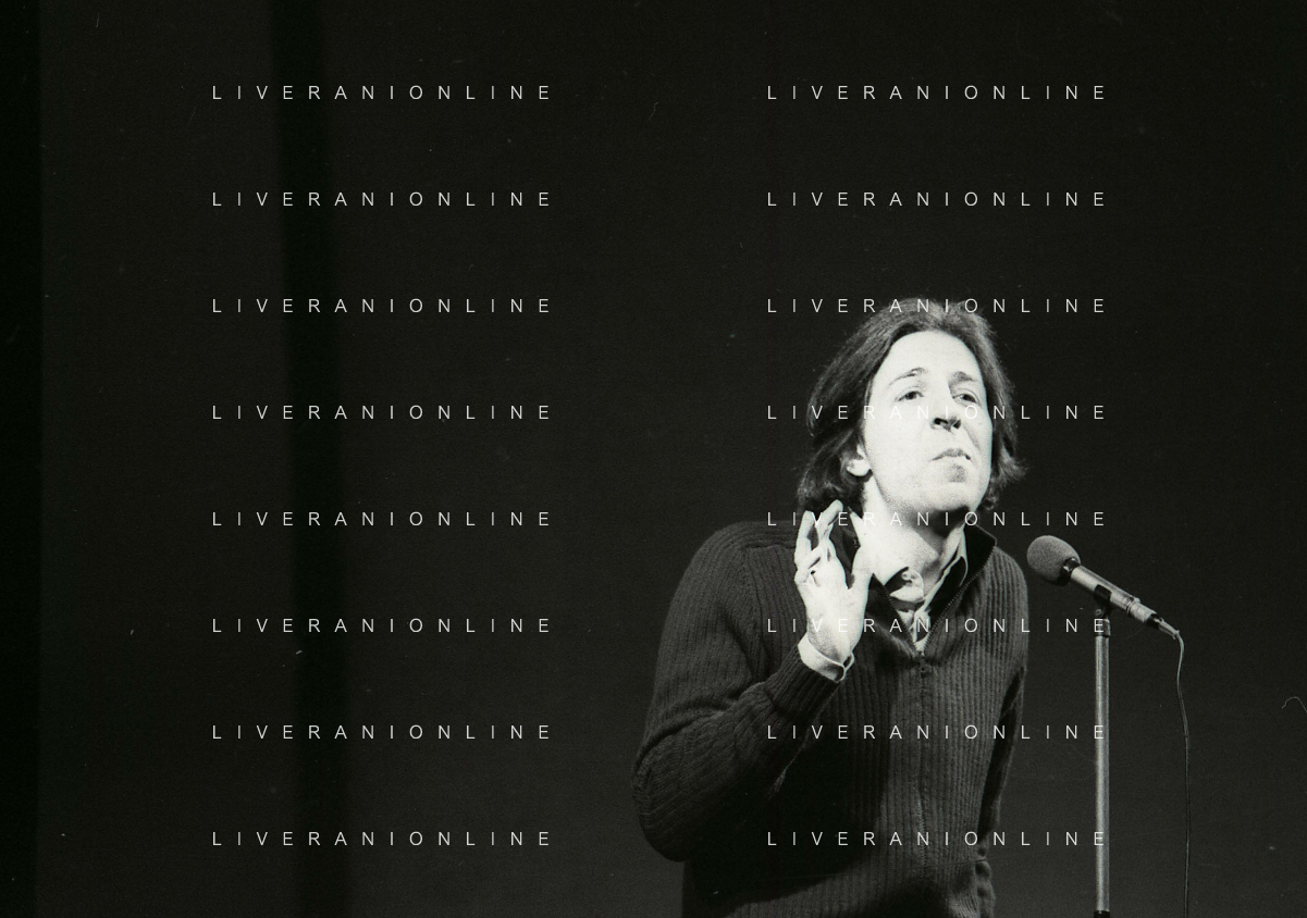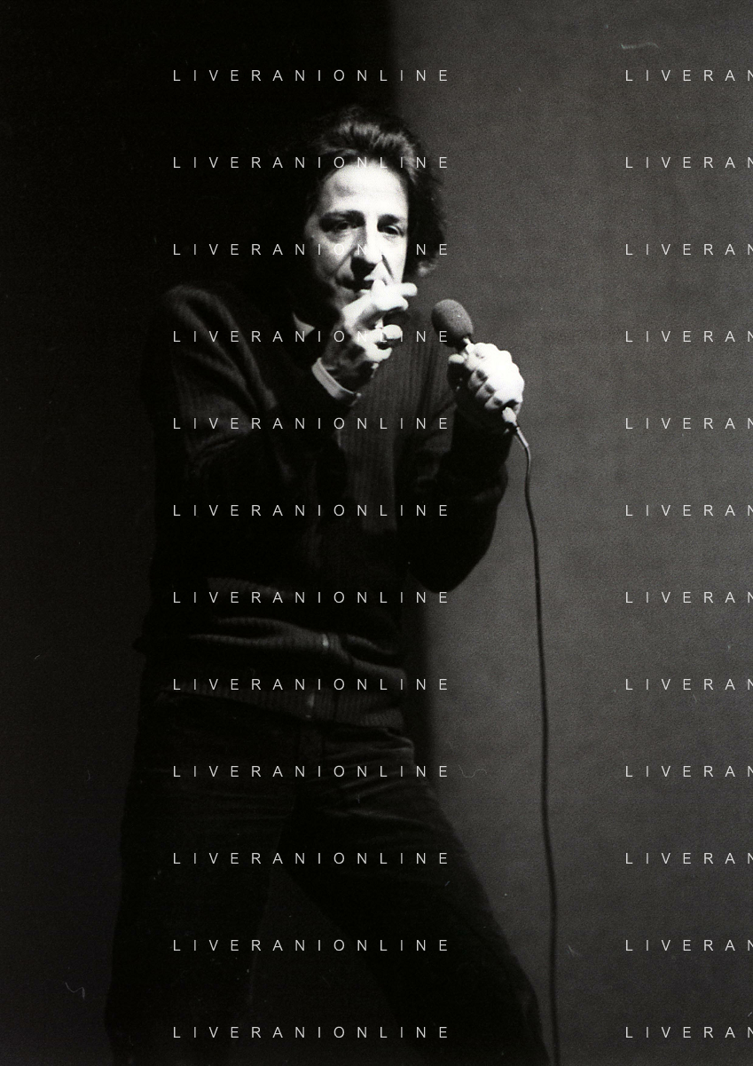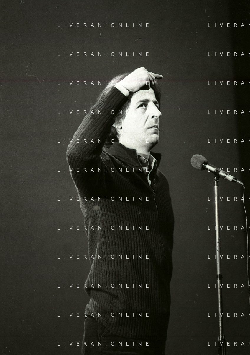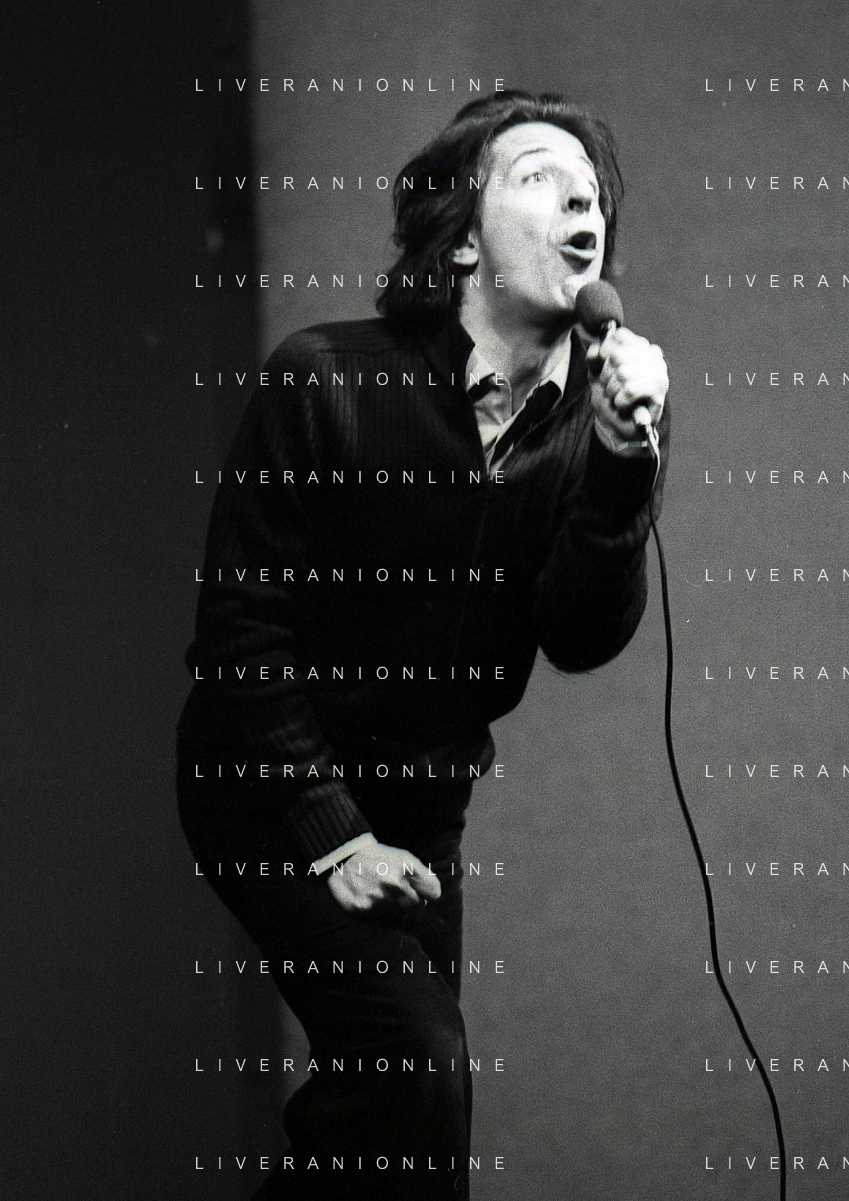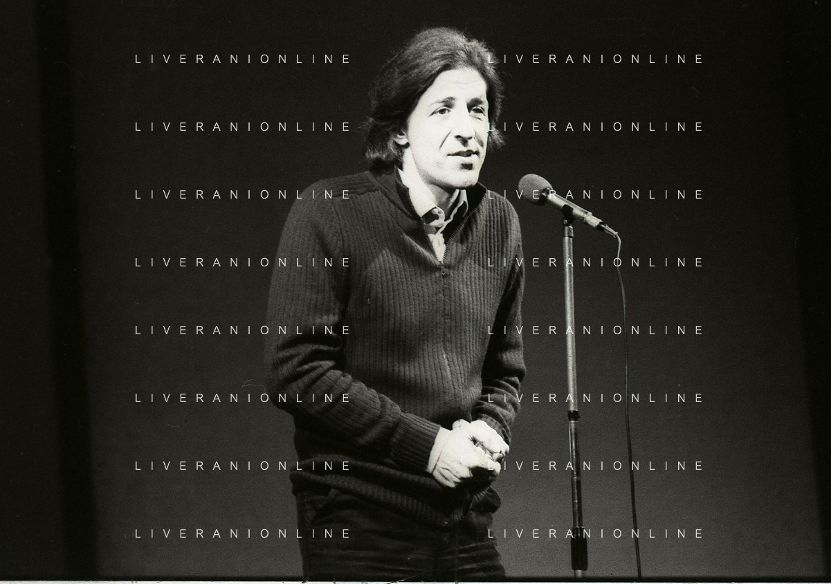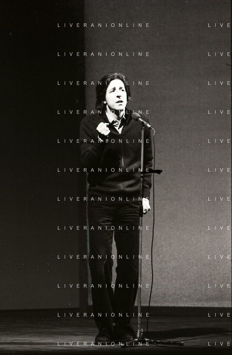 RETROSPETTIVA GIORGIO GABER CANTANTE NELLA FOTO GIORGIO GABER NELL'ANNO 1980 A MILANO TEATRO LIRICO CON OMBRETTA COLLI E LA FIGLIA DALIA AG ALDO LIVERANI SAS