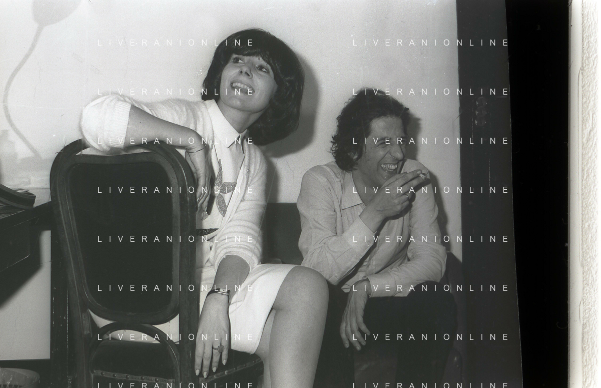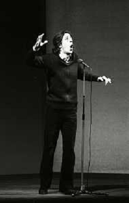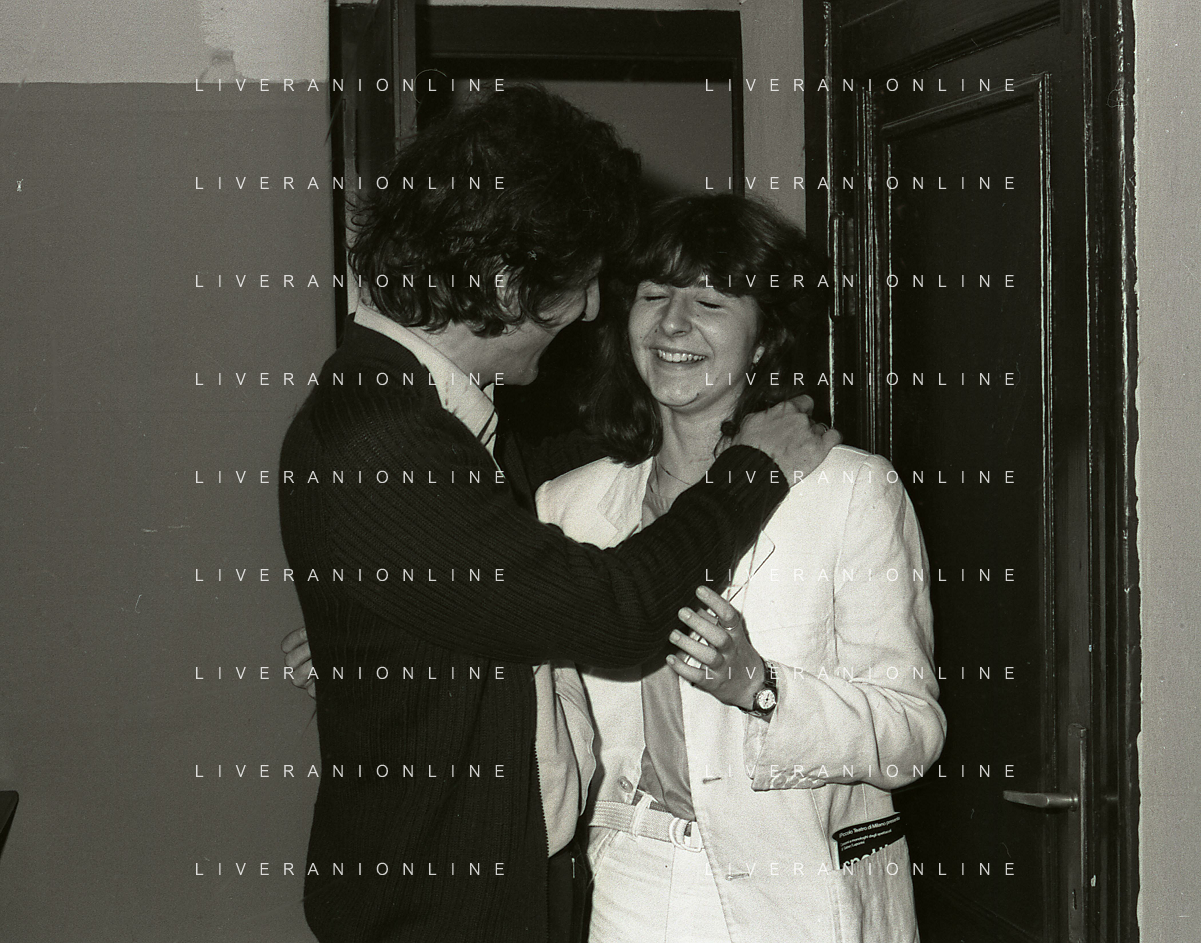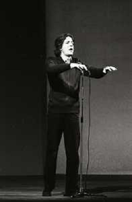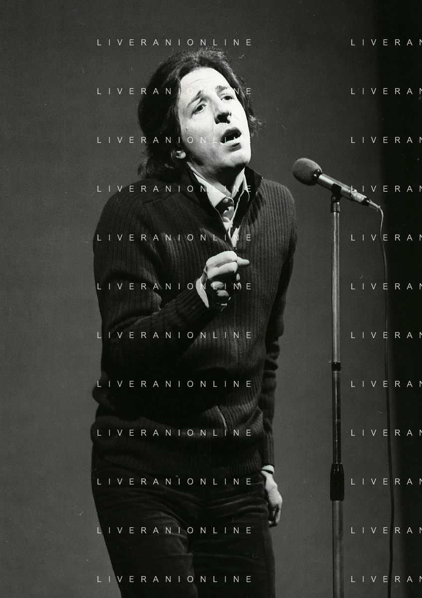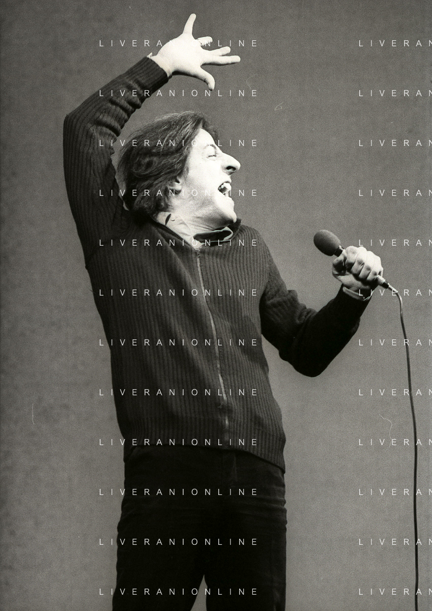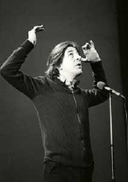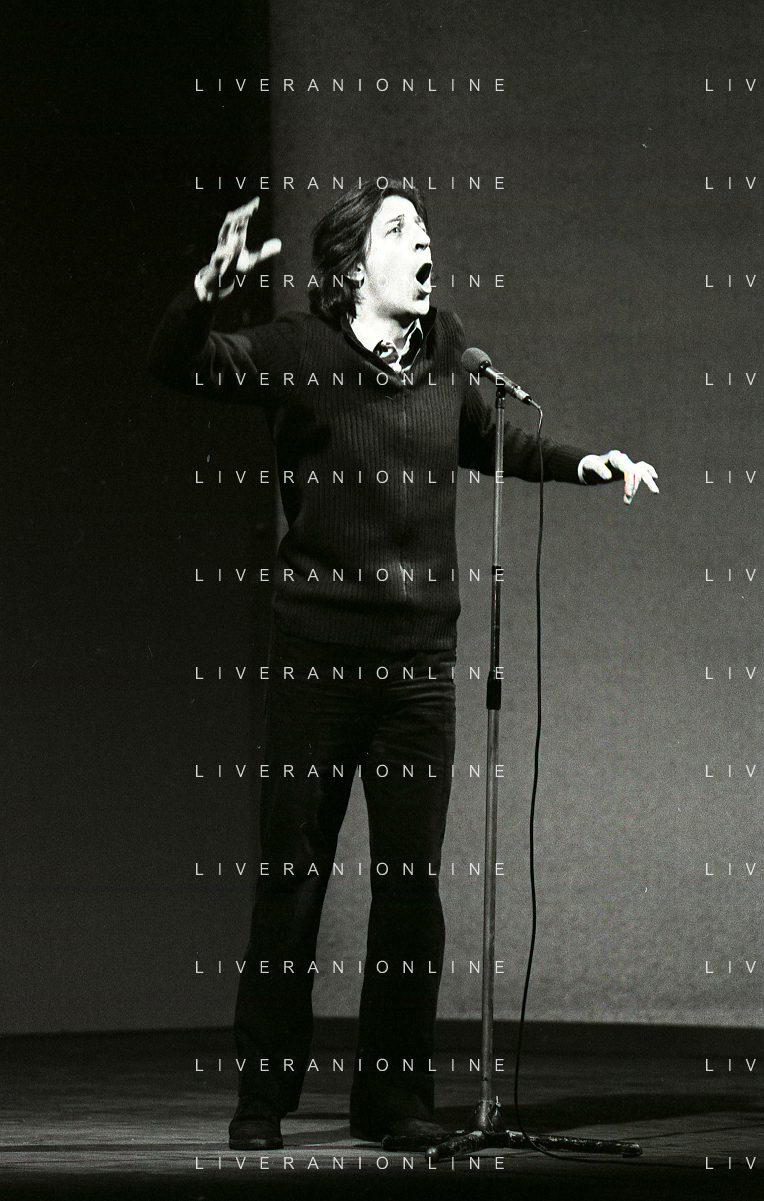 RETROSPETTIVA GIORGIO GABER CANTANTE NELLA FOTO GIORGIO GABER NELL'ANNO 1980 A MILANO TEATRO LIRICO CON OMBRETTA COLLI E LA FIGLIA DALIA AG ALDO LIVERANI SAS