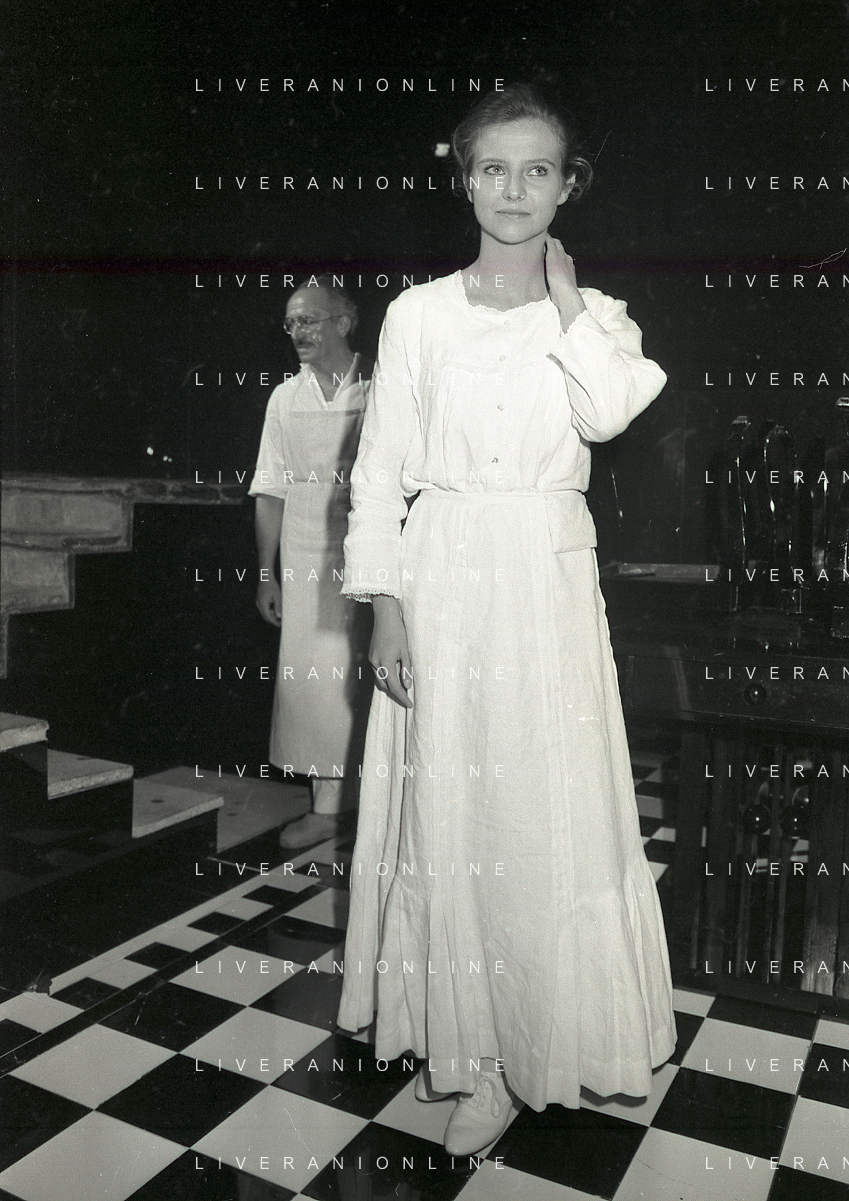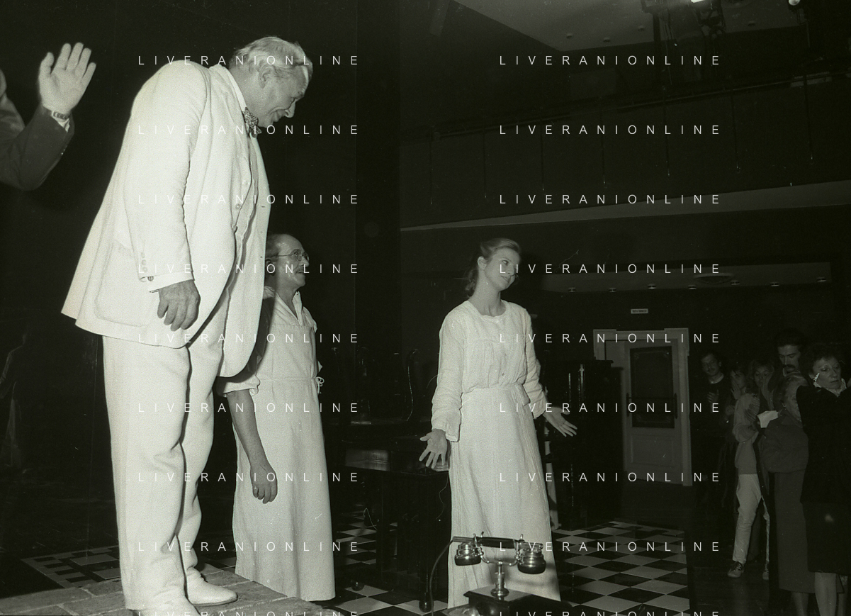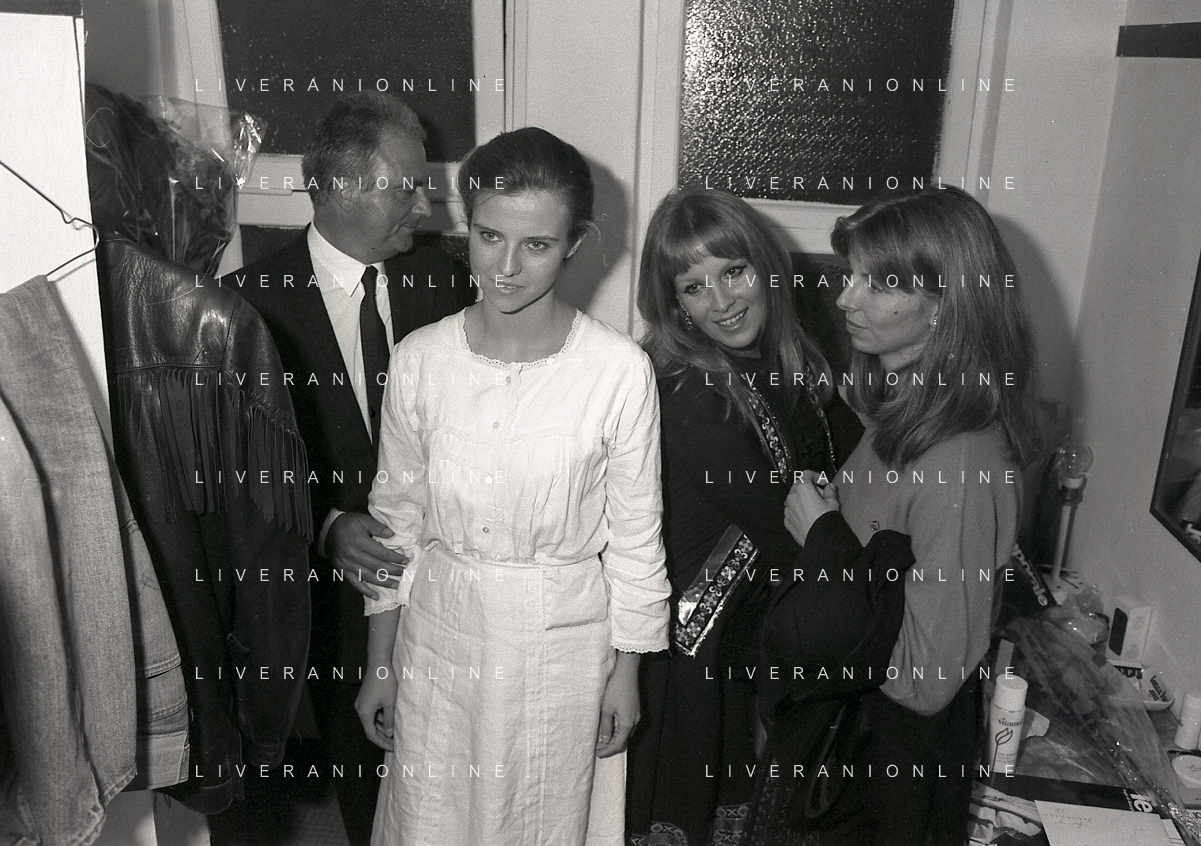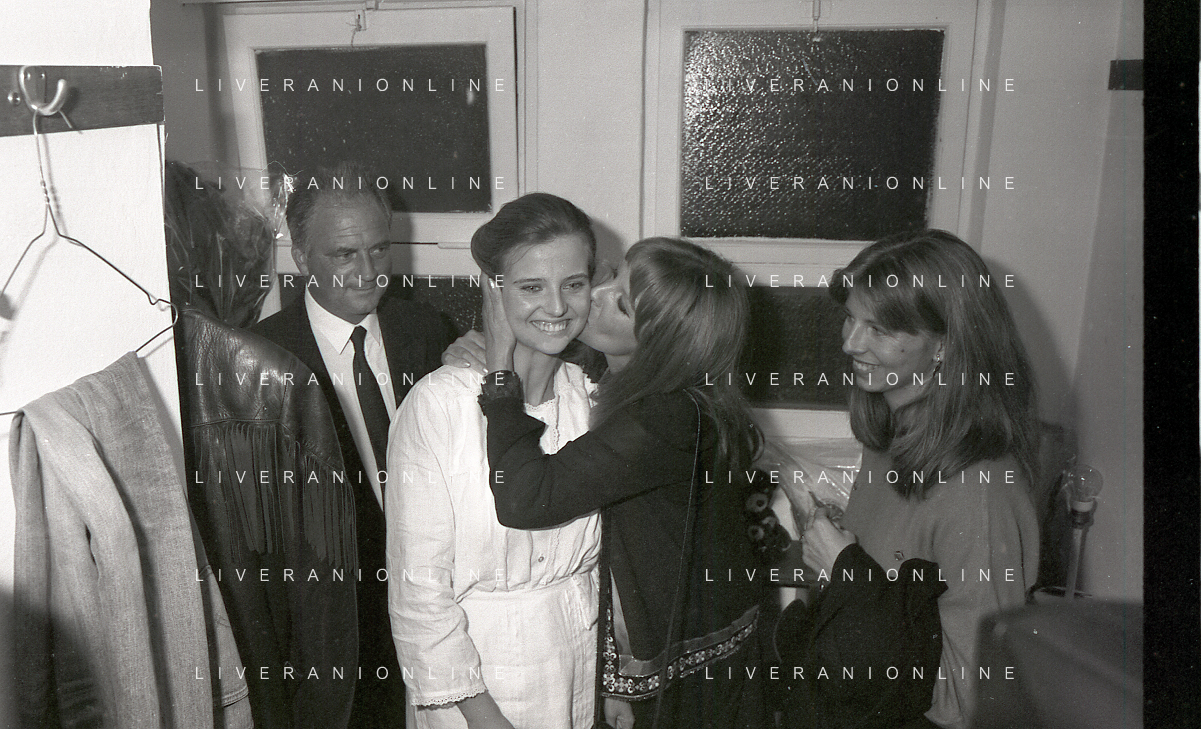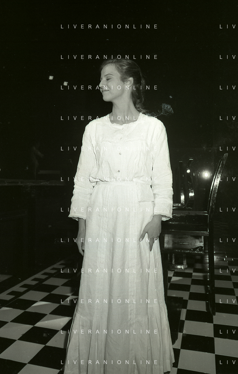 RETROSPETTIVA ANTONELLA INTERLENGHI ATTRICE NELLA FOTO ANTONELLA INTERLENGHI A MILANO AL PICCOLO TEATRO NELL'ANNO 1981 COI PARENTI AG ALDO LIVERANI SAS