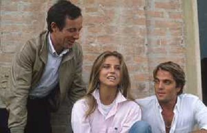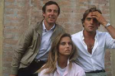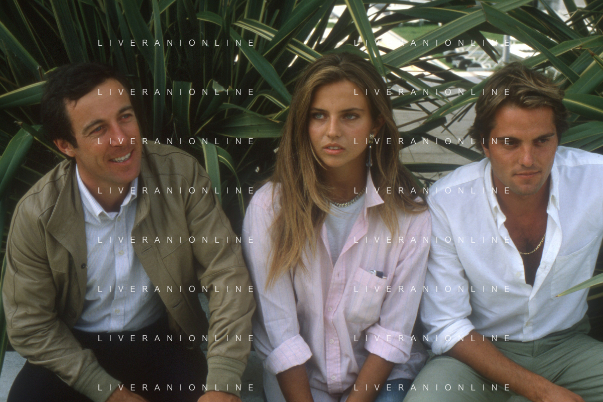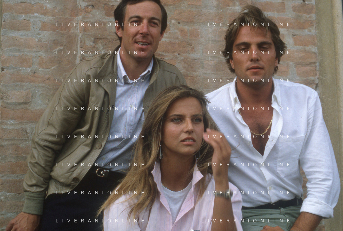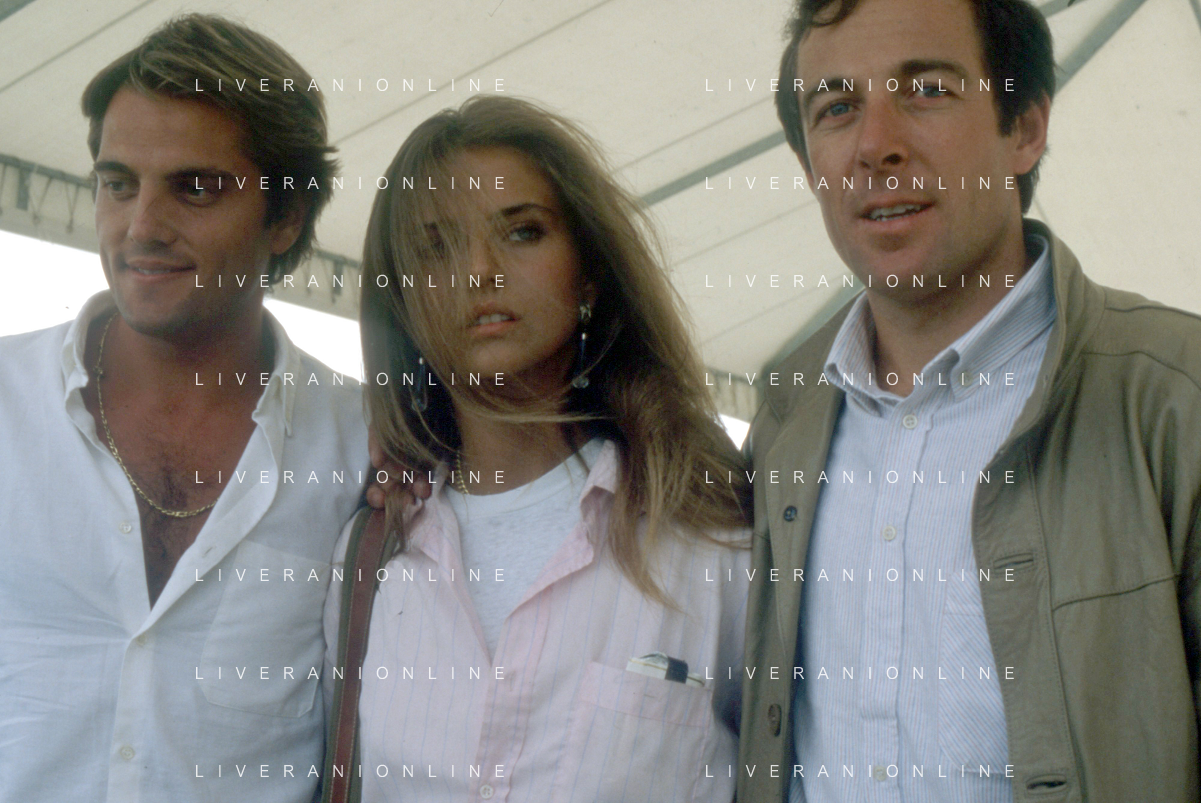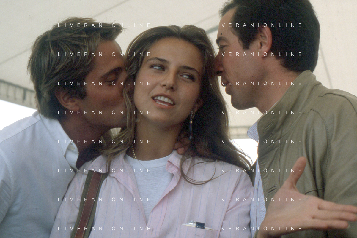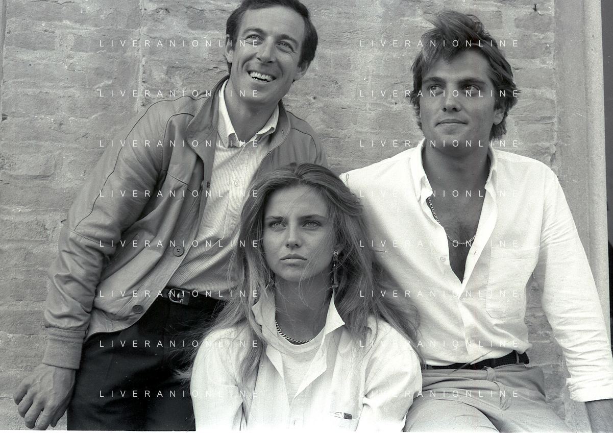 RETROSPETTIVA ANTONELLA INTERLENGHI ATTRICE NELLA FOTO ANTONELLA INTERLENGHI A VENEZIA CON SAVERIO VALLONE E GUSTAVO THOENI NELL'ANNO 1981 AG ALDO LIVERANI SAS