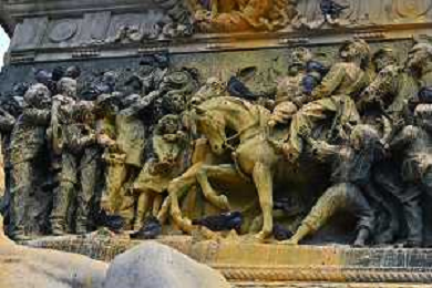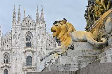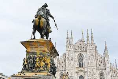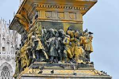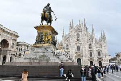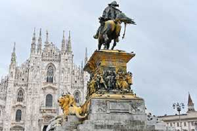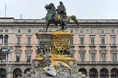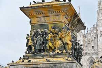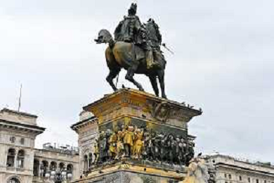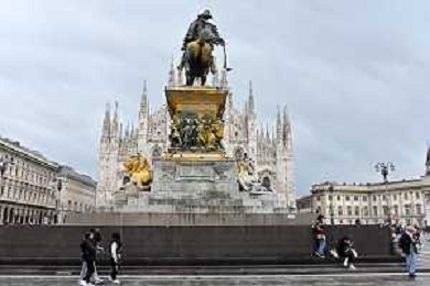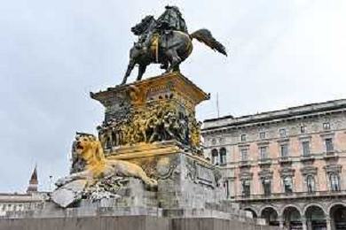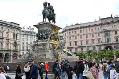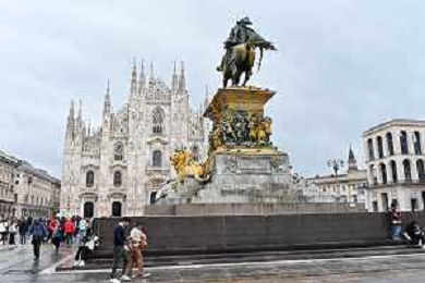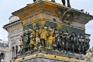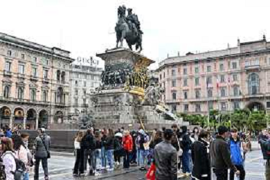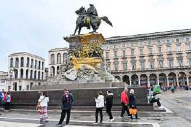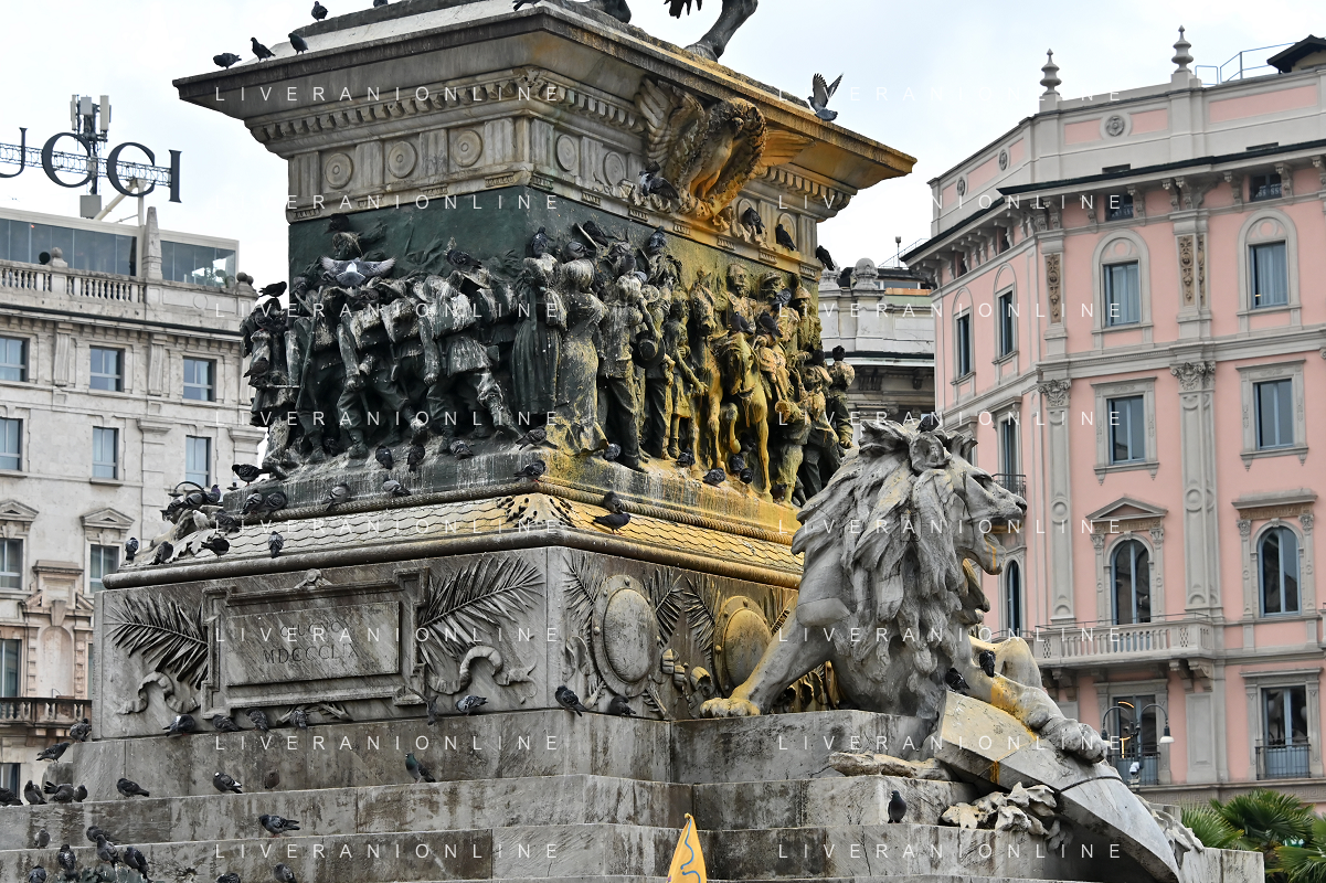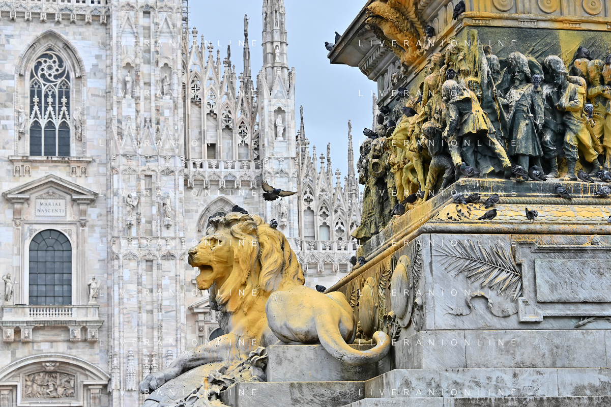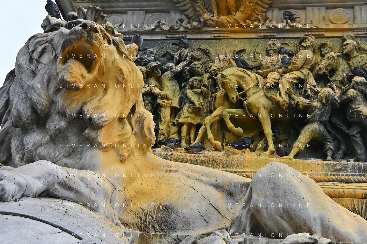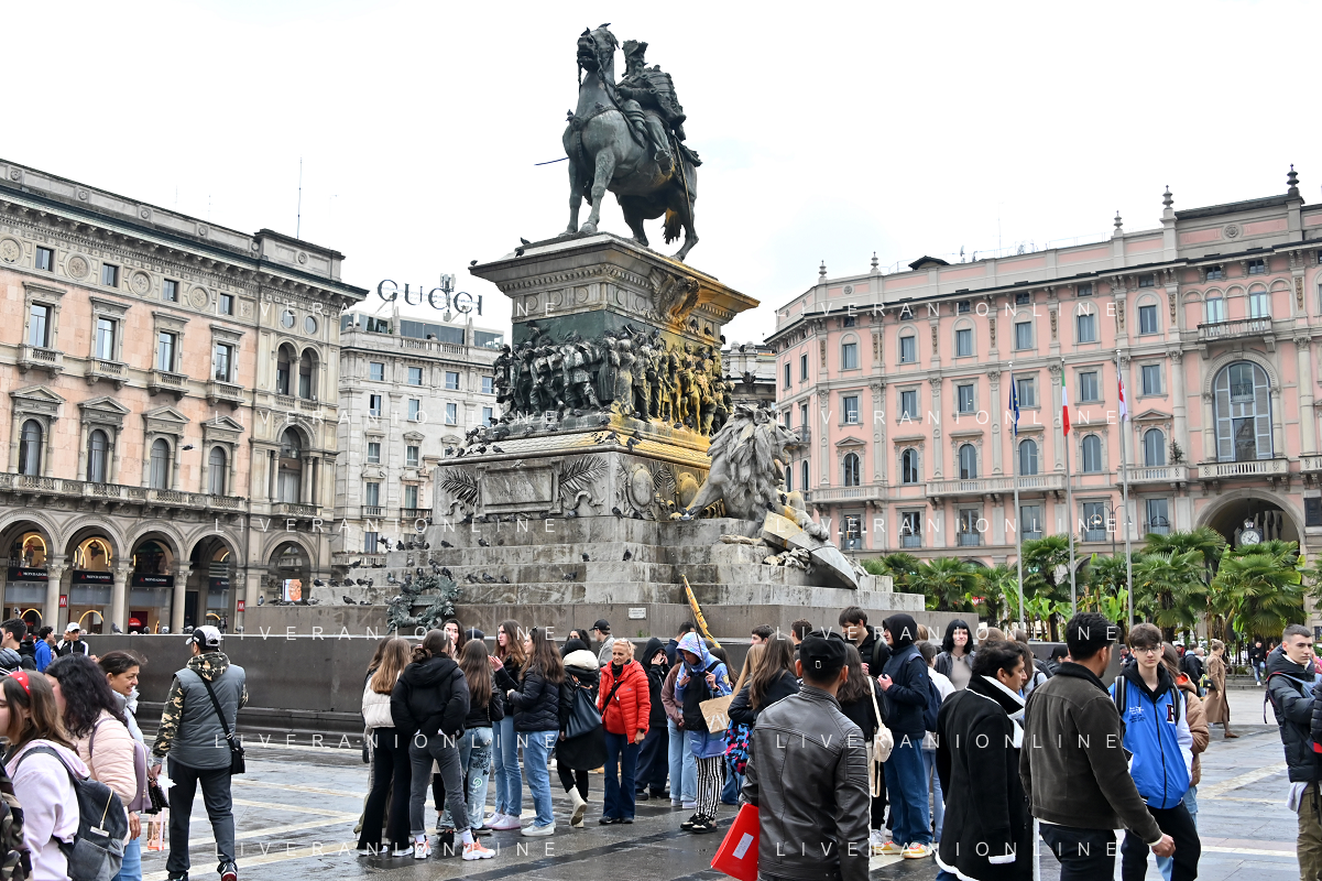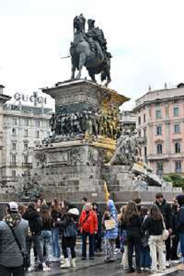 -TVRG Il monumento in piazza Duomo dedicato a Vittorio Emanuele II imbratttao con la vernice dagli attivisti - Milano 13-04-2023