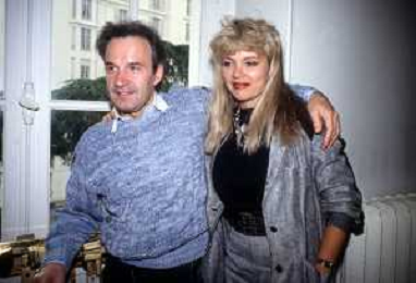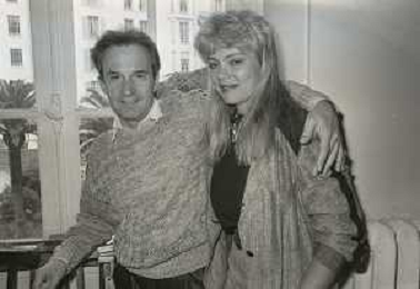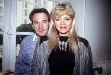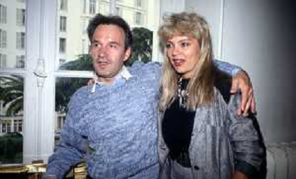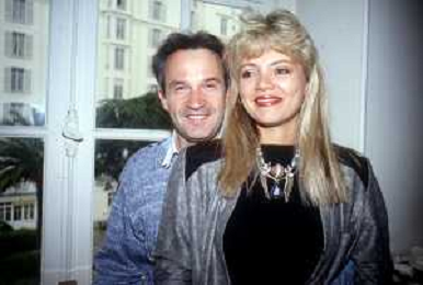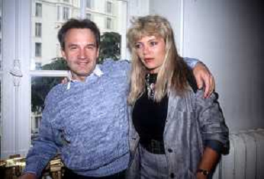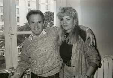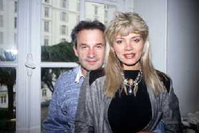 DIA-RETROSPETTIVA GIORGIO MORODER PRODUTTORE DISCOGRAFICO -COMPOSITORE E DISK JOCKEY NELLA FOTO GIORGIO MORODER A CANNES NELL’ANNO 1984 CON HELEN ST. JOHN AGENZIA ALDO LIVERANI SAS
