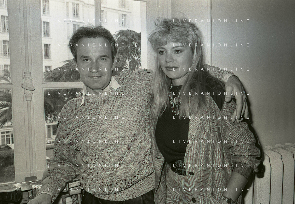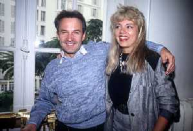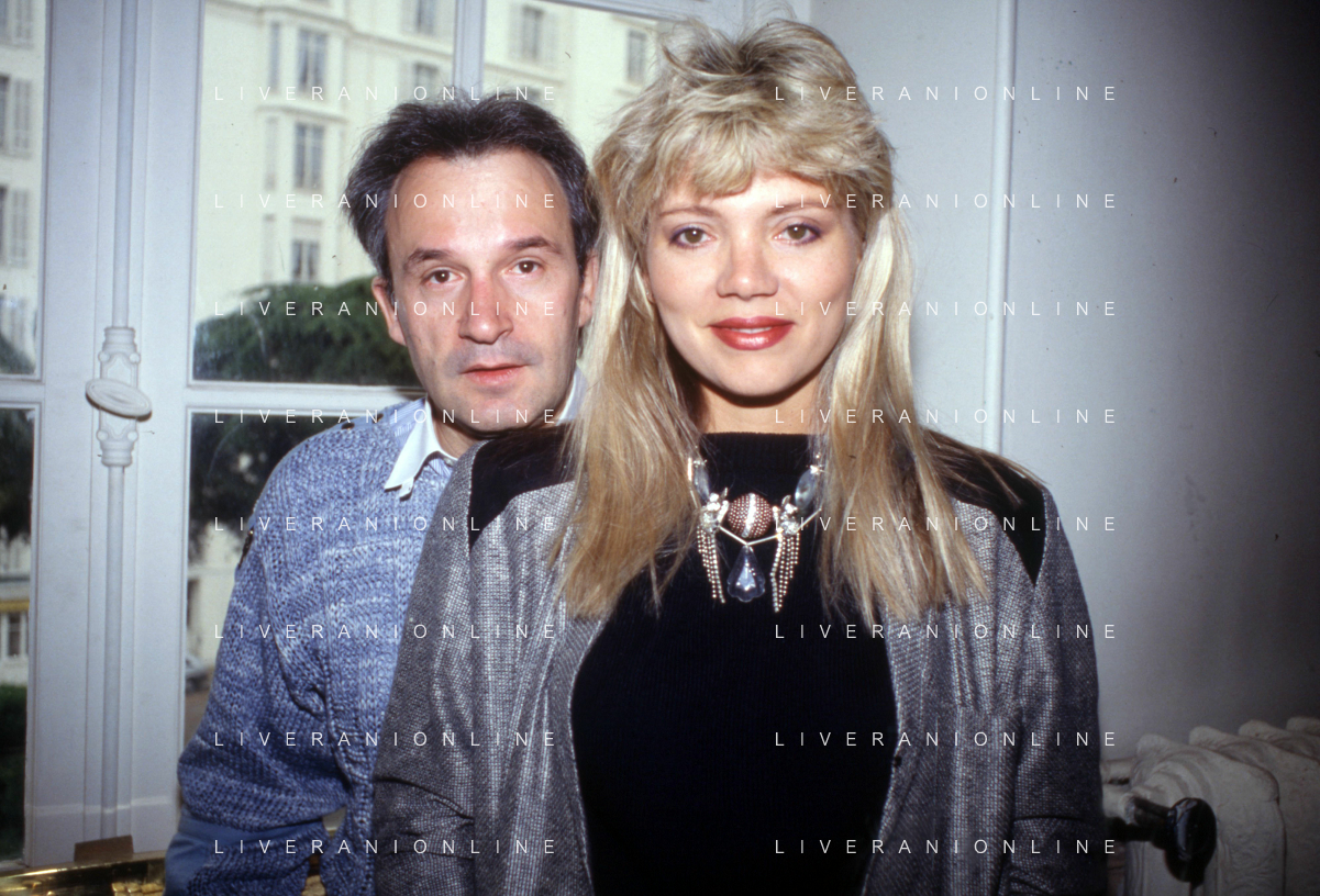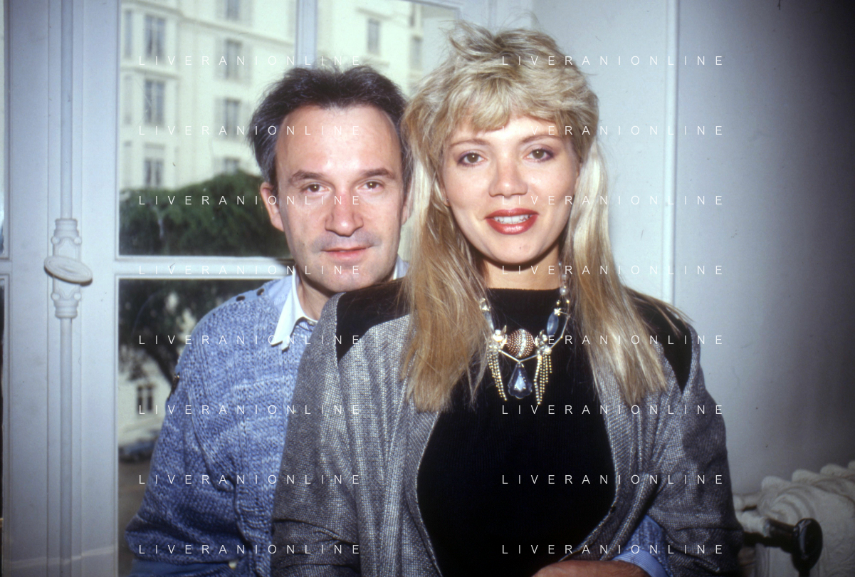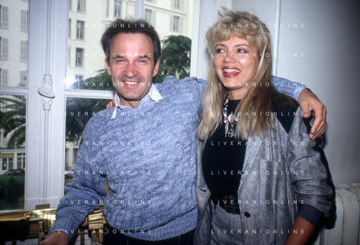 RETROSPETTIVA GIORGIO MORODER PRODUTTORE DISCOGRAFICO-COMPOSITORE E DISK JOCKEY NELLA FOTO GIRGIO MORODER CON ELENA ST JOHN A CANNES NELL'ANNO 1984 AG ALDO LIVERANI SAS