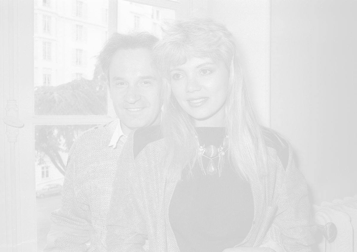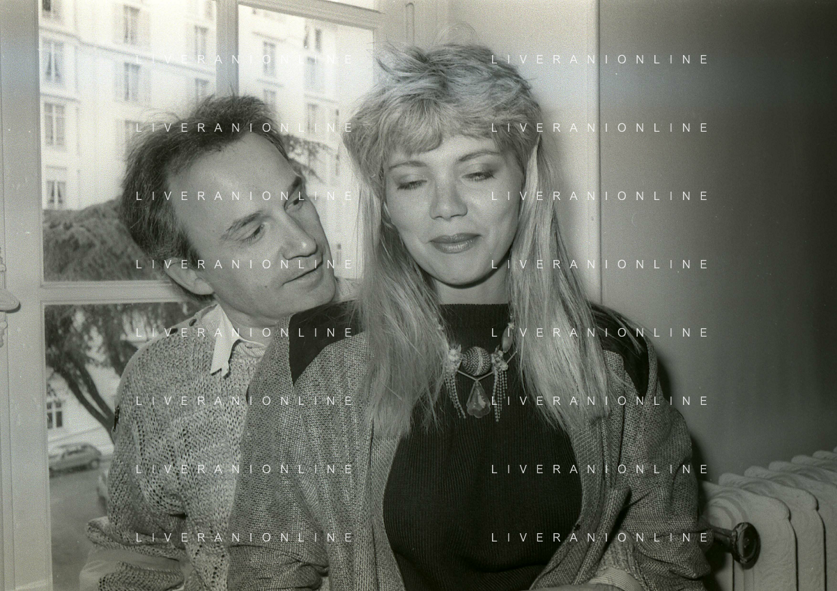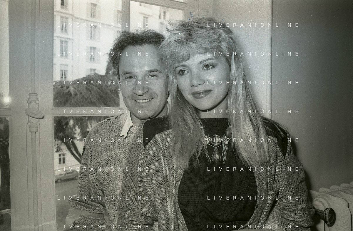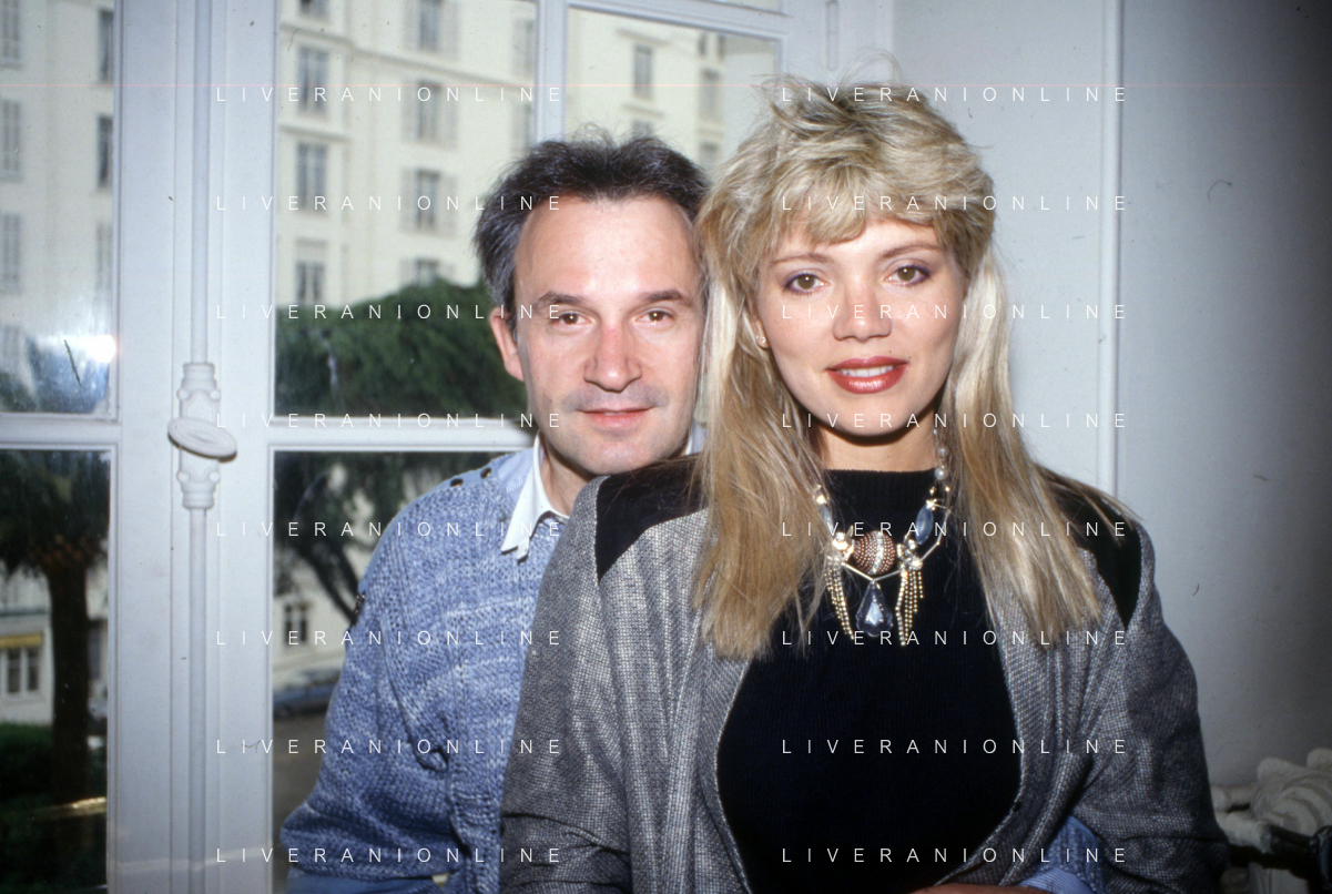 RETROSPETTIVA GIORGIO MORODER PRODUTTORE DISCOGRAFICO-COMPOSITORE E DISK JOCKEY NELLA FOTO GIRGIO MORODER CON ELENA ST JOHN A CANNES NELL'ANNO 1984 AG ALDO LIVERANI SAS