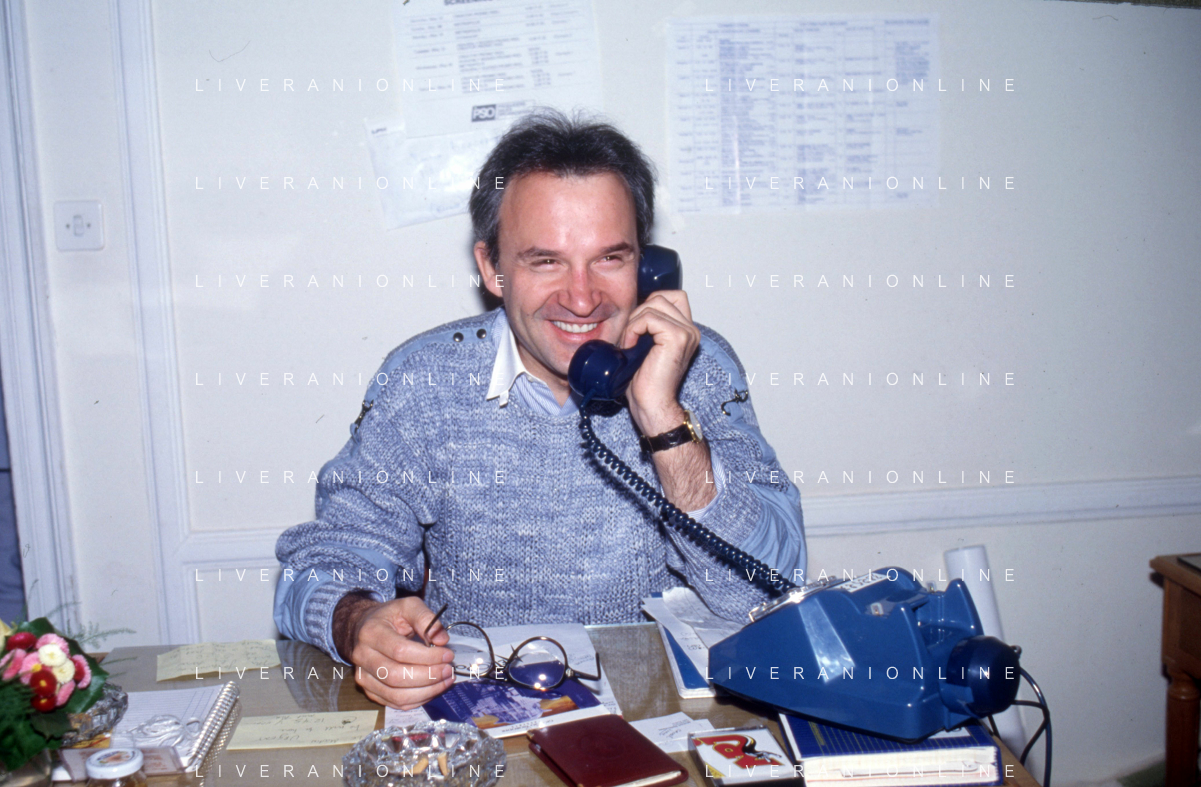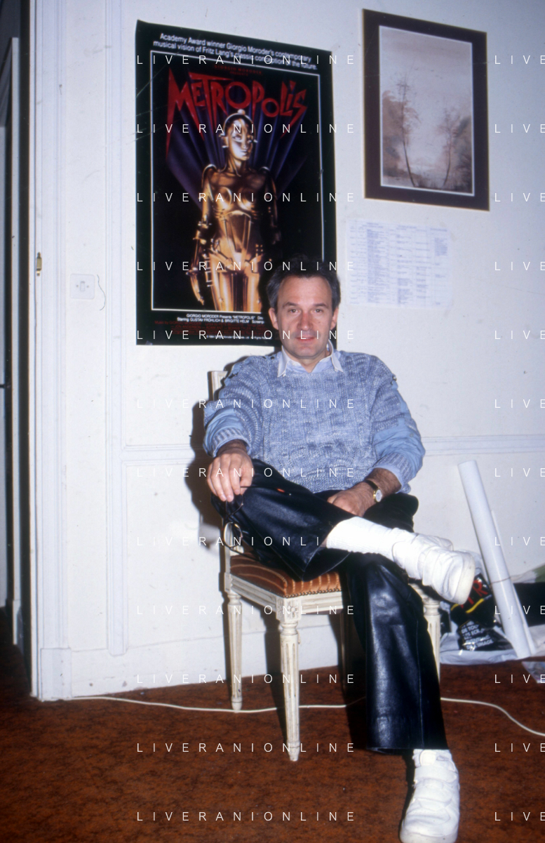 DIA-RETROSPETTIVA GIORGIO MORODER PRODUTTORE DISCOGRAFICO -COMPOSITORE E DISK JOCKEY NELLA FOTO GIORGIO MORODER A ROMA IL 09 DICEMBRE 1989 DURANTE I SORTEGGI PER I MONDIALI DI ITALIA ’90 AGENZIA ALDO LIVERANI SAS