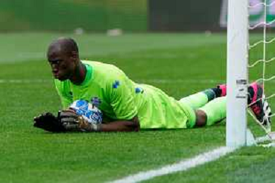 Alfred Gomis (Como 1907) during the Italian soccer Serie B match SSC Bari vs Como 1907 on April 15, 2023 at the San Nicola stadium in Bari, Italy. Photo by Emmanuele Mastrodonato/ag. Aldo Liverani sas/ AGENZIA ALDO LIVERANI SAS