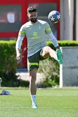 TVRG Allenamento Milan nella foto Olivier Giroud (Milan) Carnago (VA) 17-04-2023 Centro sportivo Milanello Allenamento Milan in preparazione della gara di ritorno contro il Napoli valevole per i quarti di finale della UEFA Champions League foto Roberto Garavaglia/ag. Aldo Liverani sas