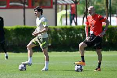 TVRG Allenamento Milan nella foto Charles de Ketelaere (Milan) Carnago (VA) 17-04-2023 Centro sportivo Milanello Allenamento Milan in preparazione della gara di ritorno contro il Napoli valevole per i quarti di finale della UEFA Champions League foto Roberto Garavaglia/ag. Aldo Liverani sas