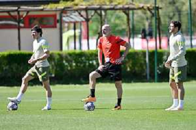 TVRG Allenamento Milan nella foto un momento dell'allenamento Carnago (VA) 17-04-2023 Centro sportivo Milanello Allenamento Milan in preparazione della gara di ritorno contro il Napoli valevole per i quarti di finale della UEFA Champions League foto Roberto Garavaglia/ag. Aldo Liverani sas