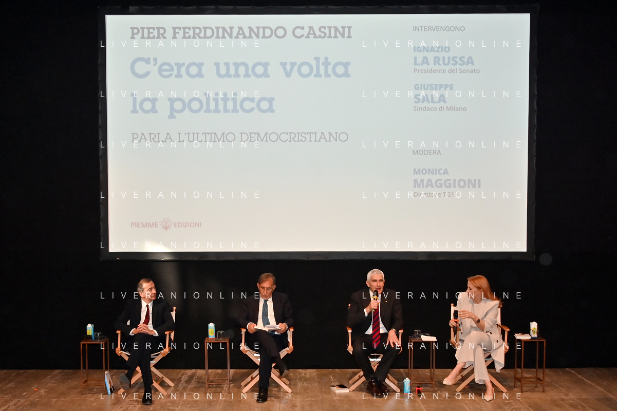 TVRG Presentazione libro Casini nella foto da SX Giuseppe Sala, Ignazio La Russa, Pier Ferdinando Casini e Monica Maggioni Milano 17-04-2023 Presentazione del libro di Pier Ferdinando Casini foto Roberto Garavaglia/ag. Aldo Liverani sas/ AGENZIA ALDO LIVERANI SAS