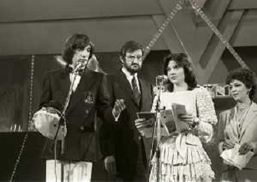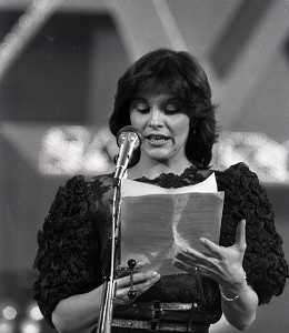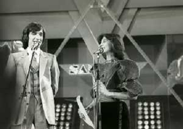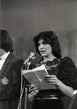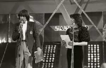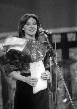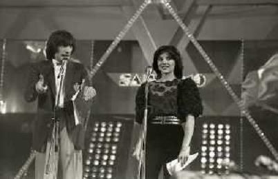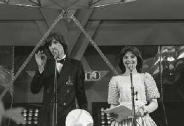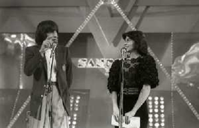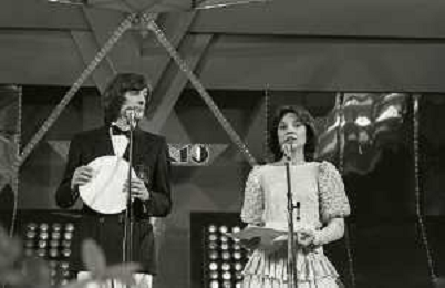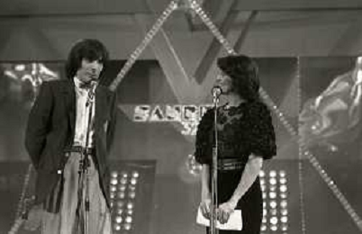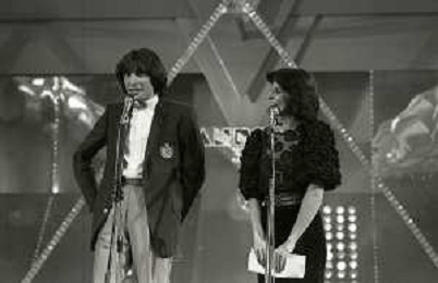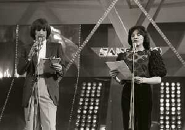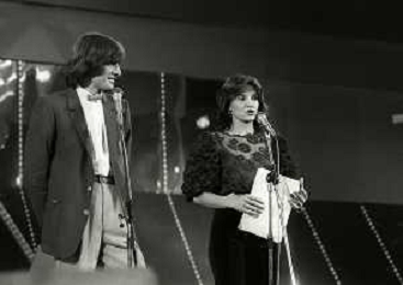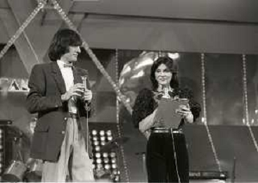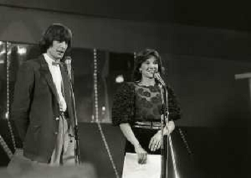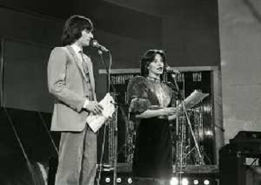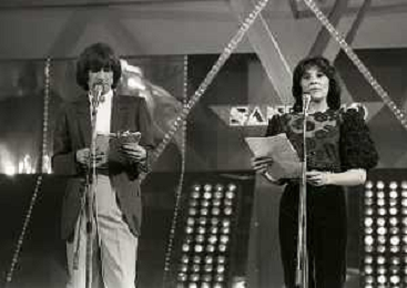 RETROSPETTIVA PATRIZIA ROSSETTI CONDUTTRICE TELEVISIVA E ATTRICE NELLA FOTO PATRIZIA ROSSETTI AL FESTIVAL DI SANREMO NELL'ANNO 1982 CON CLAUDIO CECCHETTO AG ALDO LIVERANI SAS
