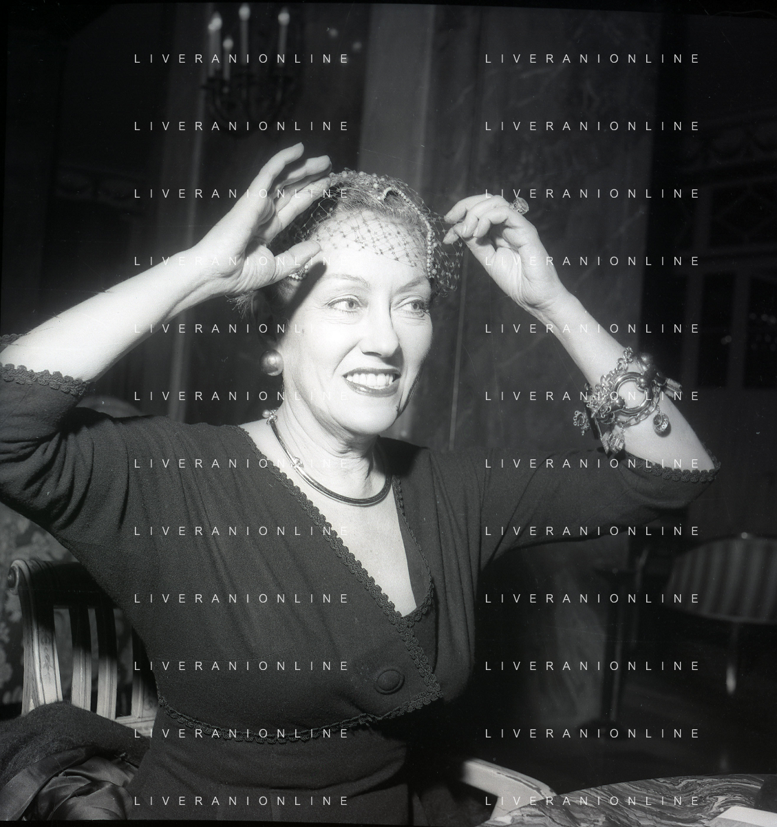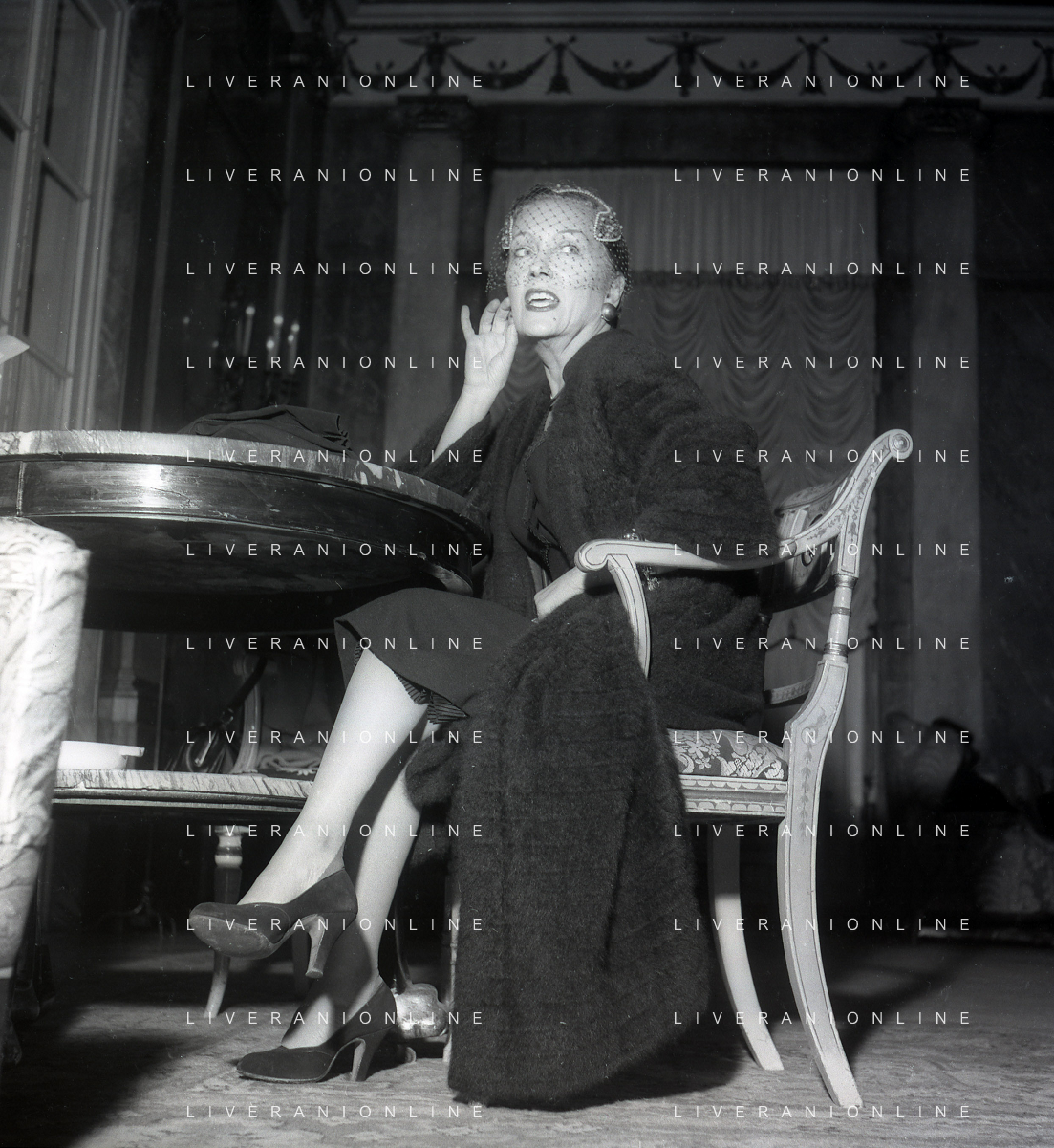 RETROSPETTIVA GLORIA SWANSON PSEUDONIMO DI GLORIA MAY JOSEPHINE SVENSSON ATTRICE NELLA FOTO GLORIA SWANSON PSEUDONIMO DI GLORIA MAY JOSEPHINE SVENSSON A ROMA NELL'ANNO 1955 FOTO SANDRO VESPASIANI-AG ALDO LIVERANI SAS