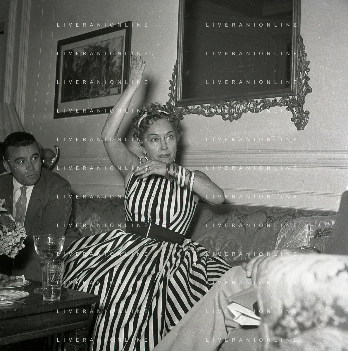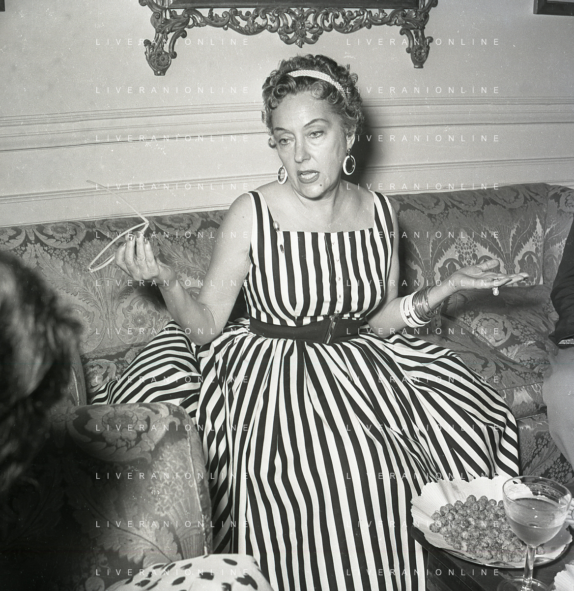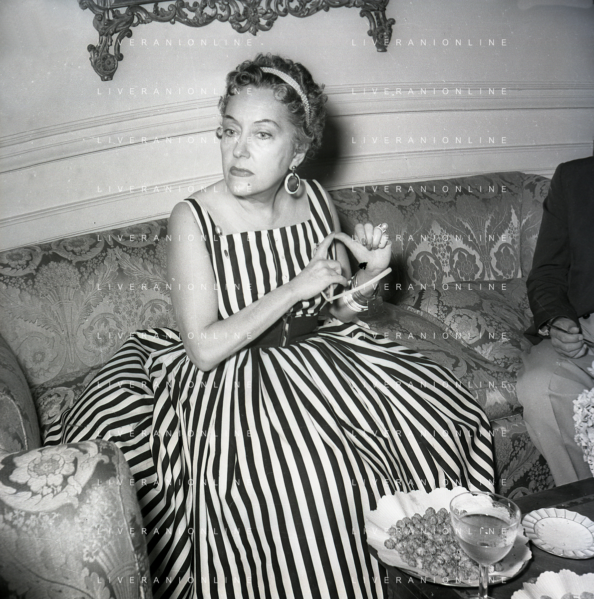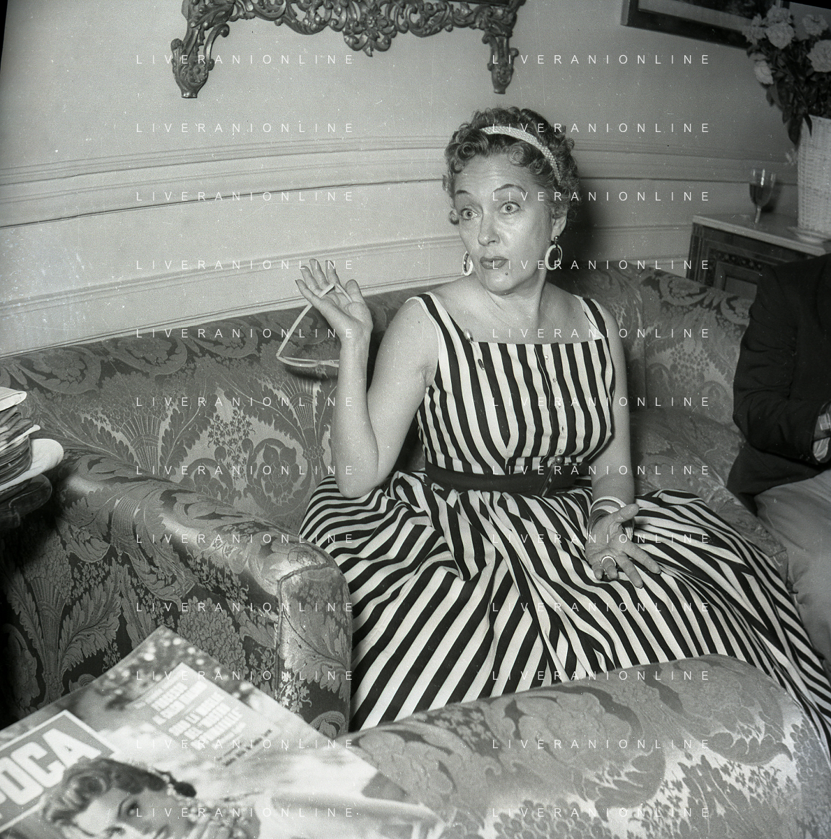 RETROSPETTIVA GLORIA SWANSON PSEUDONIMO DI GLORIA MAY JOSEPHINE SVENSSON ATTRICE NELLA FOTO GLORIA SWANSON PSEUDONIMO DI GLORIA MAY JOSEPHINE SVENSSON A ROMA NELL'ANNO 1955 IN UNA CONFERENZA STAMPA FOTO SANDRO VESPASIANI-AG ALDO LIVERANI SAS