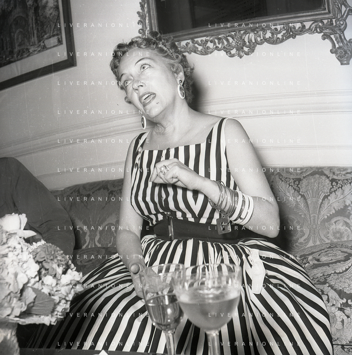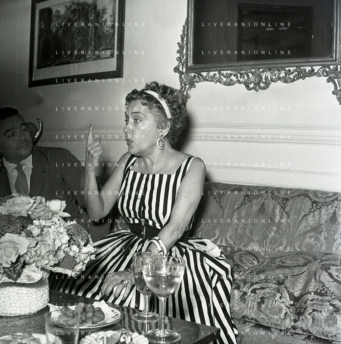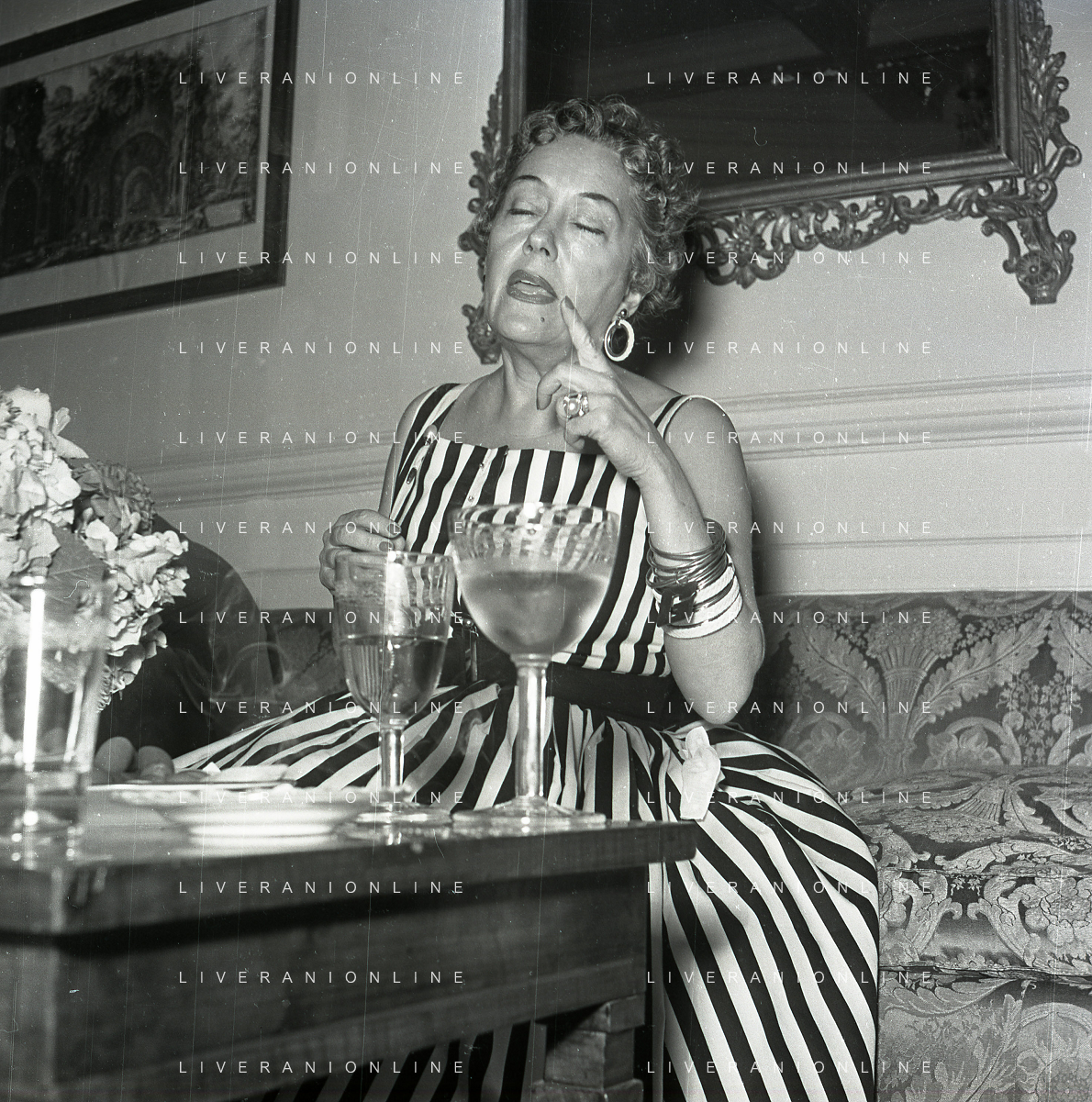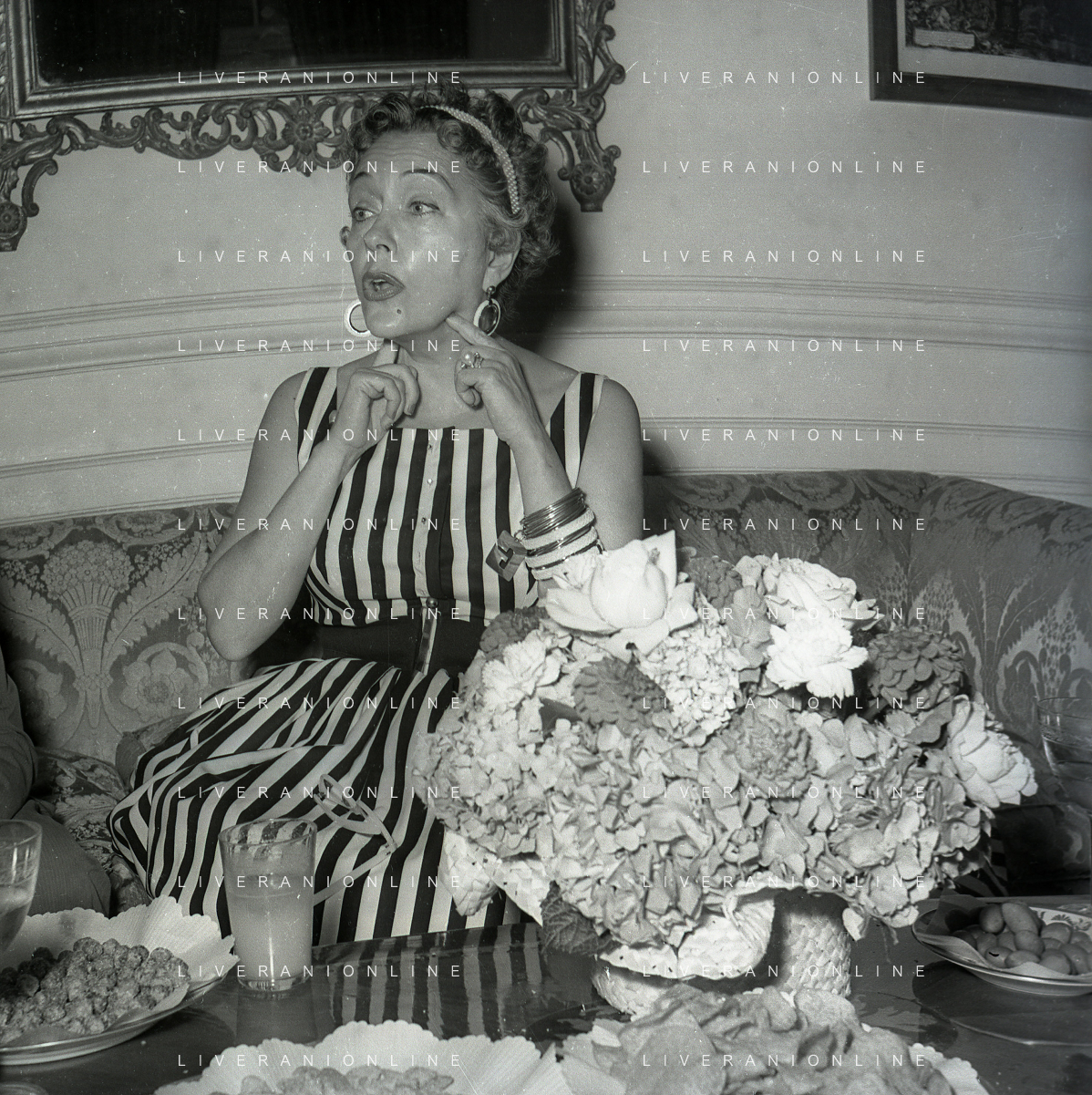 RETROSPETTIVA GLORIA SWANSON PSEUDONIMO DI GLORIA MAY JOSEPHINE SVENSSON ATTRICE NELLA FOTO GLORIA SWANSON PSEUDONIMO DI GLORIA MAY JOSEPHINE SVENSSON A ROMA NELL'ANNO 1955 IN UNA CONFERENZA STAMPA FOTO SANDRO VESPASIANI-AG ALDO LIVERANI SAS