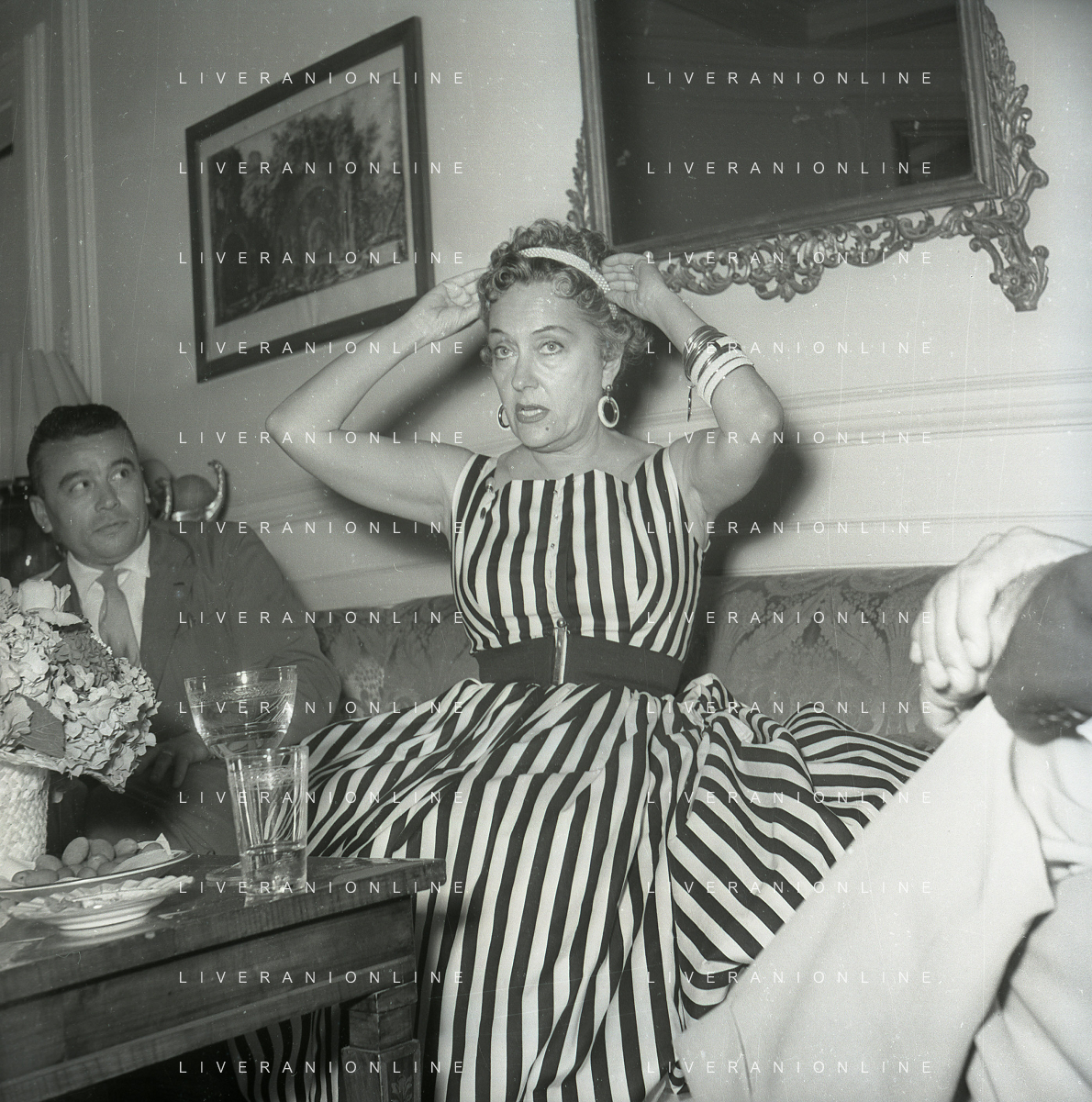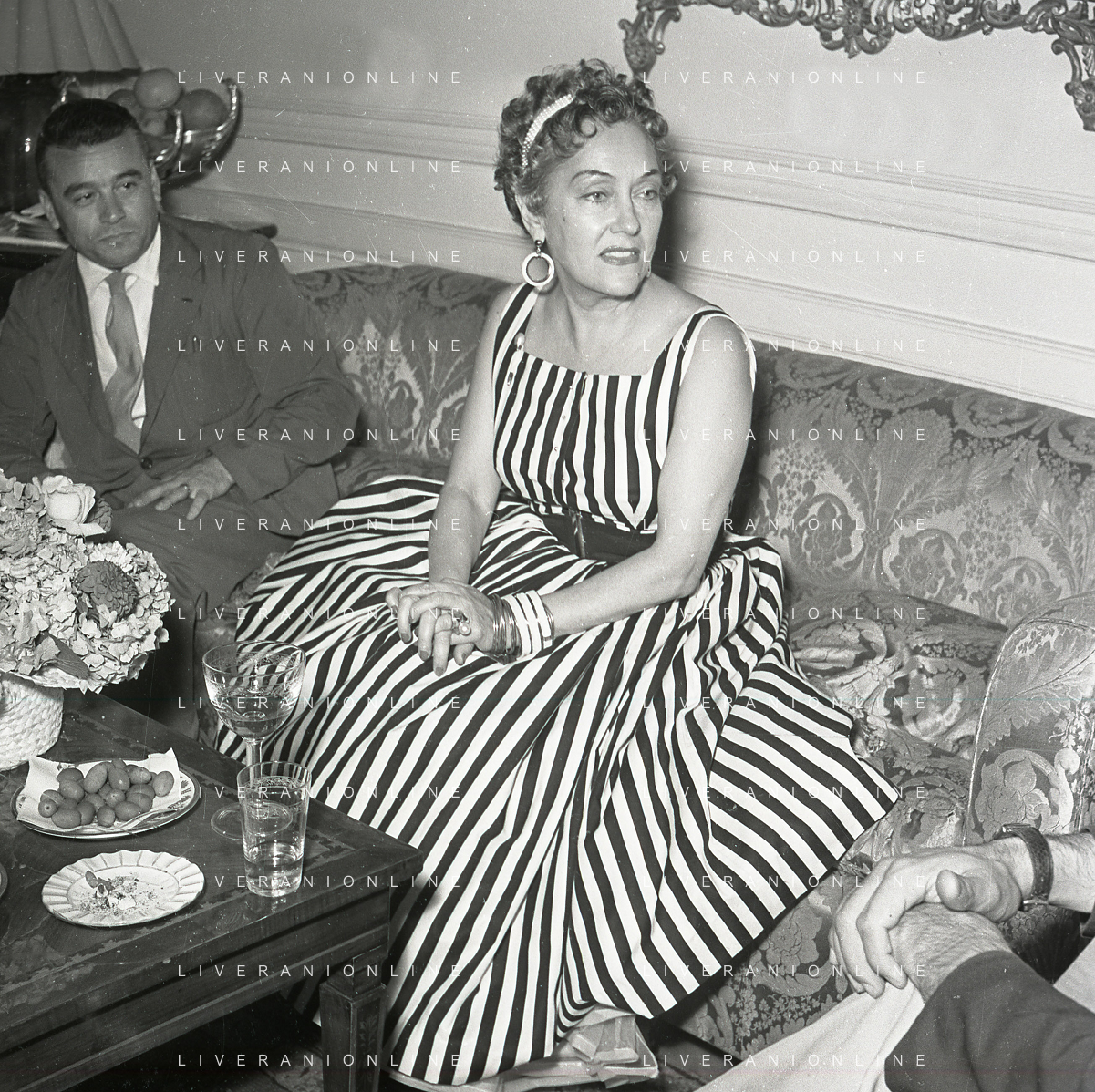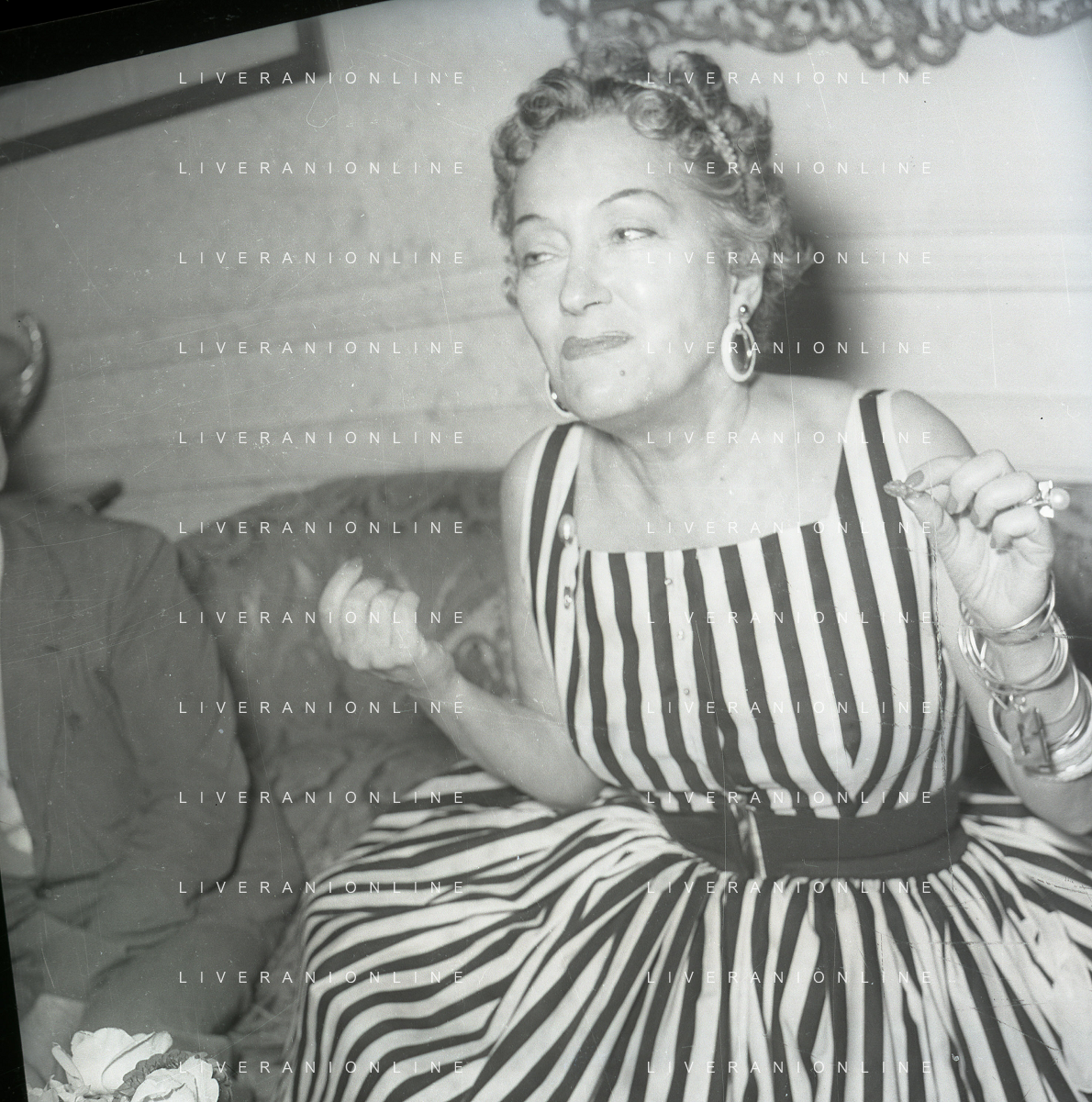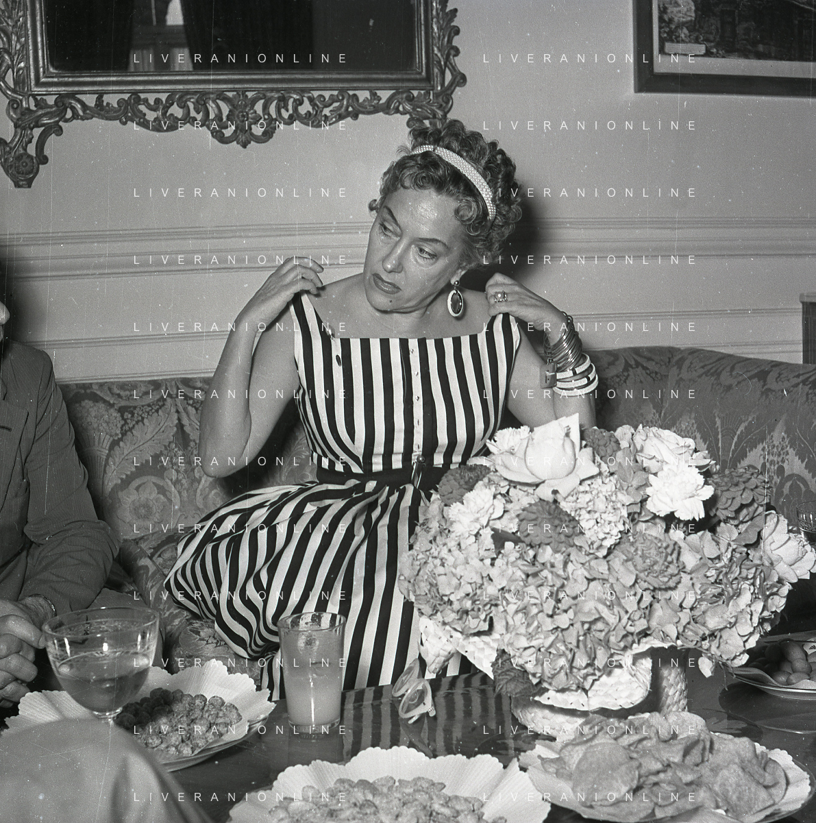 RETROSPETTIVA GLORIA SWANSON PSEUDONIMO DI GLORIA MAY JOSEPHINE SVENSSON ATTRICE NELLA FOTO GLORIA SWANSON PSEUDONIMO DI GLORIA MAY JOSEPHINE SVENSSON A ROMA NELL'ANNO 1955 IN UNA CONFERENZA STAMPA FOTO SANDRO VESPASIANI-AG ALDO LIVERANI SAS
