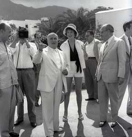RETROSPETTIVA ANGELO RIZZOLI EDITORE E PRODUTTORE CINEMATOGRAFICO NELLA FOTO ANGELO RIZZOLI A ISCHIA NELL'ANNO 1954 CON DAWN ADAMS AG ALDO LIVERANI SAS