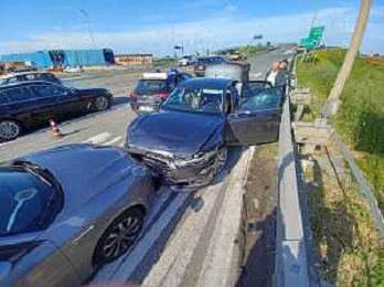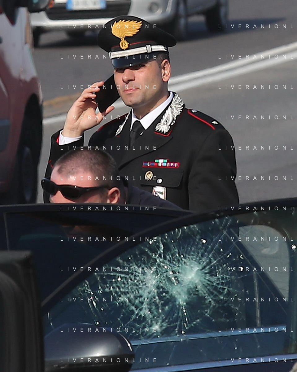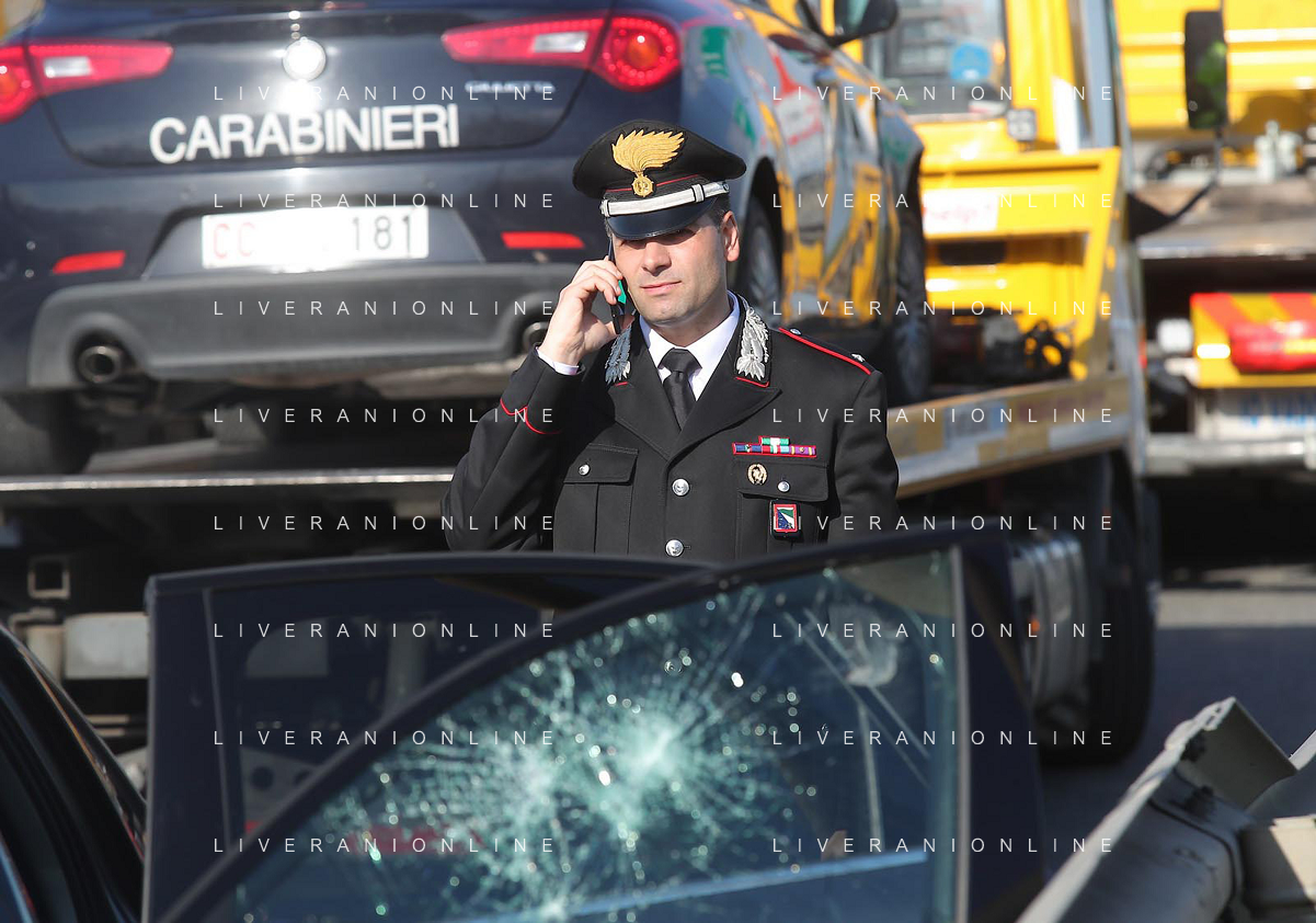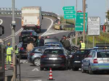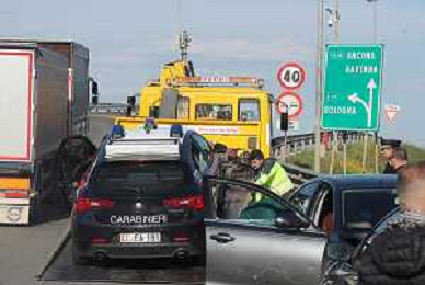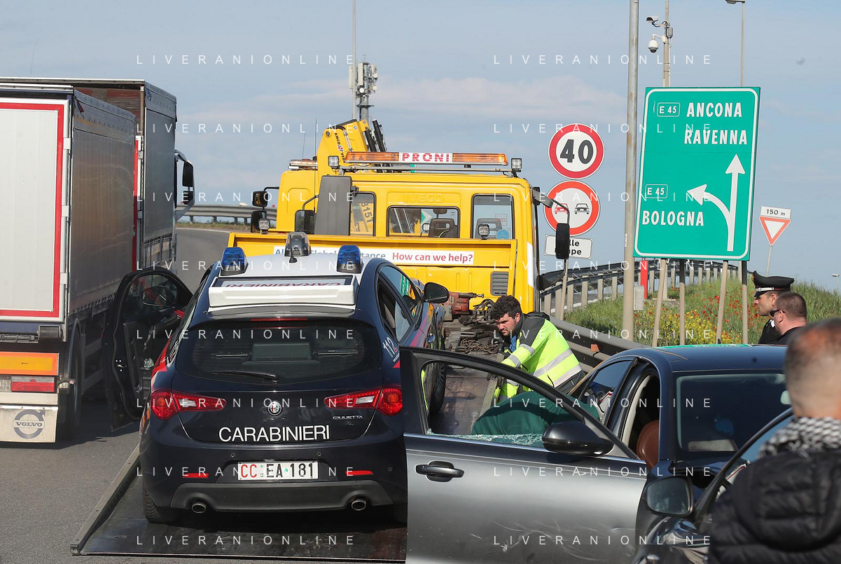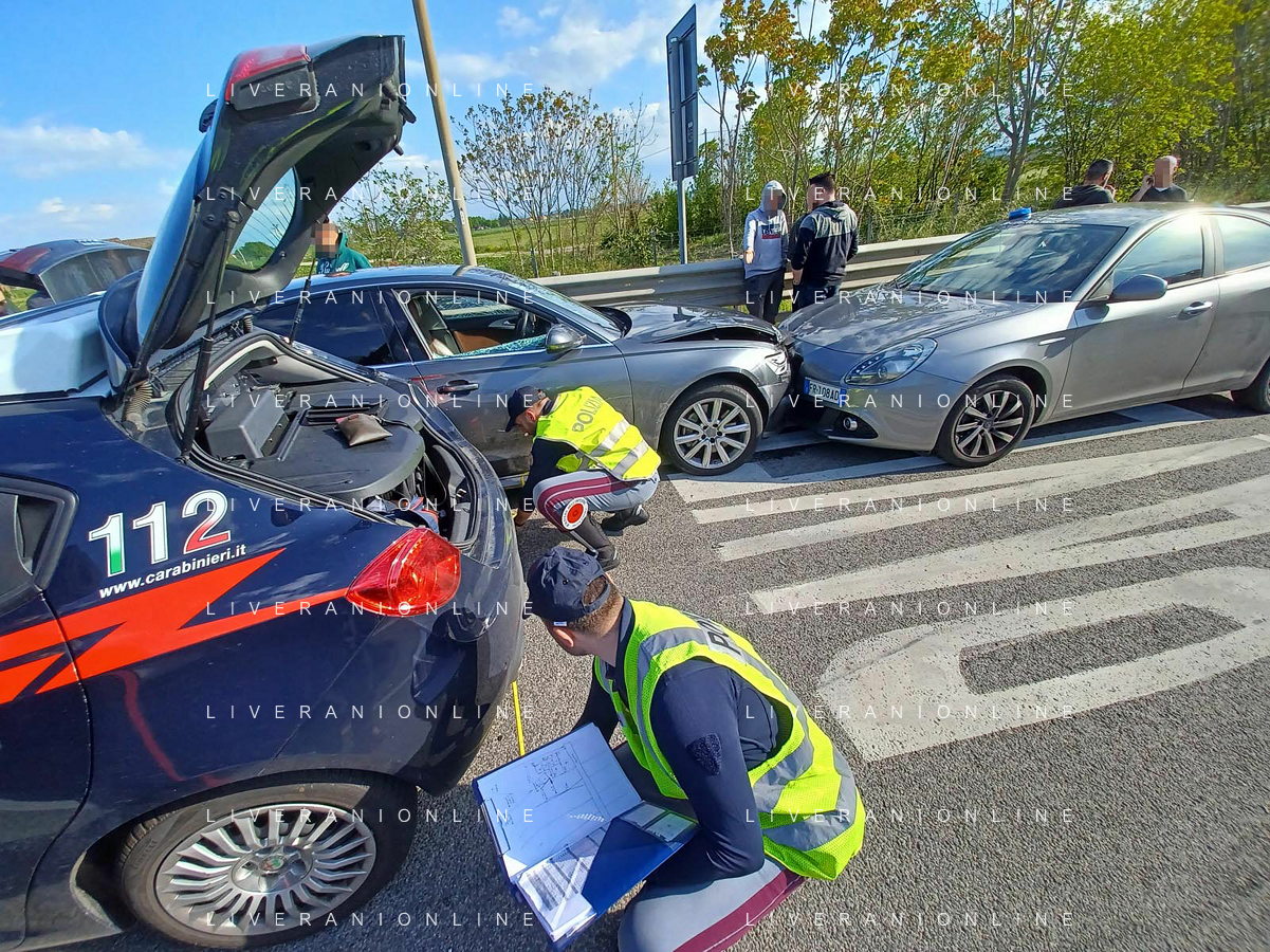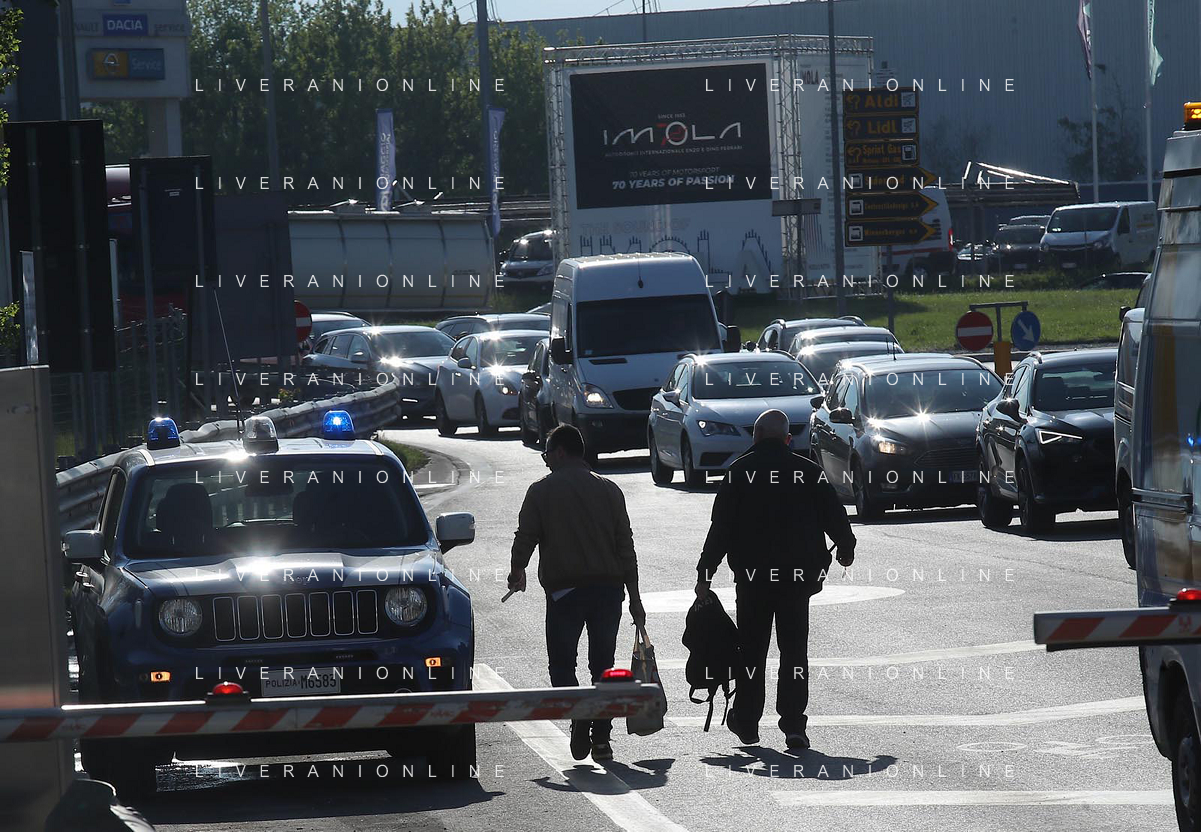 IMOLA 20 04 2023 POLIZIA DI STATO E CARABINIERI ARRESTANO DUE MALVIVENTI AL CASELLO AUTOSTRADALE DI IMOLA BLOCCANDO LA AUTO DEI MALVIVENTI CON DUE AUTO DELLE FORZE DELL'ORDINE