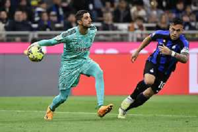 Mattia Perin (Juventus) e sulla DX Lautaro Martinez (Inter) Inter vs Juventus Milano 26-04-2023 Stadio Giuseppe Meazza San Siro Coppa Italia Frecciarossa - semifinale gara di ritorno foto Roberto Garavaglia/ag. Aldo Liverani sas / AGENZIA ALDO LIVERANI SAS