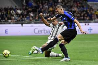 Edin Dzeko (Inter) segna il gol del 2 a 0 ma la rete viene annullata per fuorigioco Inter vs Juventus Milano 26-04-2023 Stadio Giuseppe Meazza San Siro Coppa Italia Frecciarossa - semifinale gara di ritorno foto Roberto Garavaglia/ag. Aldo Liverani sas/ AGENZIA ALDO LIVERANI SAS
