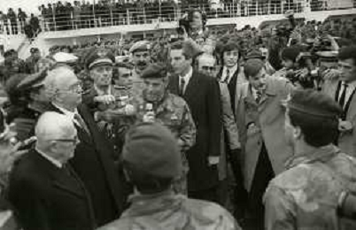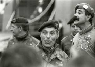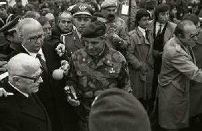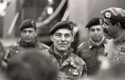 NEG-RETROSPETTIVA GENERALE FRANCO ANGIONI NELLA FOTO IL GENERALE FRANCO ANGIONI RIENTRA DAL LIBANO ALLA PRESENZA DEL PRESIDENTE DELLA REPUBBLICA ITALIANA SANDRO PERTINI E IL MINISTRO GIOVANNI SPADOLINI NELL'ANNO 1984 AG ALDO LIVERANI SAS