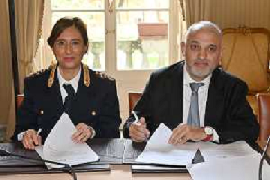 TVRG Firma protocollo sicurezza informatica nella foto Tiziana Liguori SX primo dirigente della Polizia di Stato e Antonio Sebastiano Purcaro DX segretario generale della Città Metropolitana di Milano Milano 27-04-2023 Firma del protocollo di collaborazione tra Citta' Metropolitana e Polizia di Stato per la prevenzione e il contrasto dei crimini informatici sui sistemi informativi critici dipendenti da Citta' Metropolitana di Milano foto Roberto Garavaglia/ag. Aldo Liverani sas/ AGENZIA ALDO LIVERANI SAS