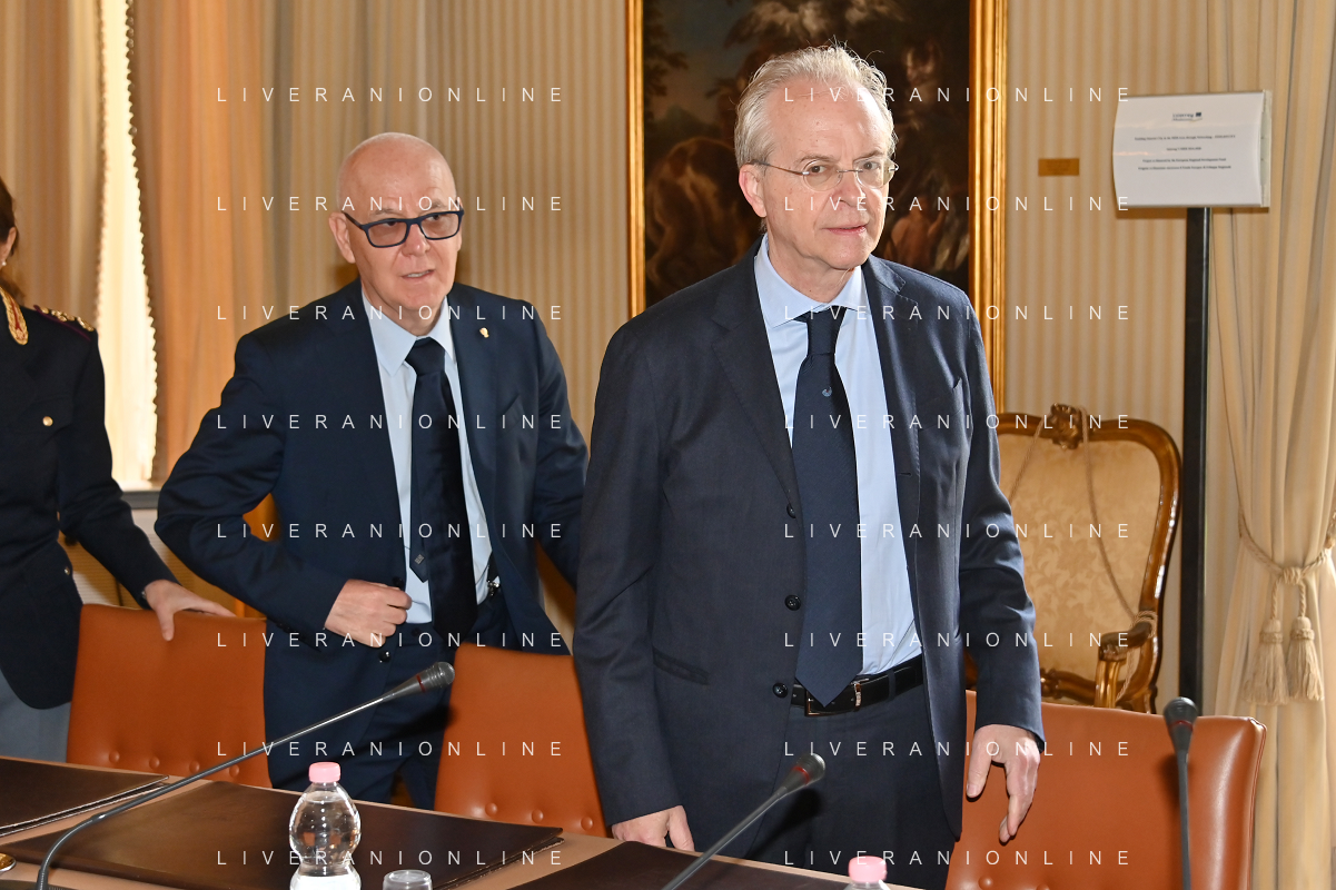 TVRG Firma protocollo sicurezza informatica nella foto Antonio Sebastiano Purcaro segretario generale della Città Metropolitana di Milano Milano 27-04-2023 Firma del protocollo di collaborazione tra Citta' Metropolitana e Polizia di Stato per la prevenzione e il contrasto dei crimini informatici sui sistemi informativi critici dipendenti da Citta' Metropolitana di Milano foto Roberto Garavaglia/ag. Aldo Liverani sas/ AGENZIA ALDO LIVERANI SAS