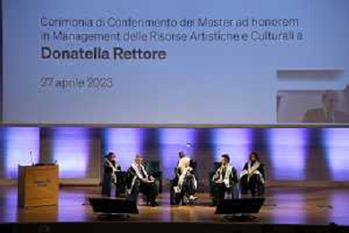 -TVRG Universita' IULM cerimonia di conferimento del Master ad honorem a Donatella Rettore Milano 27-04-2023