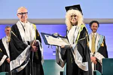 TVRG Master Donatella Rettore nella foto Gianni Canova rettore della IULM Milano 27-04-2023 Universita' IULM cerimonia di conferimento del Master ad honorem in Management delle Risorse Artistiche e Culturali a Donatella Rettore foto Roberto Garavaglia/ag. Aldo Liverani sas/ AGENZIA ALDO LIVERANI SAS