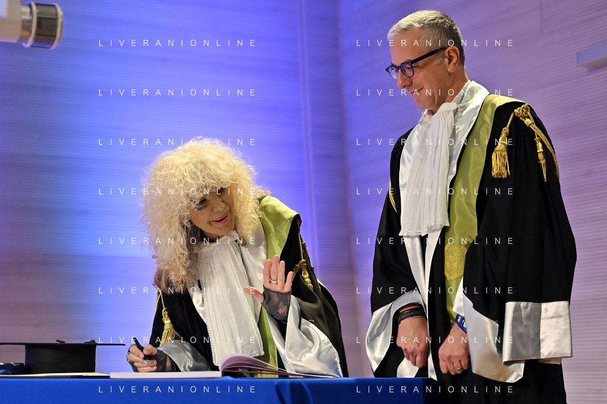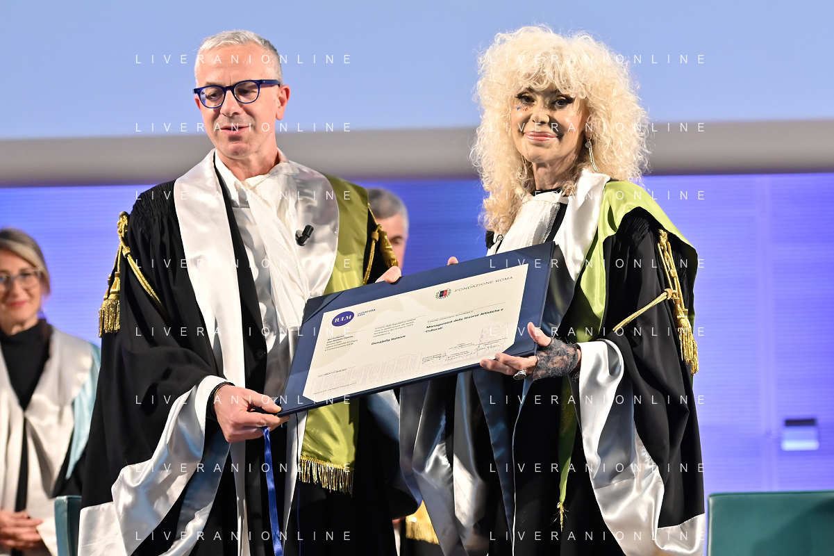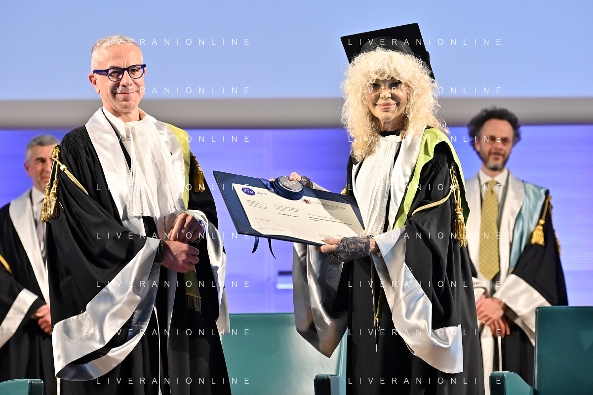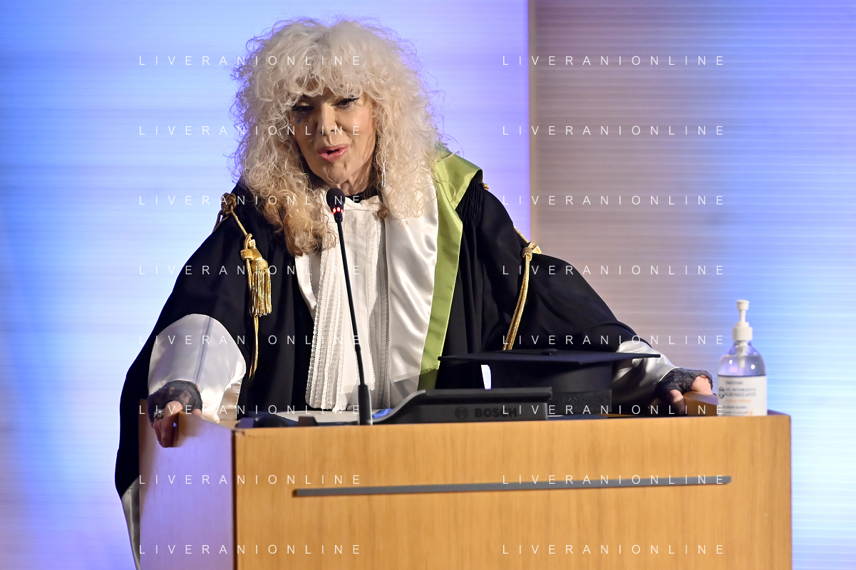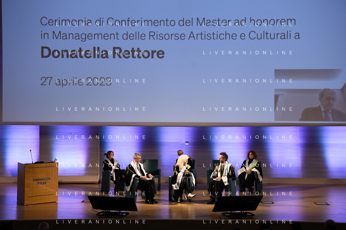 TVRG Master Donatella Rettore nella foto un momento della cerimonia Milano 27-04-2023 Universita' IULM cerimonia di conferimento del Master ad honorem in Management delle Risorse Artistiche e Culturali a Donatella Rettore foto Roberto Garavaglia/ag. Aldo Liverani sas/ AGENZIA ALDO LIVERANI SAS