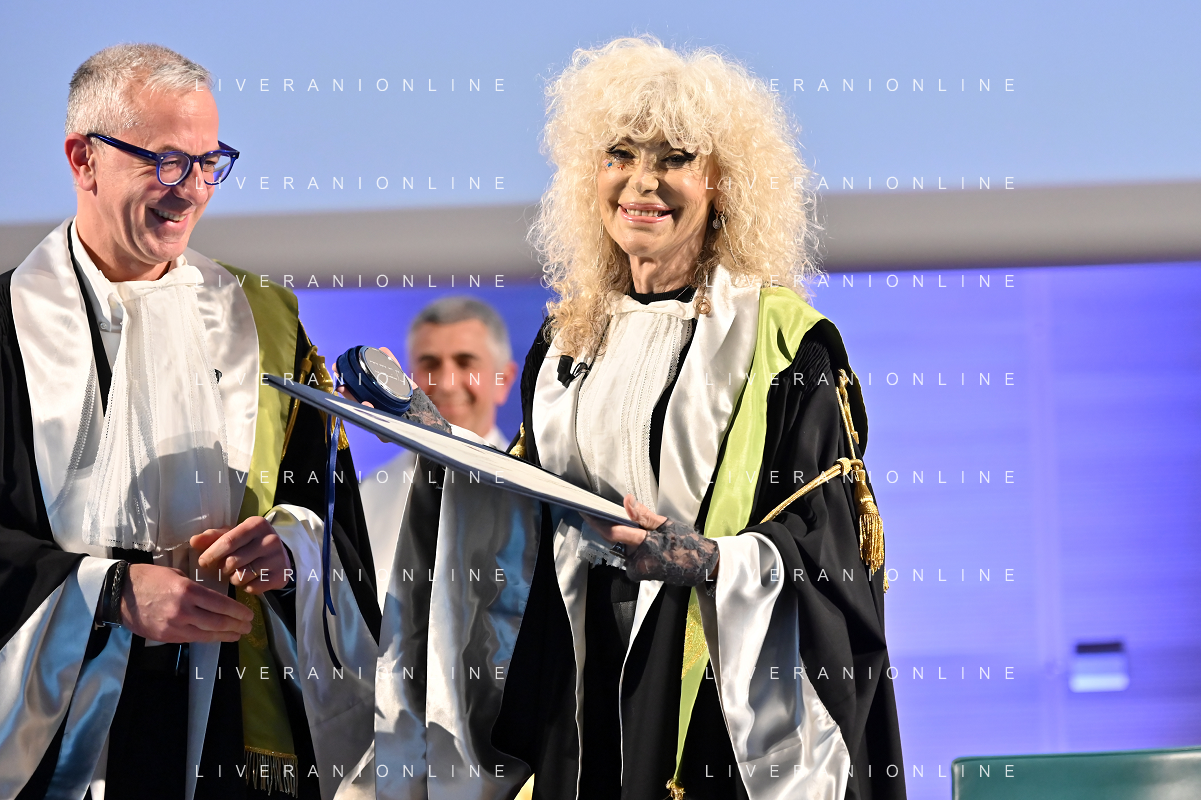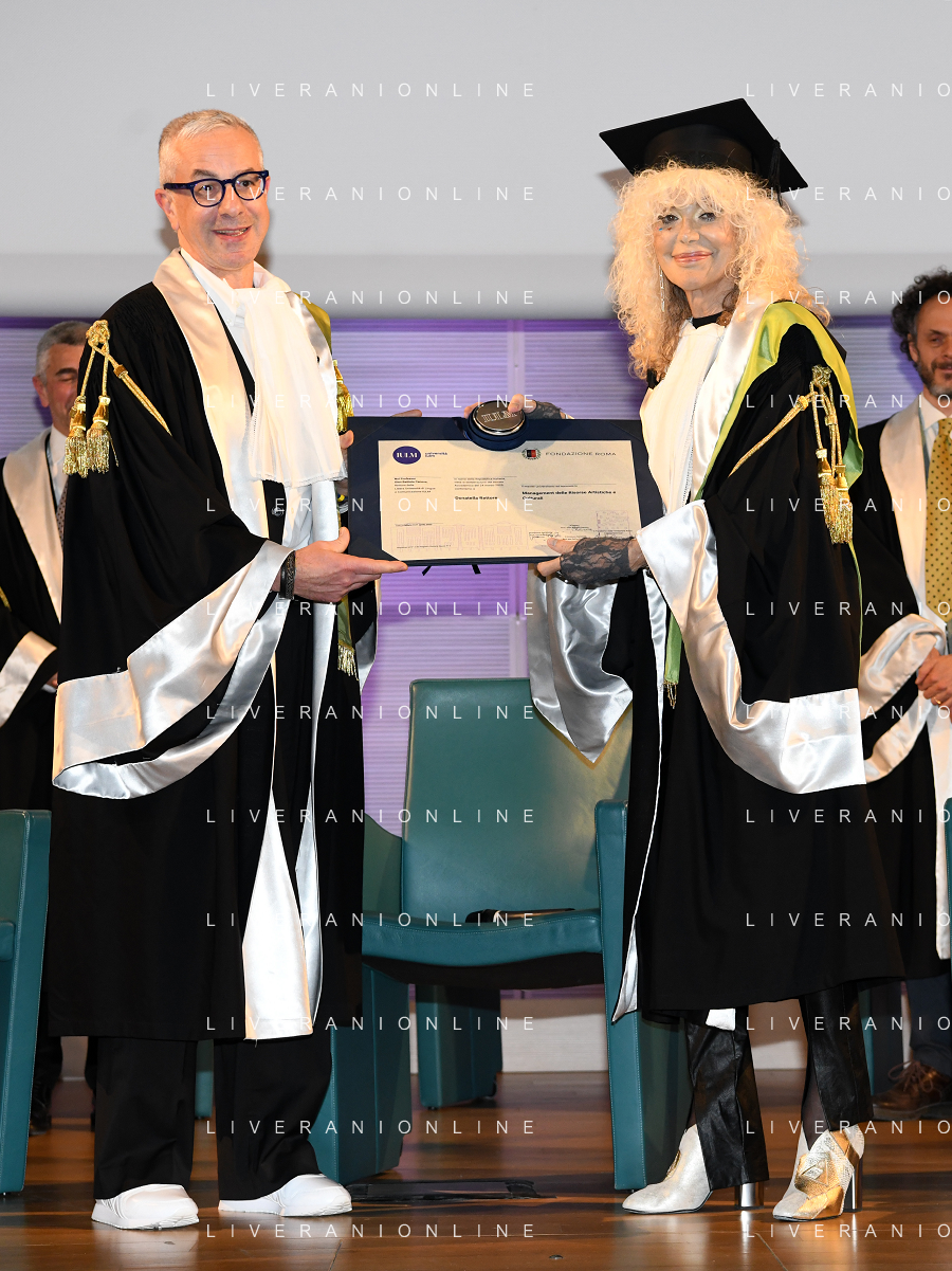 TVRG Master Donatella Rettore nella foto Donatella Rettore e sulla DX Gianni Canova rettore della IULM Milano 27-04-2023 Universita' IULM cerimonia di conferimento del Master ad honorem in Management delle Risorse Artistiche e Culturali a Donatella Rettore foto Roberto Garavaglia/ag. Aldo Liverani sas/ AGENZIA ALDO LIVERANI SAS