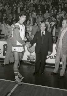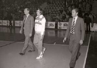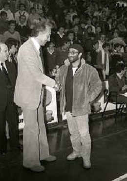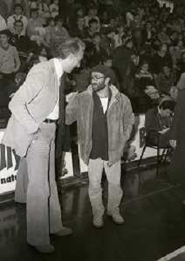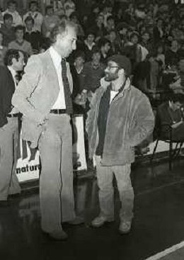 05-11-1978 MILANO CAMPIONATO DI BASKET SERIE A1 BILLY MILANO-EMERSON VARESE 77-68 NELLA FOTO ALESSANDRO GAMBA CON LUCIO DALLA AG ALDO LIVERANI SAS