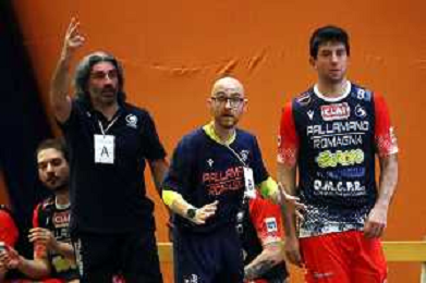 IMOLA 06 05 2023 PLAY OUT SERIE A1 PALLAMANO ROMAGNA-FONDI NELLA FOTO DA SINISTRA GFABRIZIO FOLLI MATTIA MELIS E RINALDO CERONI IMOLA FOTO GIANNI SANNA-AG ALDO LIVERANI SAS