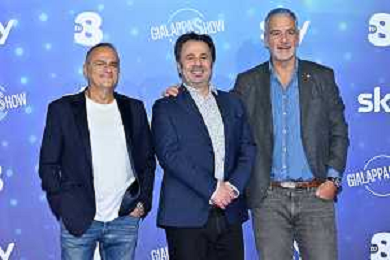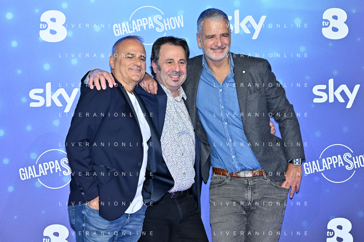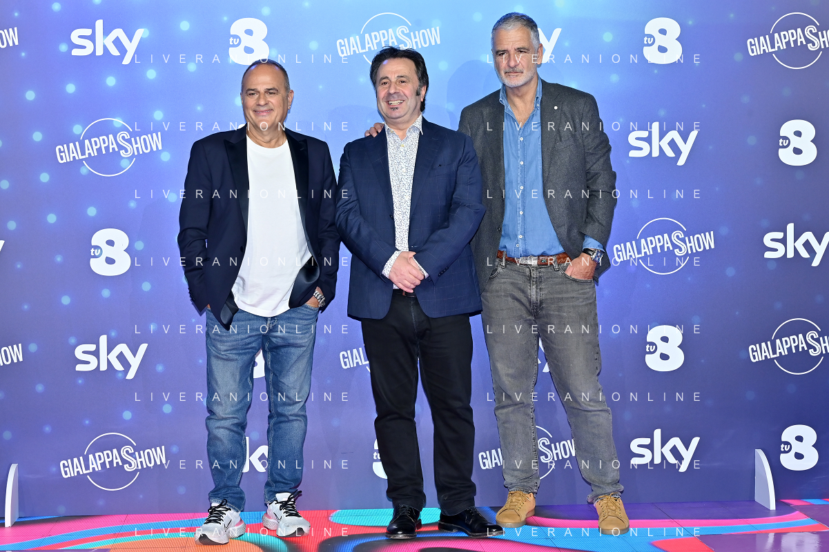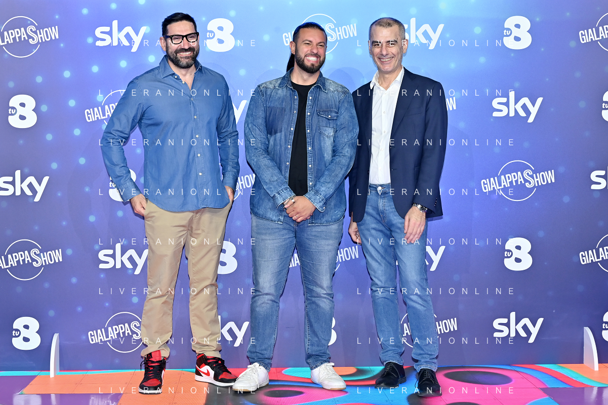 TVRG Photocall GialappaShow nella foto da SX Marco Santin, Mago Forest e Giorgio Gherarducci Milano 09-05-2023 Photocall in occasione della conferenza stampa di presentazione di GialappaShow foto Roberto Garavaglia/ag. Aldo Liverani sas