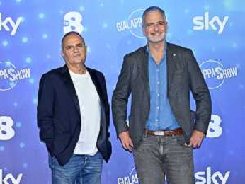 TVRG Photocall GialappaShow nella foto Gianluca Beretta SX e Alfredo Colina DX Milano 09-05-2023 Photocall in occasione della conferenza stampa di presentazione di GialappaShow foto Roberto Garavaglia/ag. Aldo Liverani sas