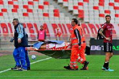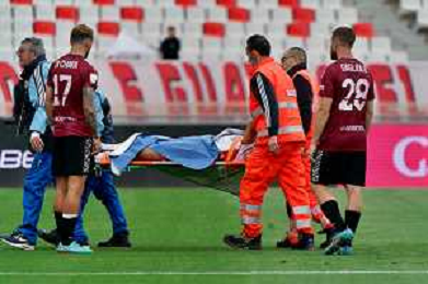Infortunio Raffaele Pucino (SSC Bari) during the Italian soccer Serie B match SSC Bari vs Reggina 1914 on May 13, 2023 at the San Nicola stadium in Bari, Italy. Photo by Emmanuele Mastrodonato/ag. Aldo Liverani sas / AGENZIA ALDO LIVERANI SAS