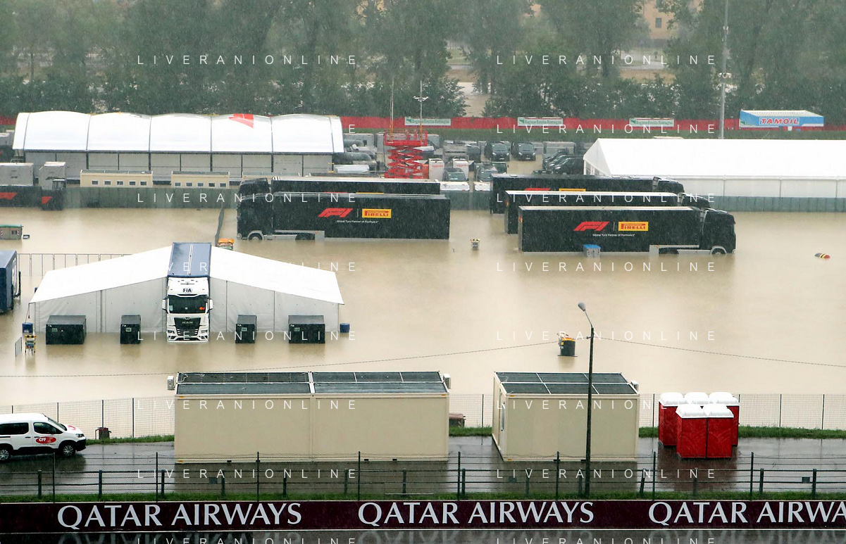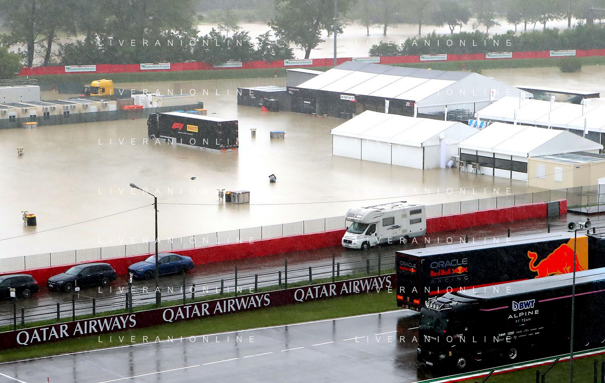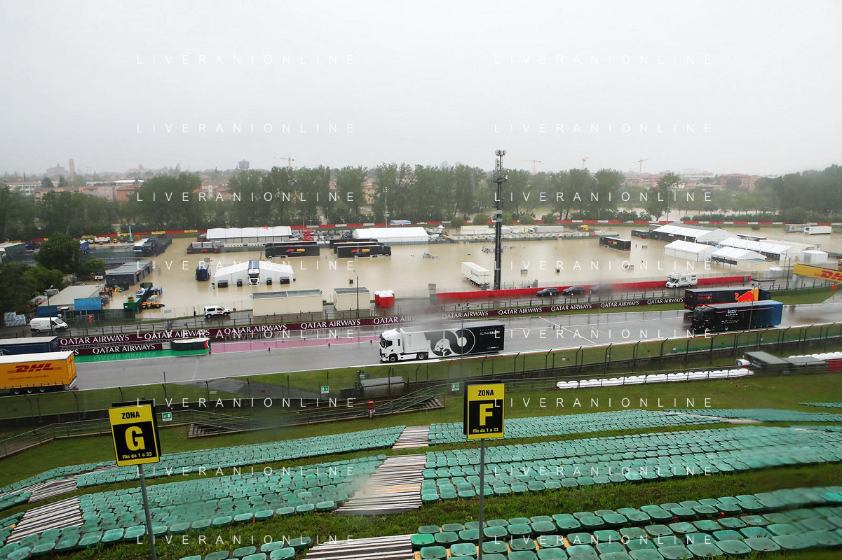 IMOLA 16 05 2023 AUTODROMO ENZO E DINO FERRARI EVACUATO PADDOCK TUTTI OPERATORI E LAVORATORI SOTTO L'ACQUA DEL FIUME SANTERNO IN PIENA - 15 file