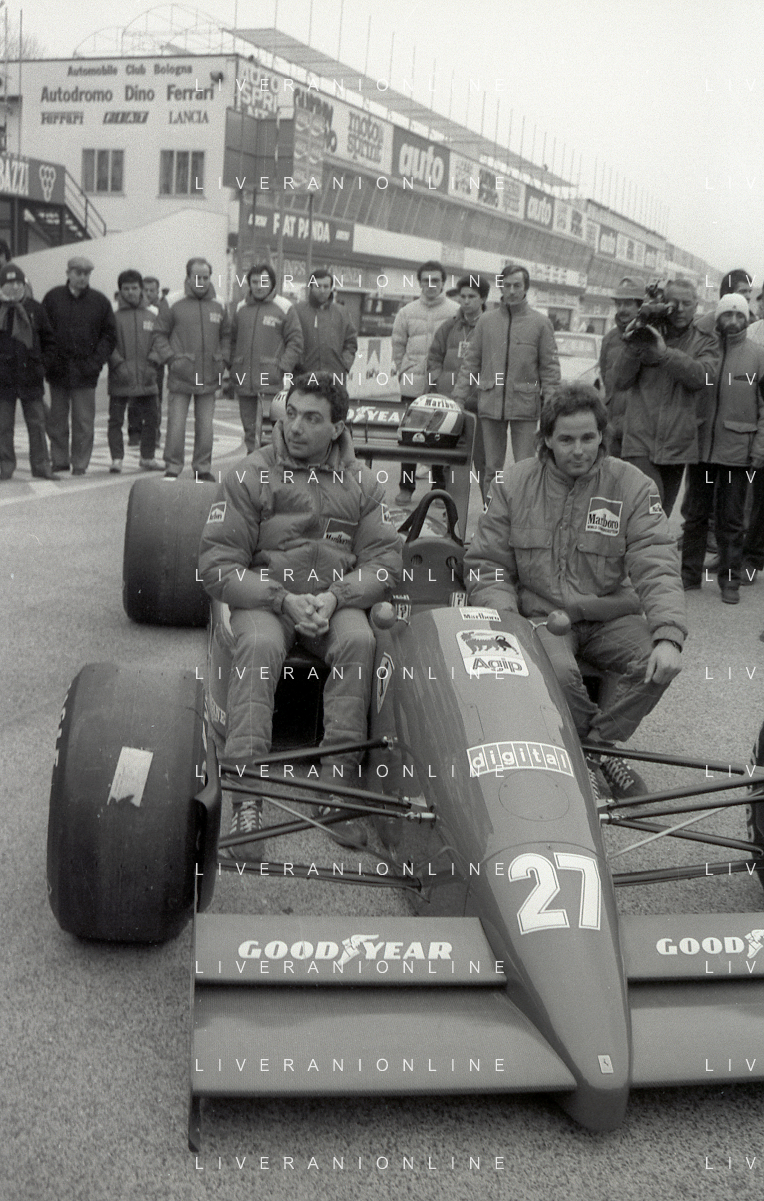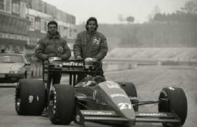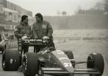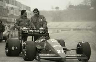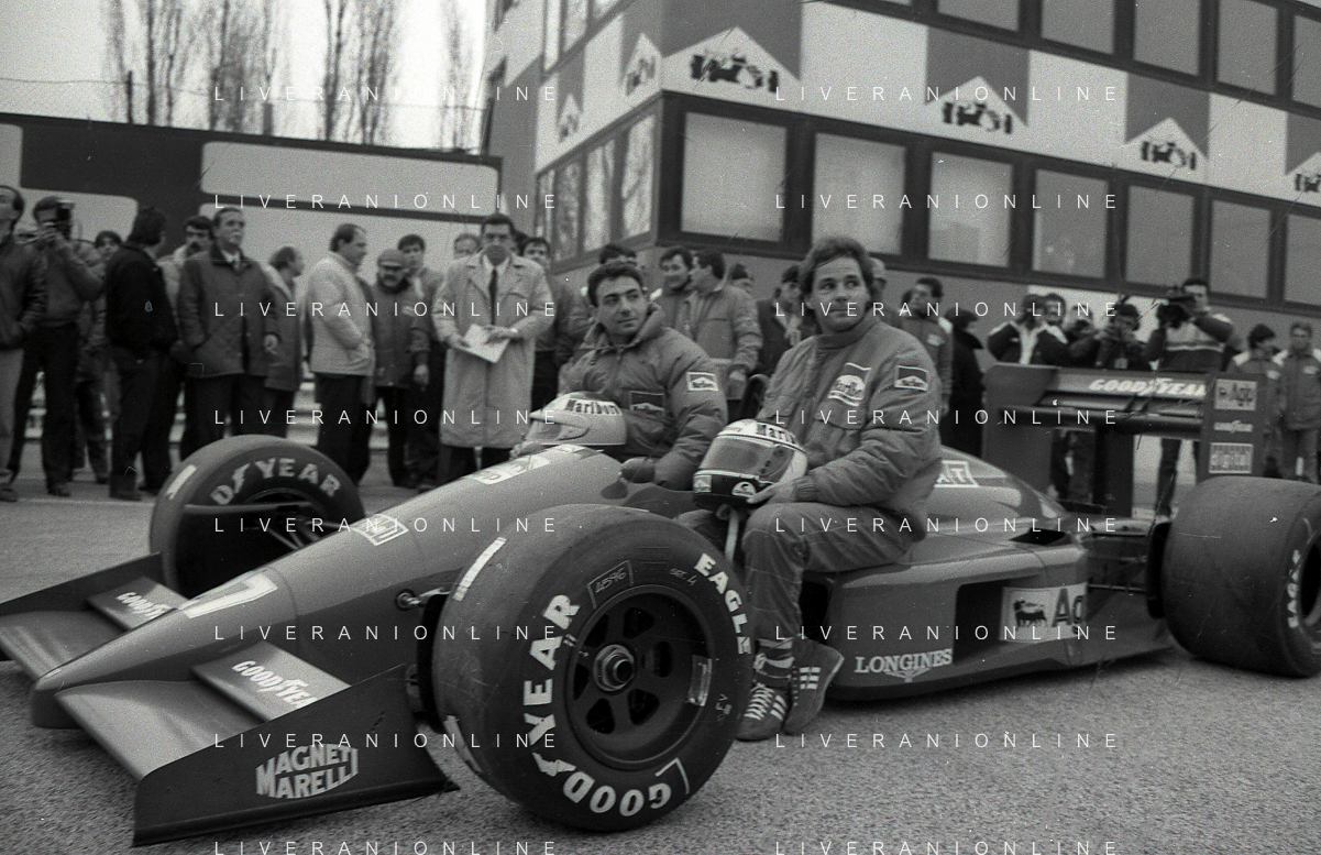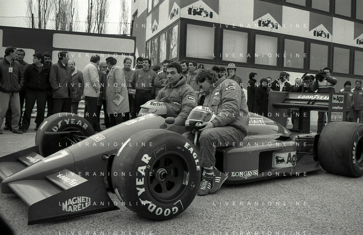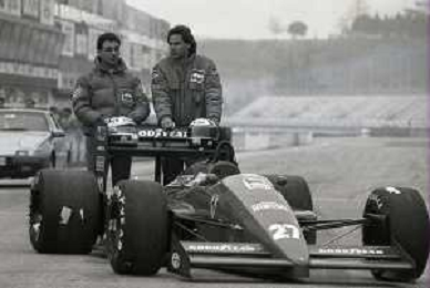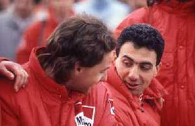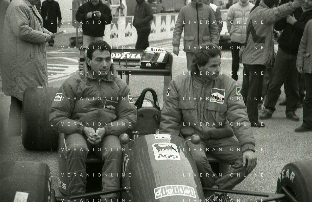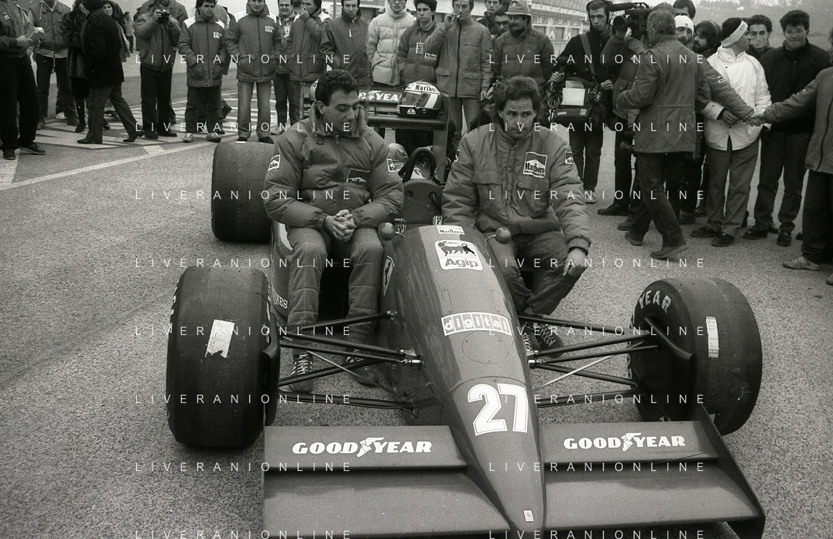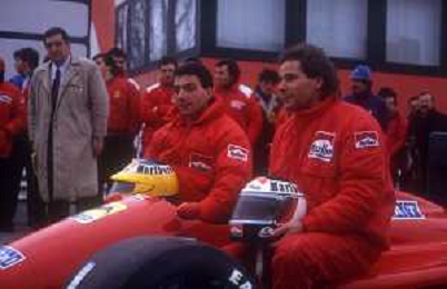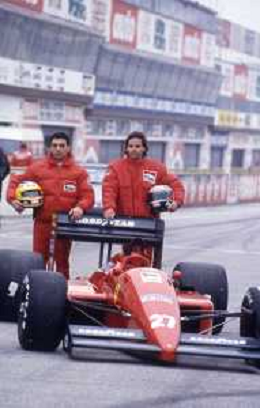 RETROSPETTIVA MICHELE ALBORETO PILOTA F1 NELLA FOTO MICHELE ALBORETO NELL'ANNO 1987 CON GERHARD BERGER AG ALDO LIVERANI SAS