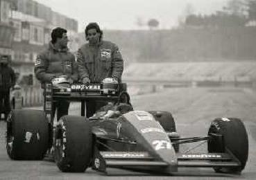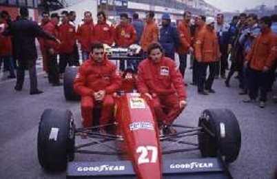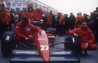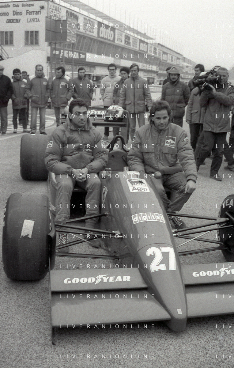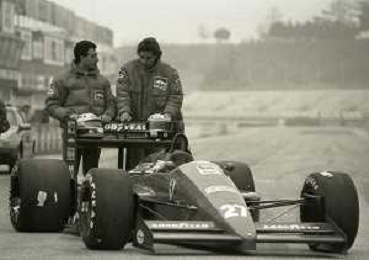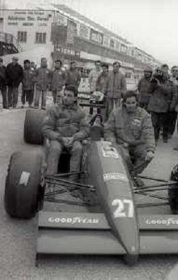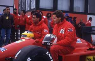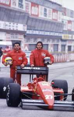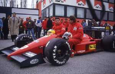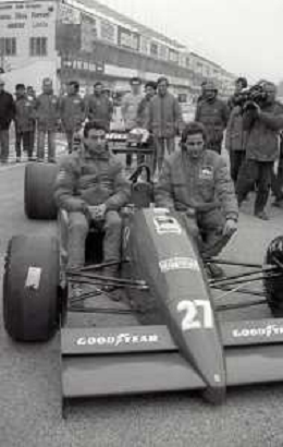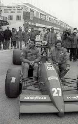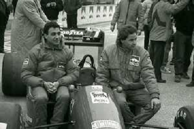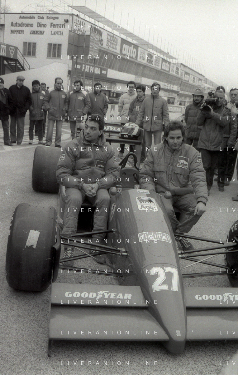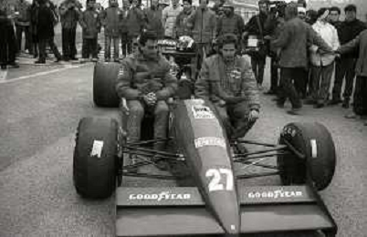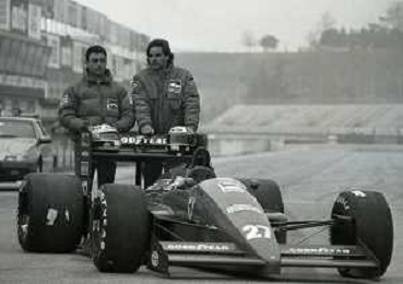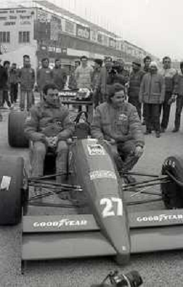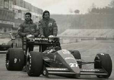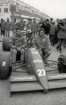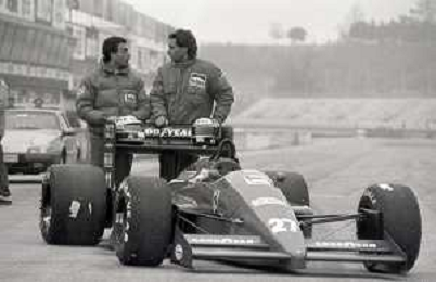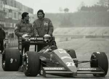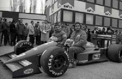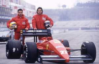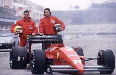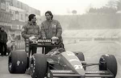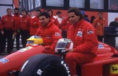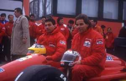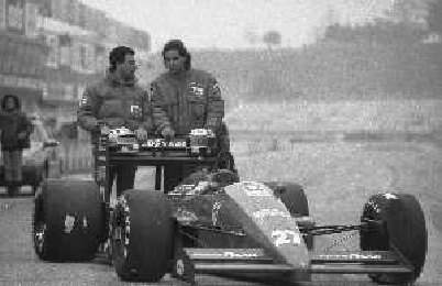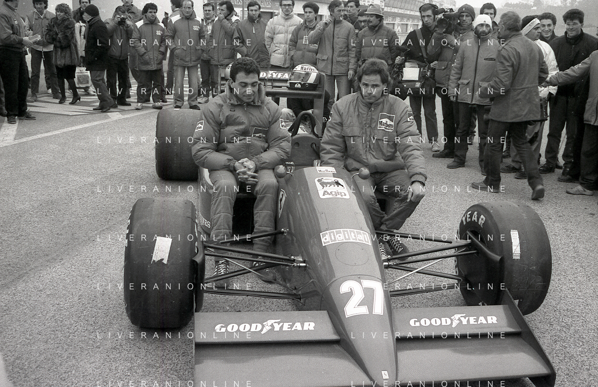 RETROSPETTIVA MICHELE ALBORETO PILOTA F1 NELLA FOTO MICHELE ALBORETO NELL'ANNO 1987 CON GERHARD BERGER AG ALDO LIVERANI SAS