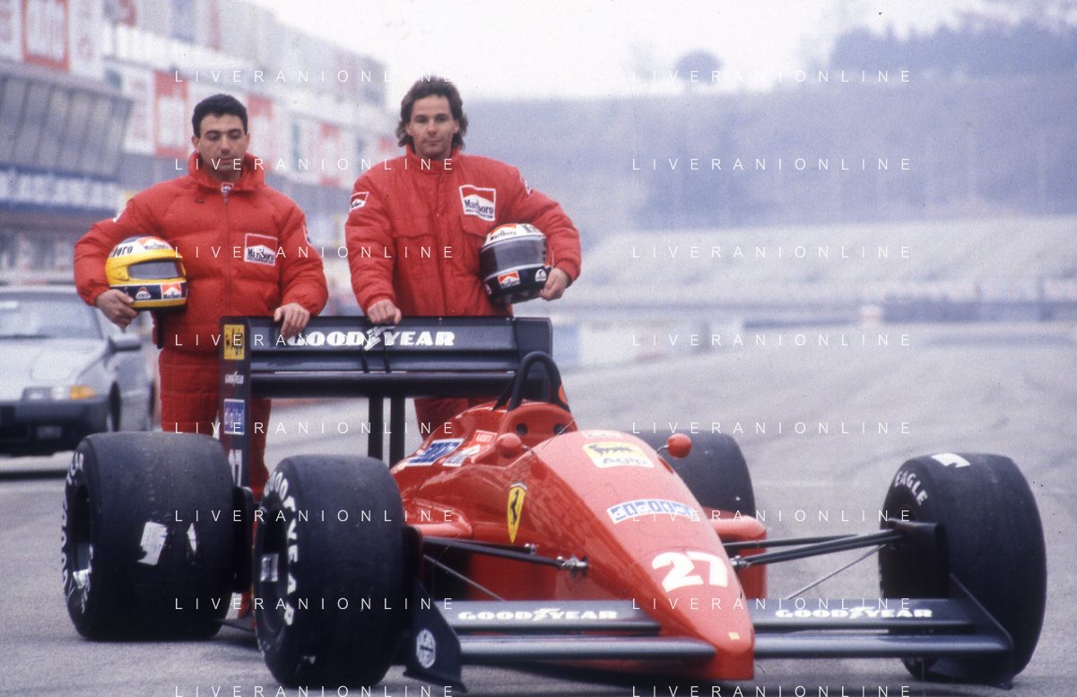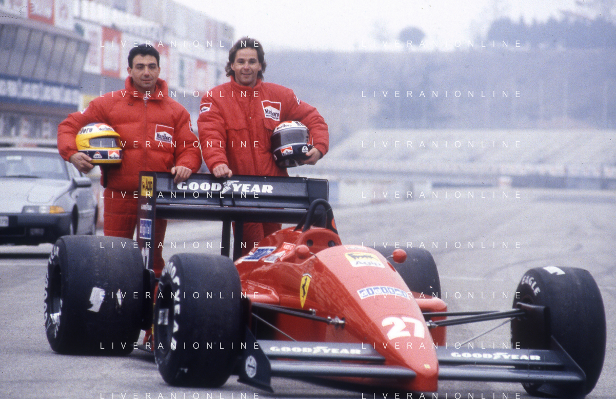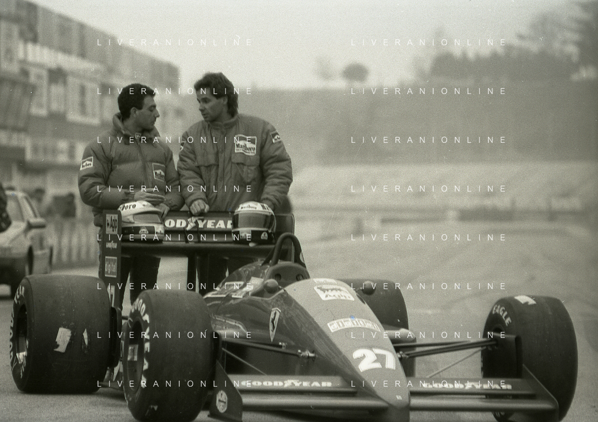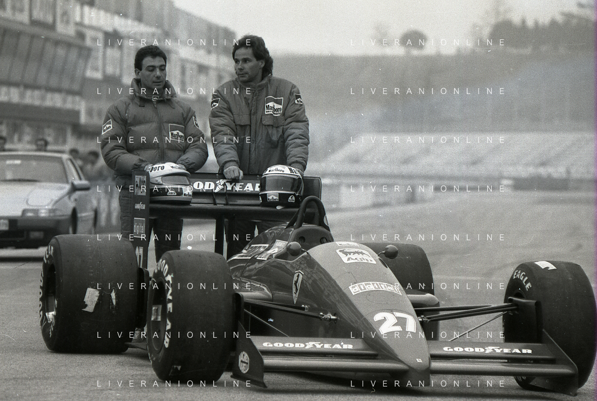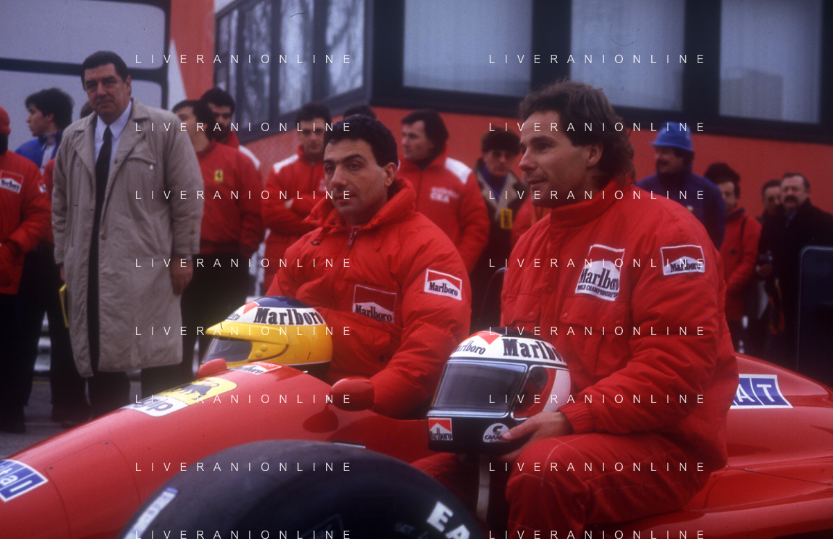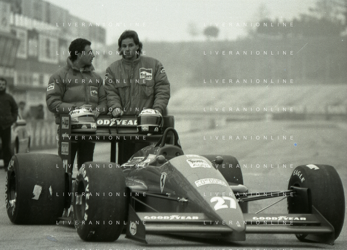 NEG-RETROSPETTIVA MICHELE ALBORETO PILOTA NELLA FOTO MICHELE ALBORETO CON GERHARD BERGER PRESENTAZIONE FERRARI ANNO 1986 AG ALDO LIVERANI SAS