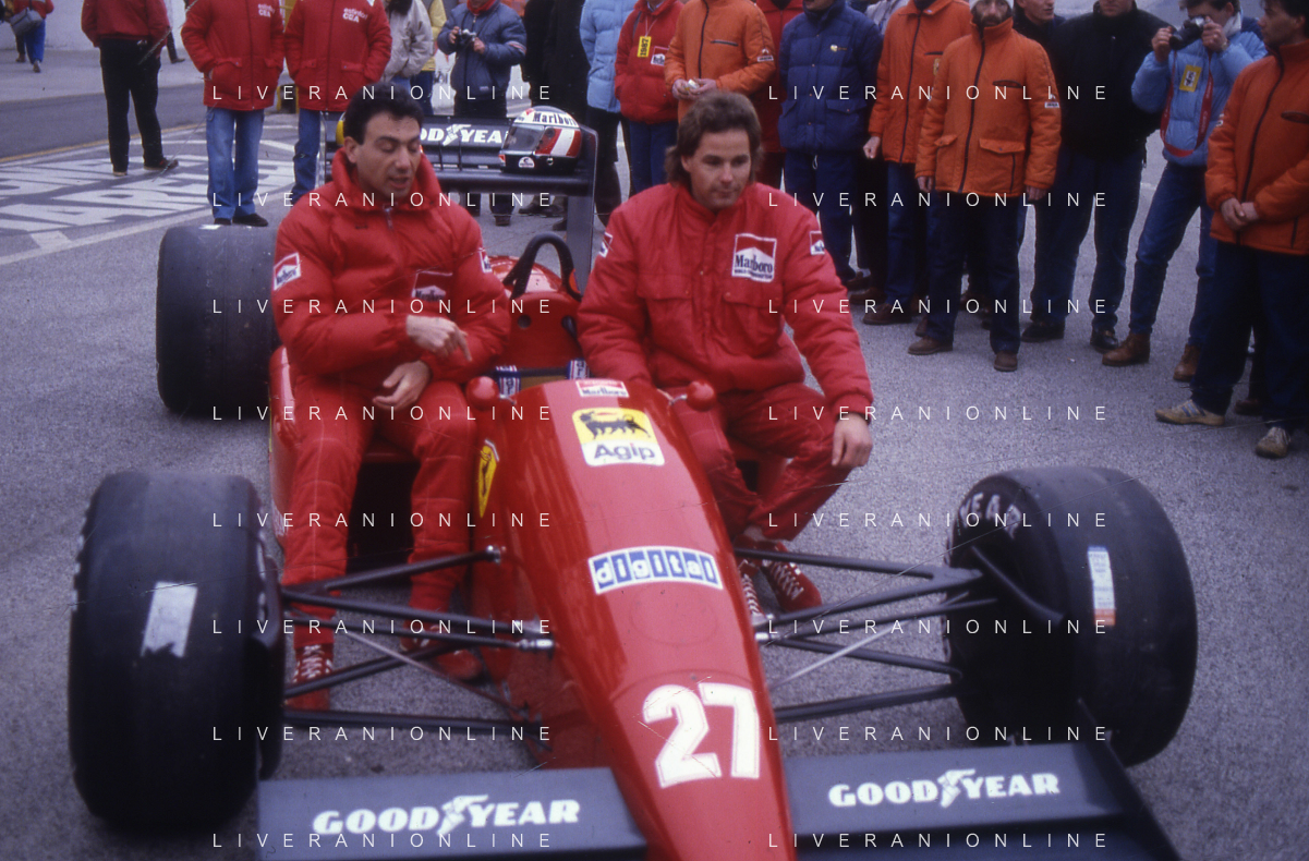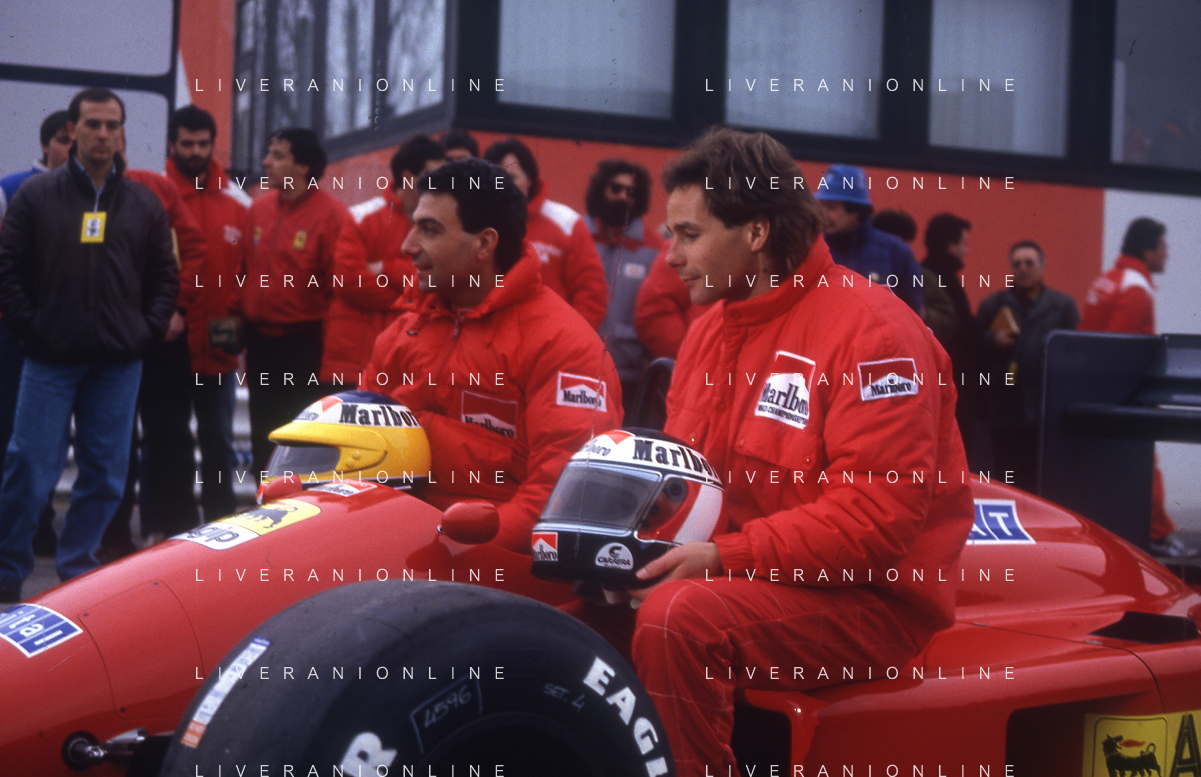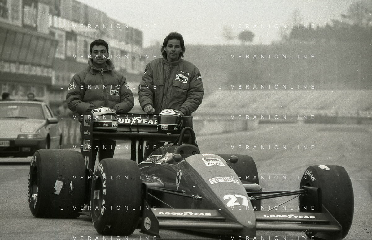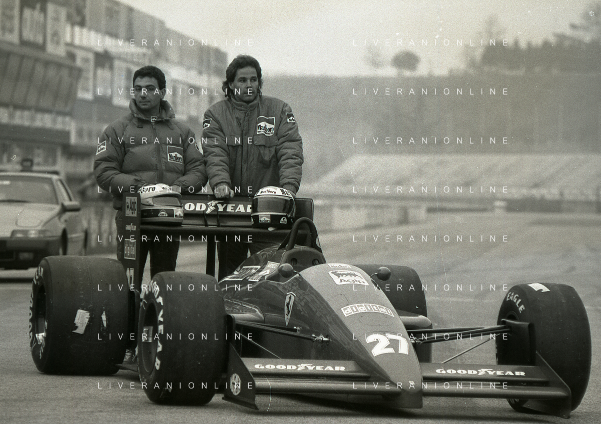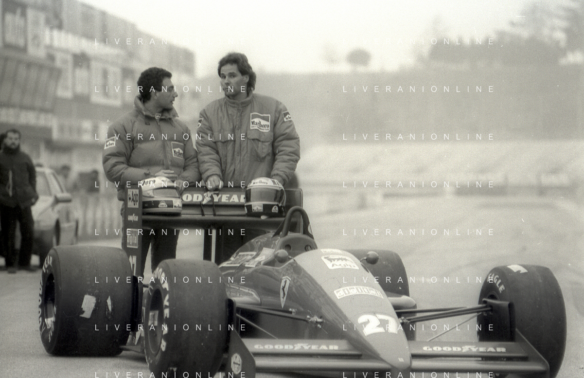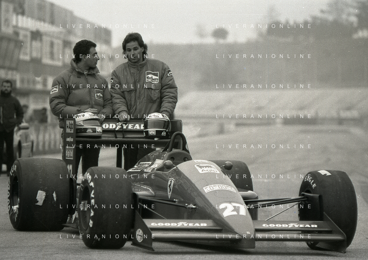 NEG-RETROSPETTIVA MICHELE ALBORETO PILOTA NELLA FOTO MICHELE ALBORETO CON GERHARD BERGER PRESENTAZIONE FERRARI ANNO 1986 AG ALDO LIVERANI SAS