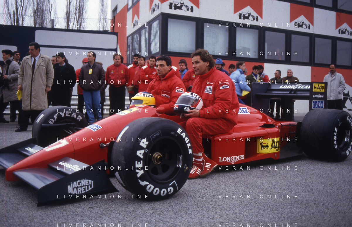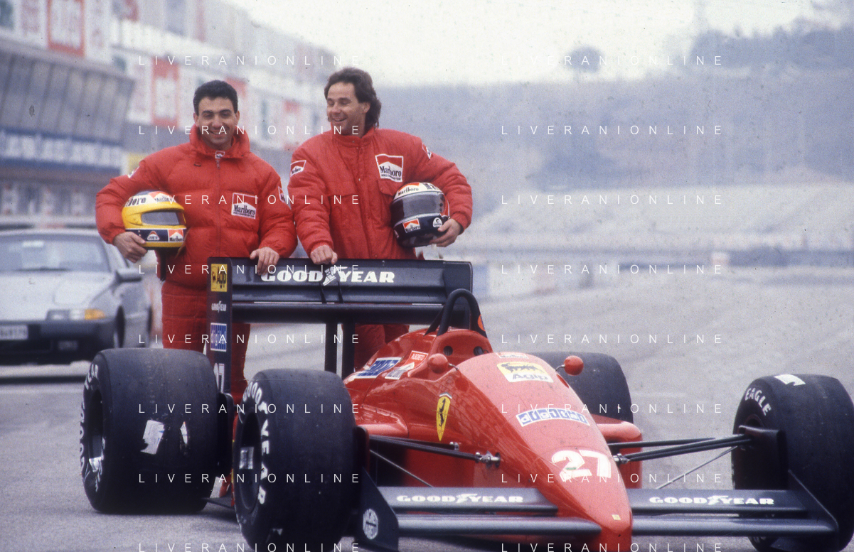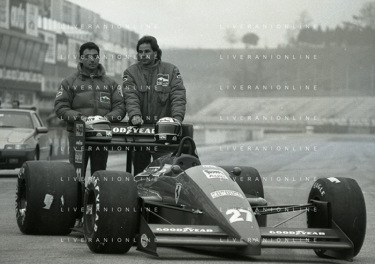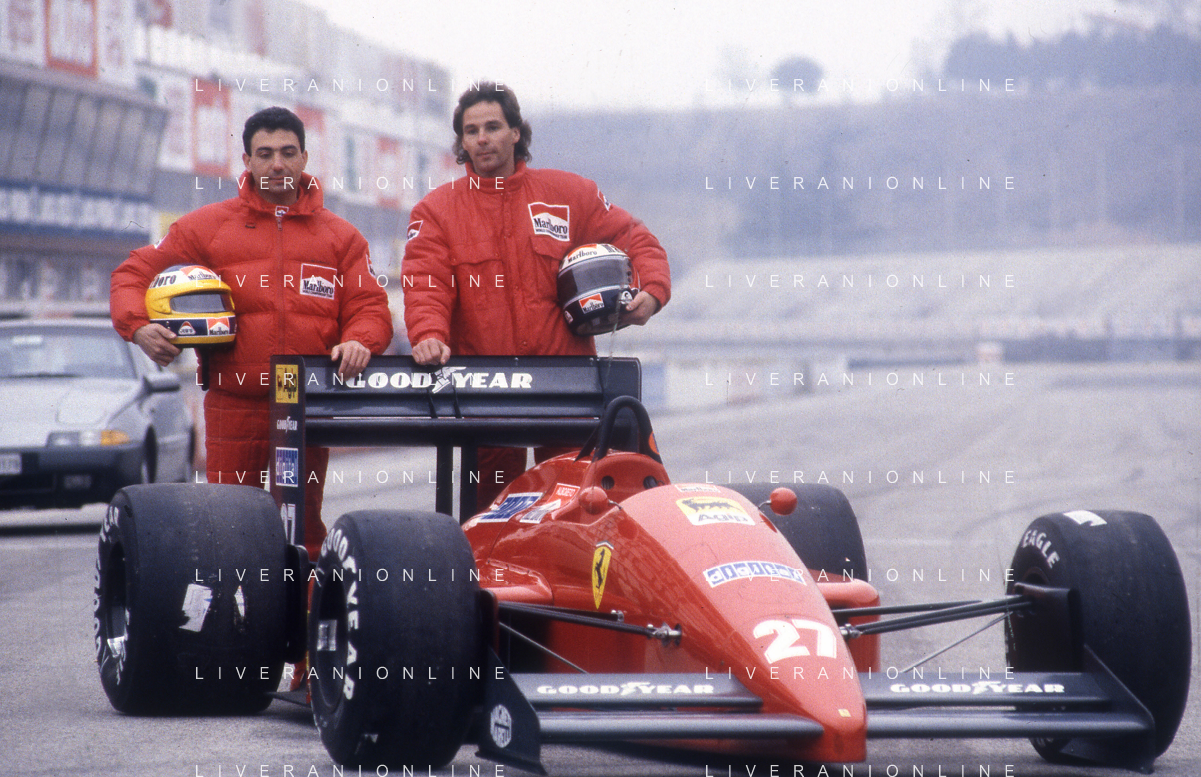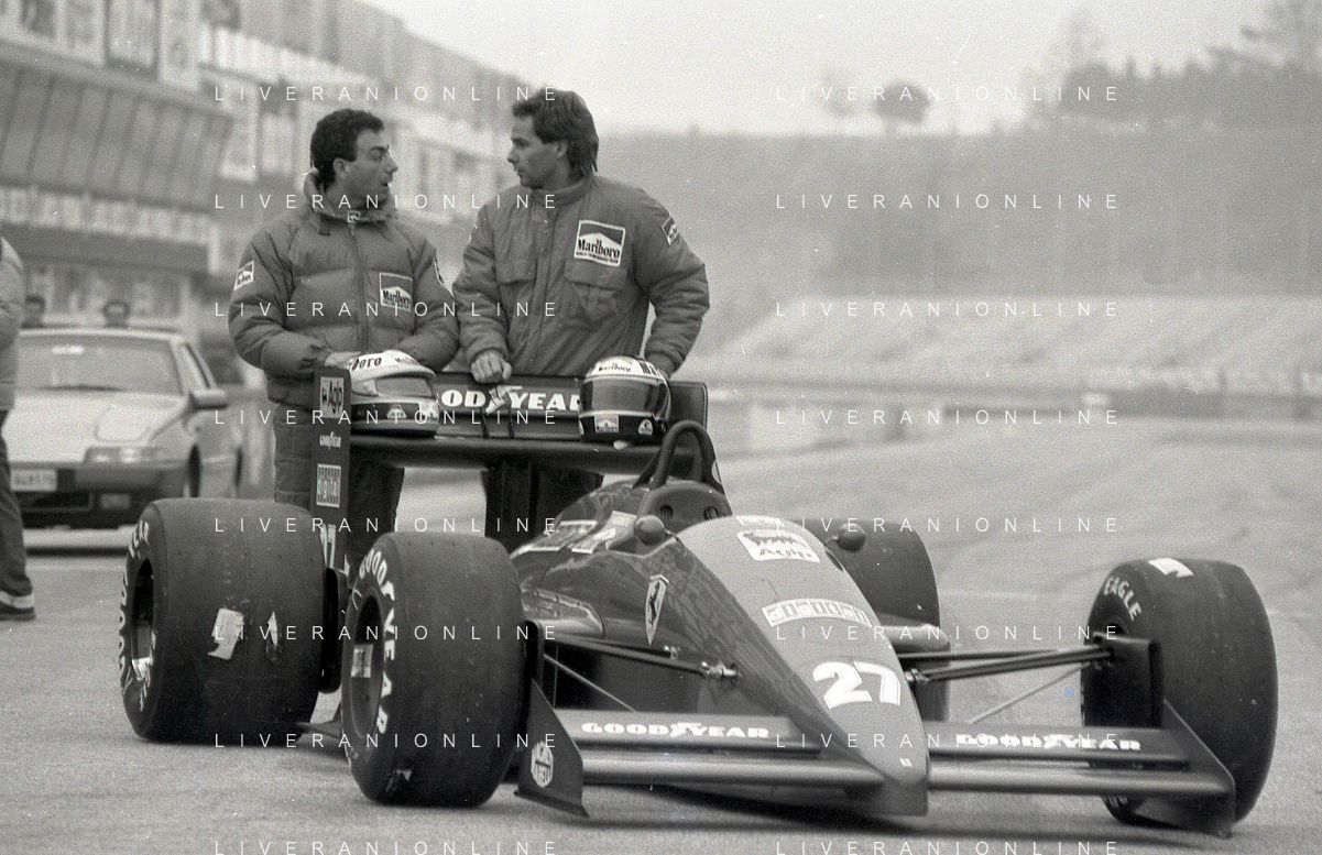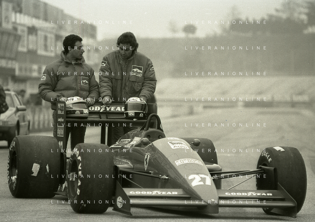 NEG-RETROSPETTIVA MICHELE ALBORETO PILOTA NELLA FOTO MICHELE ALBORETO CON GERHARD BERGER PRESENTAZIONE FERRARI ANNO 1986 AG ALDO LIVERANI SAS