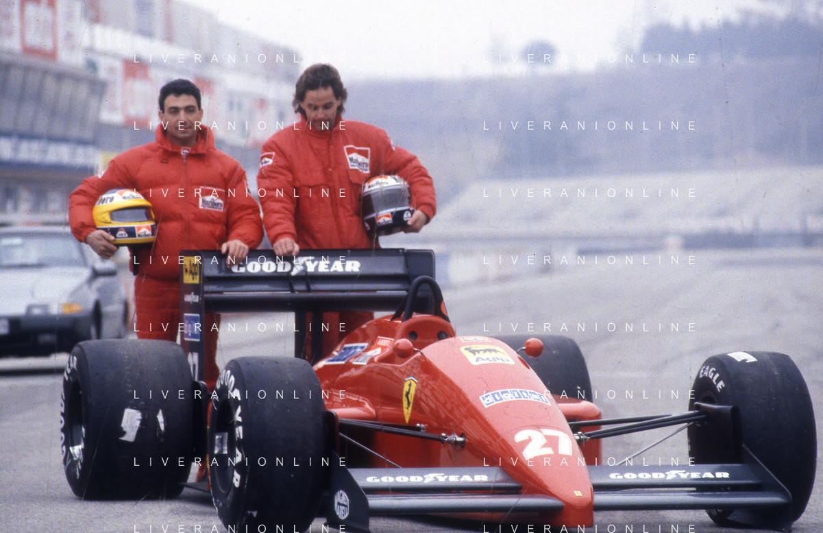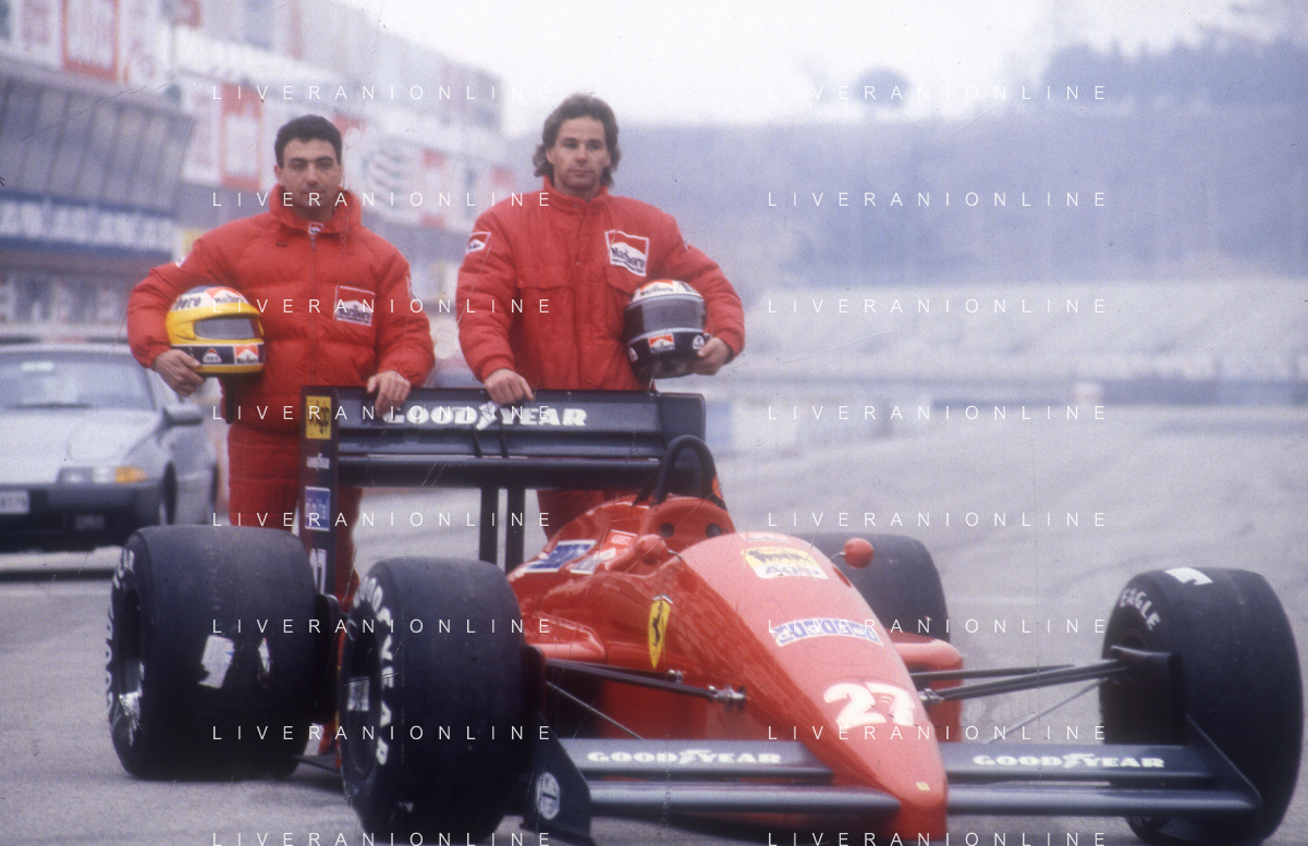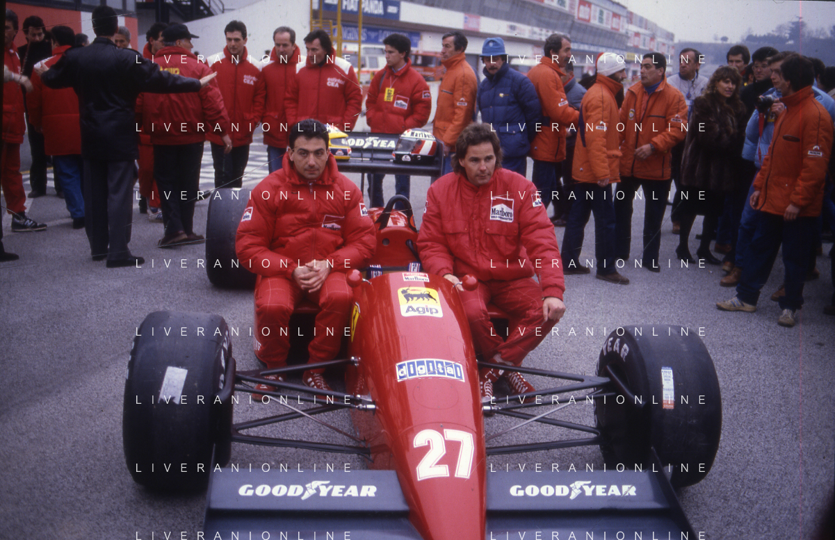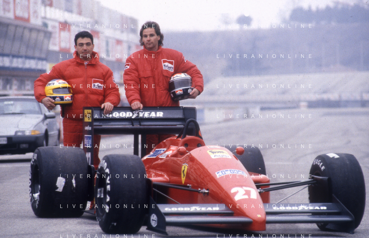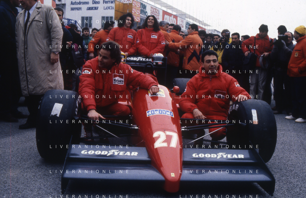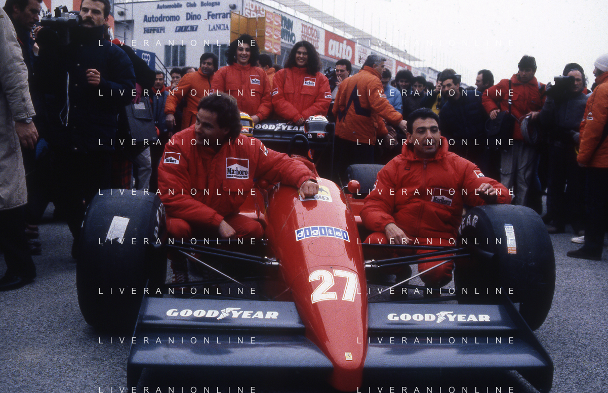 NEG-RETROSPETTIVA MICHELE ALBORETO PILOTA NELLA FOTO MICHELE ALBORETO CON GERHARD BERGER PRESENTAZIONE FERRARI ANNO 1986 AG ALDO LIVERANI SAS