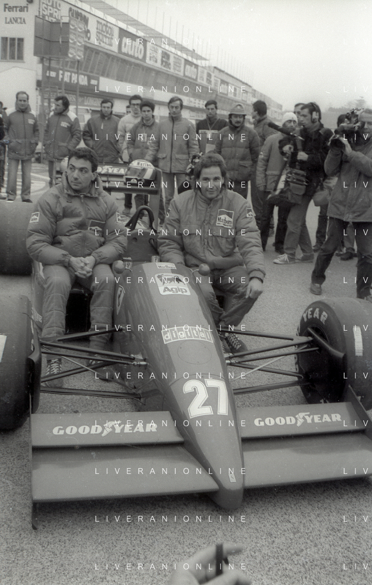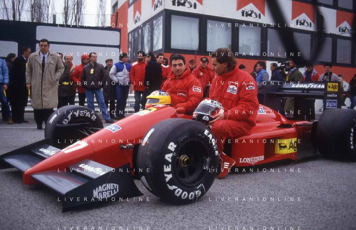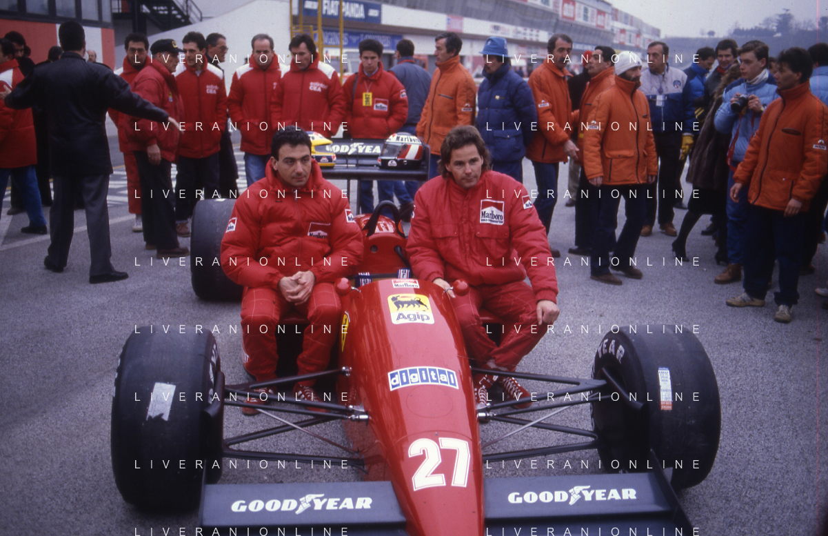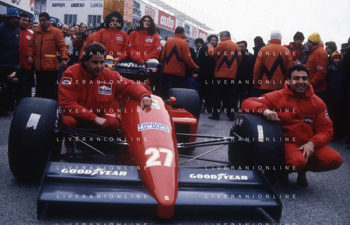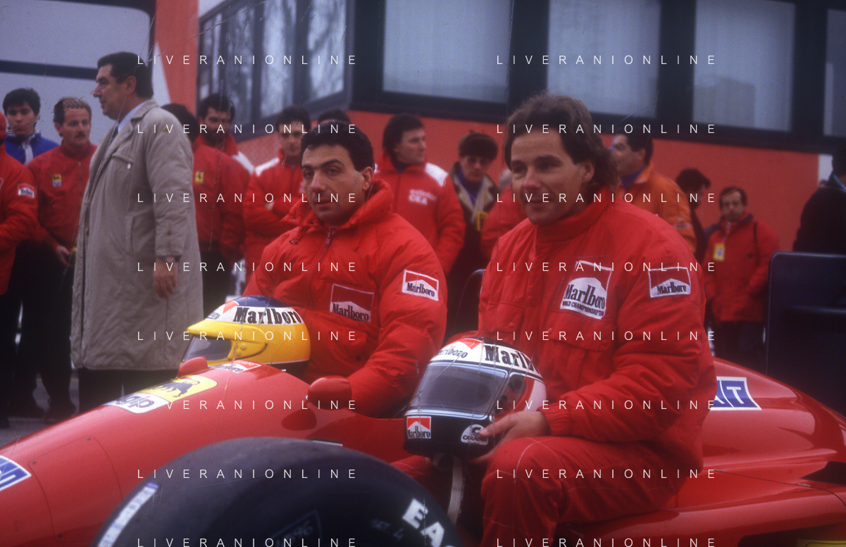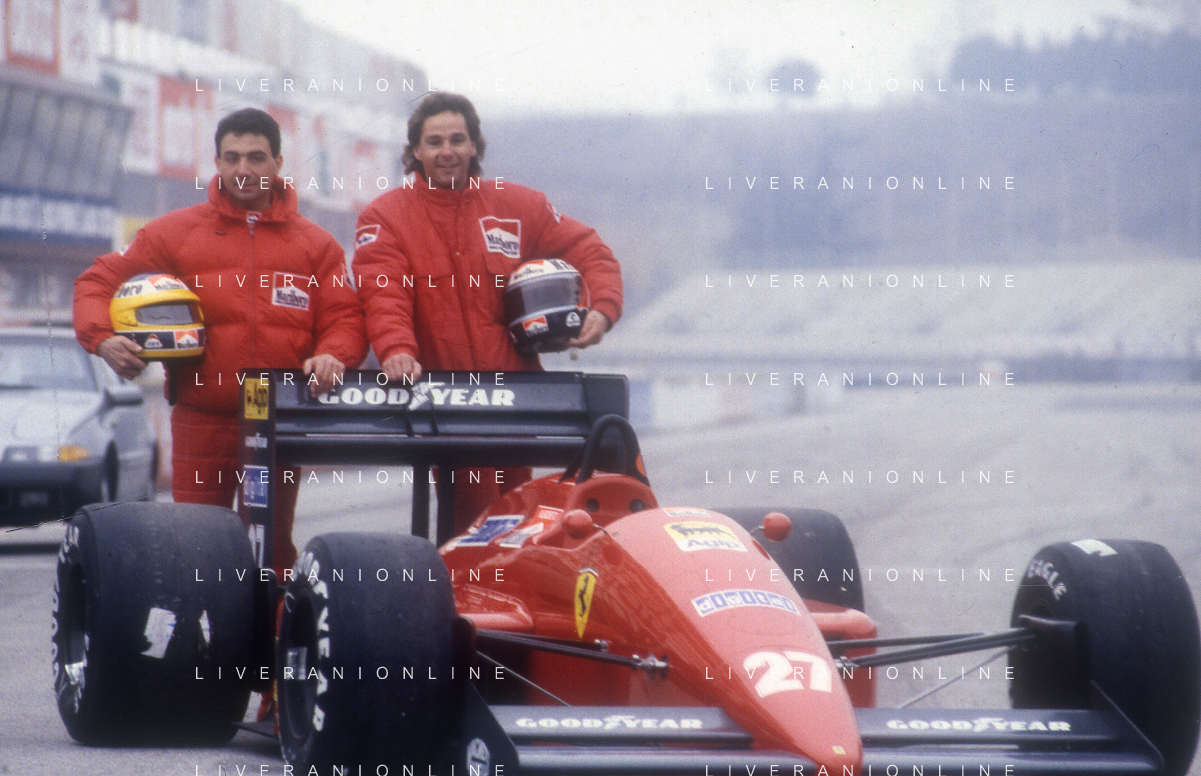 NEG-RETROSPETTIVA MICHELE ALBORETO PILOTA NELLA FOTO MICHELE ALBORETO CON GERHARD BERGER PRESENTAZIONE FERRARI ANNO 1986 AG ALDO LIVERANI SAS
