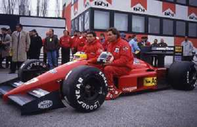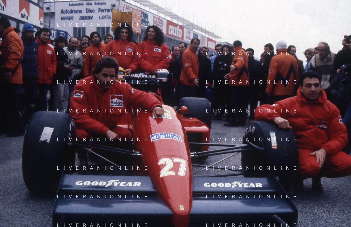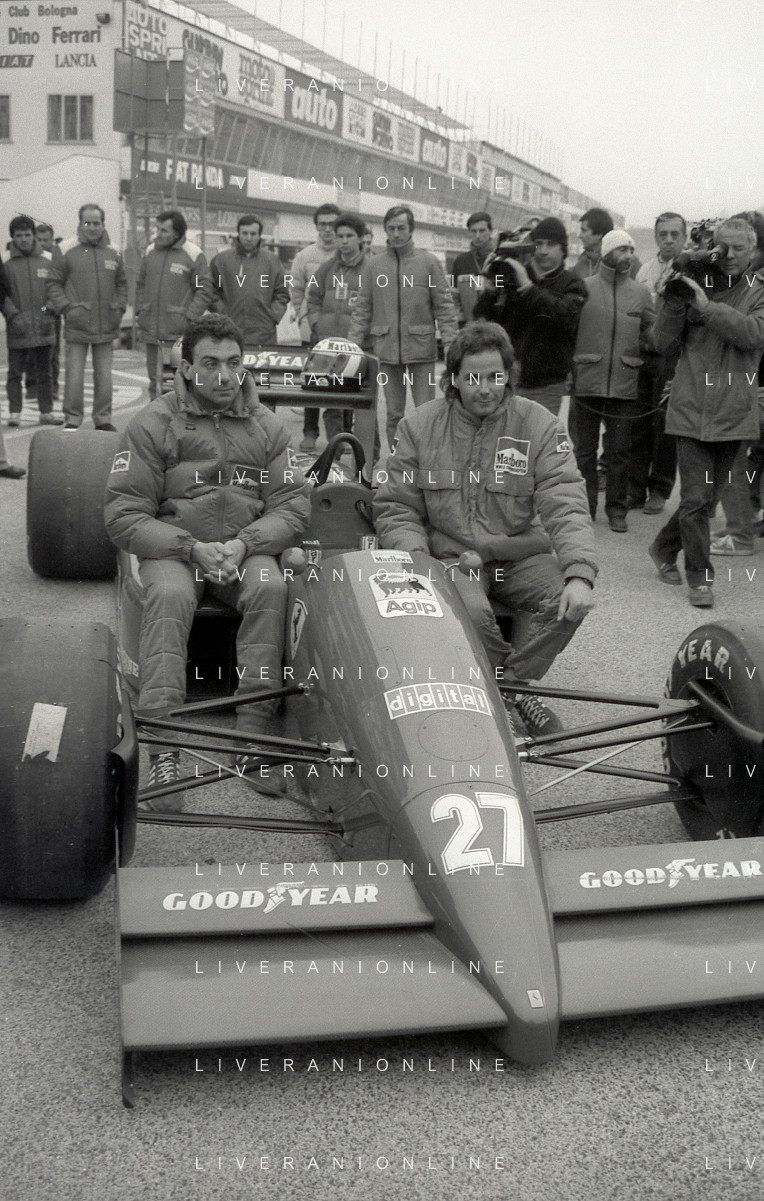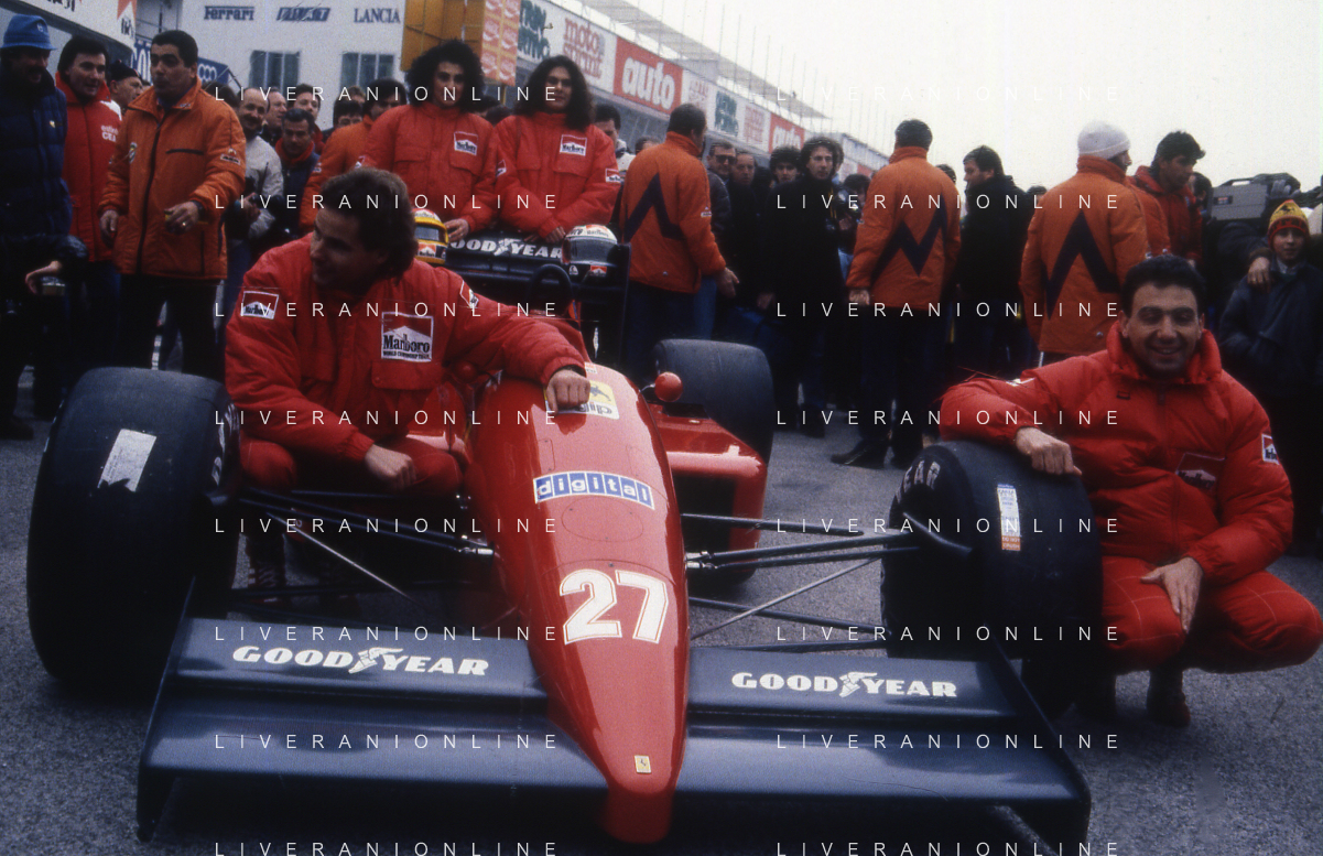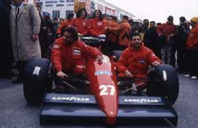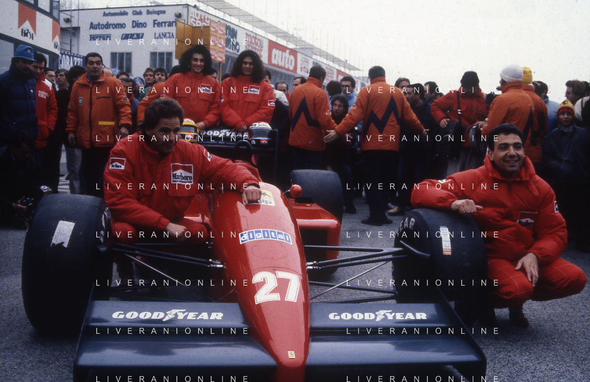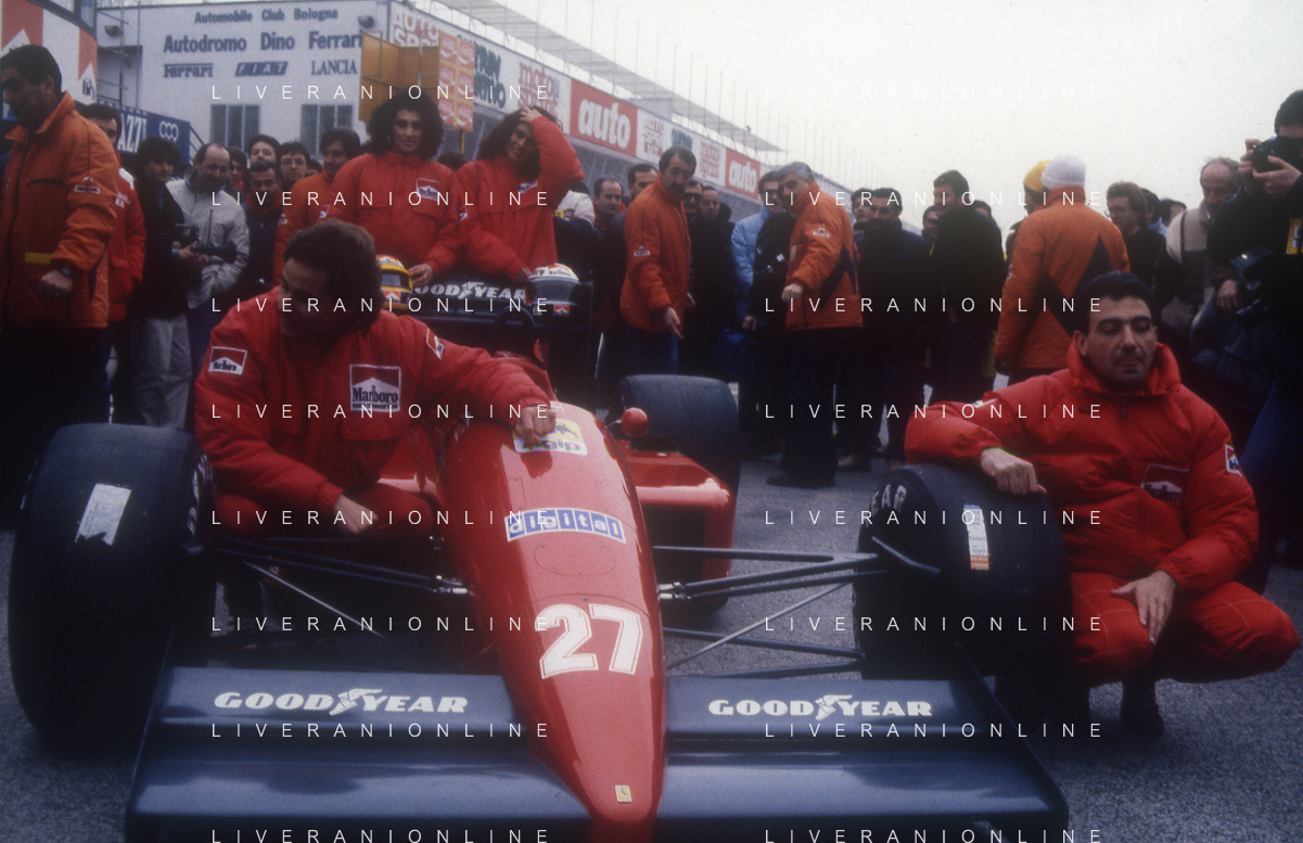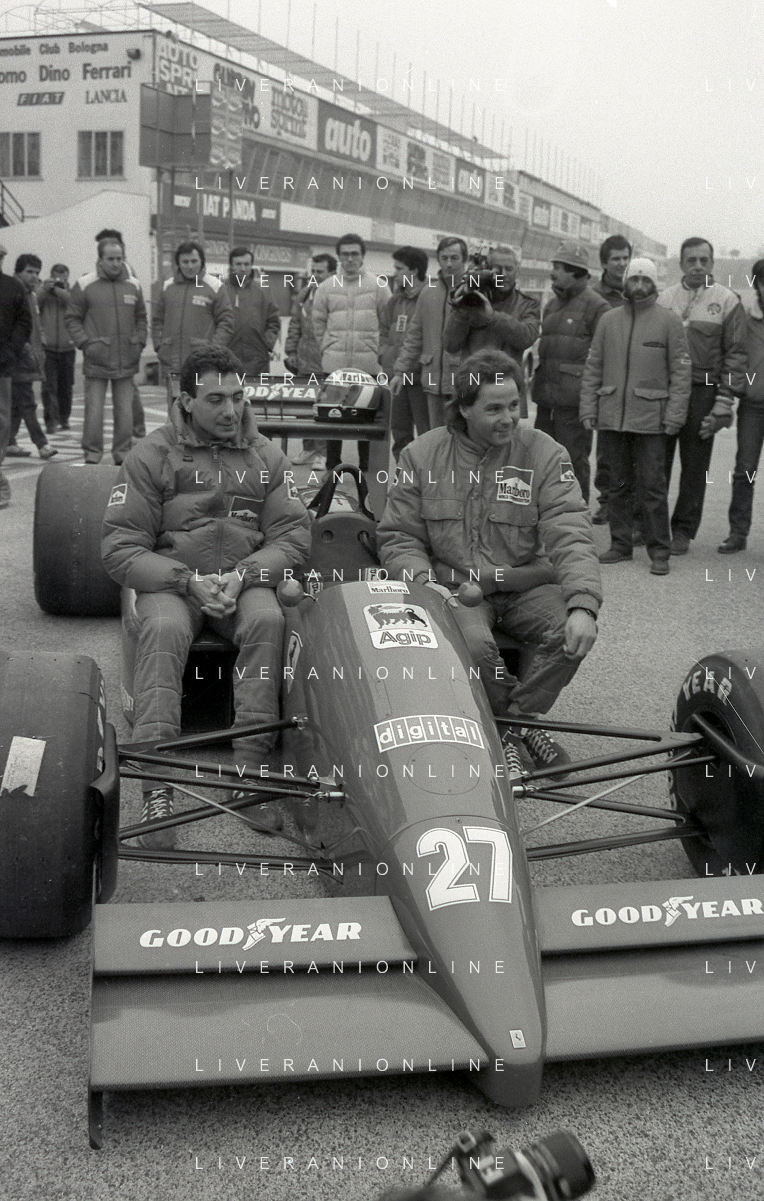 NEG-RETROSPETTIVA MICHELE ALBORETO PILOTA NELLA FOTO MICHELE ALBORETO CON GERHARD BERGER PRESENTAZIONE FERRARI ANNO 1986 AG ALDO LIVERANI SAS