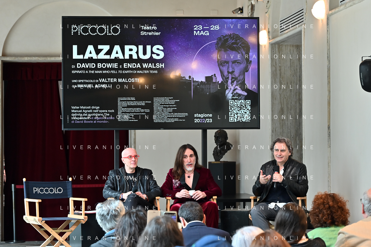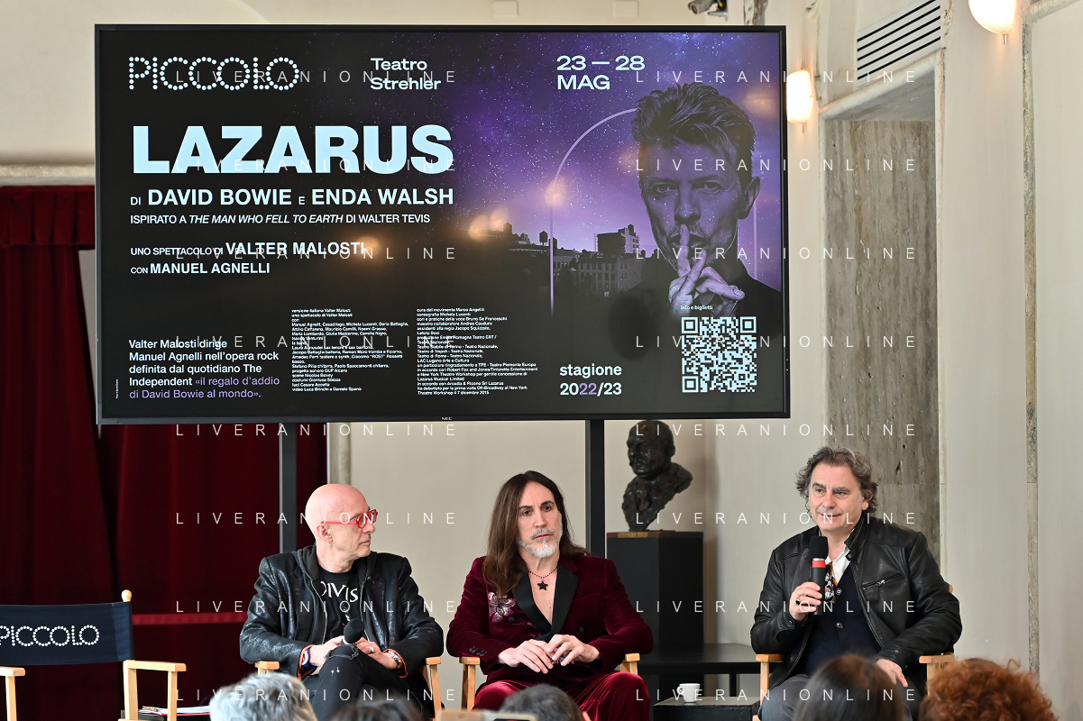 TVRG Presentazione Lazarus nella foto un momento della conferenza stampa con Manuel Agnelli, al centro, e Valter Malosti, a DX Milano 22-05-2023 Presentazione dello spettacolo Lazarus foto Roberto Garavaglia/ag. Aldo Liverani sas/Agenzia Aldo Liverani Sas