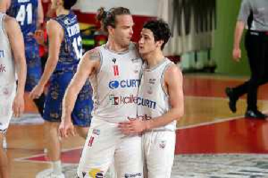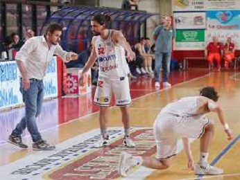 IMOLA 22 05 2023 ANDREA COSTA BASKET FIORENZUOLA SERIE B1 PLAY OUT GARA 2 NELLA FOTO ALEX RANUZZI E LUCA FAZZI DOPO IL CANESTRO DI FAZZI ©SANNA / Agenzia Aldo Liverani Sas