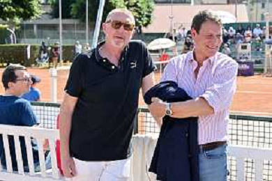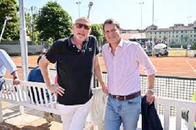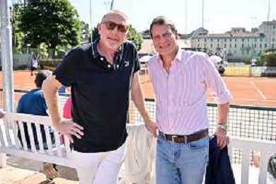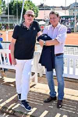 TVRG Trofeo Bonfiglio nella foto Boris Becker DX con Stefano Bonfiglio assistono agli incontri Milano 26-05-2023 Tennis Club Milano Alberto Bonacossa Campionati Internazionali d'Italia categoria juniores 63mo Trofeo Bonfiglio - quarti di finale foto Roberto Garavaglia/ag. Aldo Liverani sas/ AGENZIA ALDO LIVERANI SAS