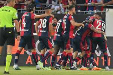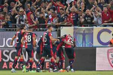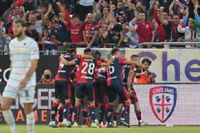 275-2023. Cagliari Calcio-Venezia F.C. Gara preliminare play off BKT 2022/2023, stadio Unipol Domus Cagliari. Foto Salvatore Moi/Aldo Liverani s.a.s. Nella foto: esultanza cagliari che batte venezia e il passa turno ©MOI / AGENZIA ALDO LIVERANI SAS