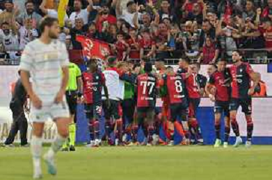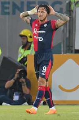 275-2023. Cagliari Calcio-Venezia F.C. Gara preliminare play off BKT 2022/2023, stadio Unipol Domus Cagliari. Foto Salvatore Moi/Aldo Liverani s.a.s. Nella foto: Gol ed esultanta in casa, del Cagliari Calcio contro Venezia F.C. allo stadio Unipol Domuis di Cagliari. Segna: Gianluca Lapadula Cagliari ©MOI SALVATORE / AGENZIA ALDO LIVERANI SAS