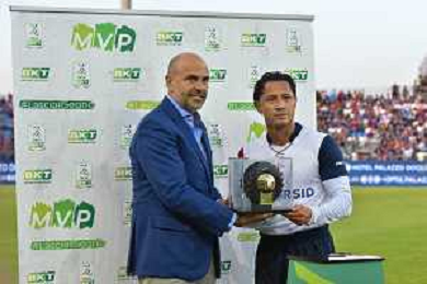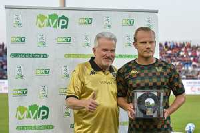 275-2023. Cagliari Calcio-Venezia F.C. Gara preliminare play off BKT 2022/2023, stadio Unipol Domus Cagliari. Foto Salvatore Moi/Aldo Liverani s.a.s. Nella foto: Joel Pohjanpalo Venezia premiato come vice capo cannoniere serie Btk 2022-2023 ©MOI SALVATORE / AGENZIA ALDO LIVERANI SAS